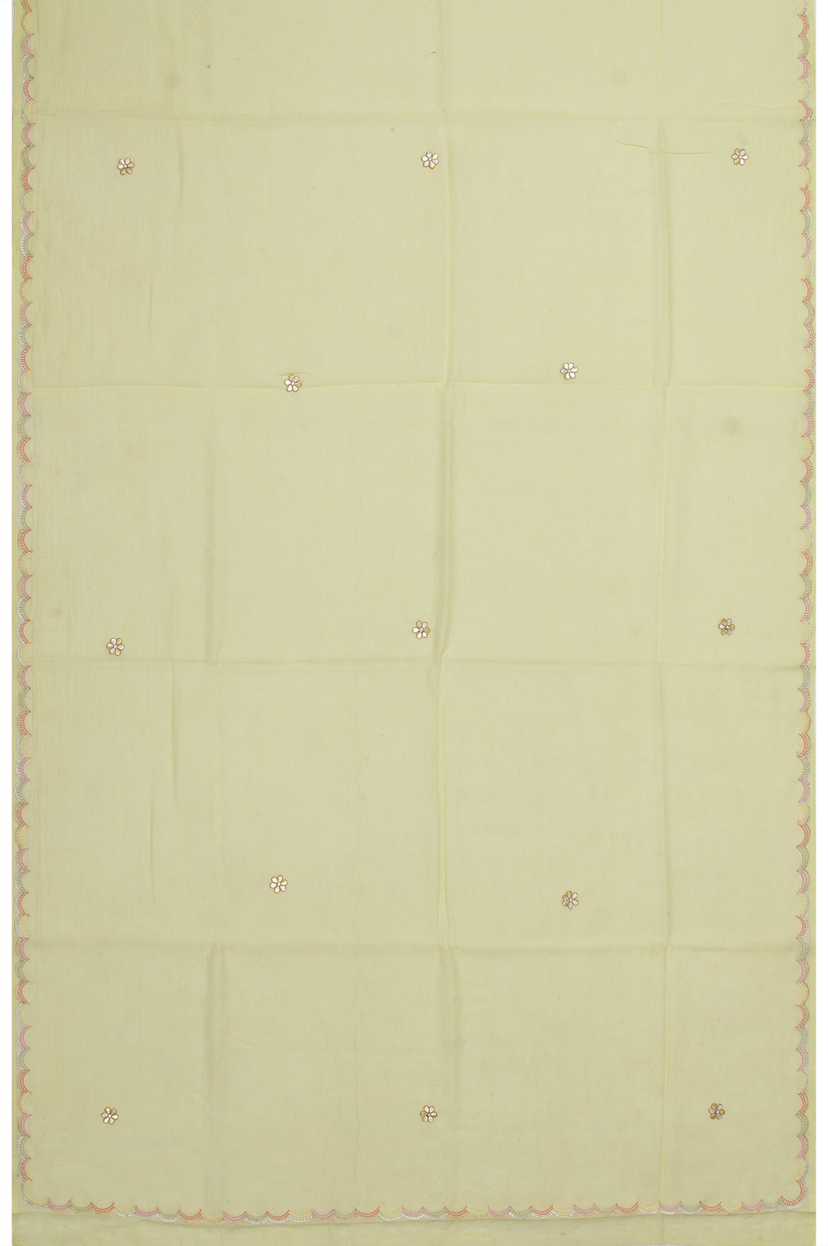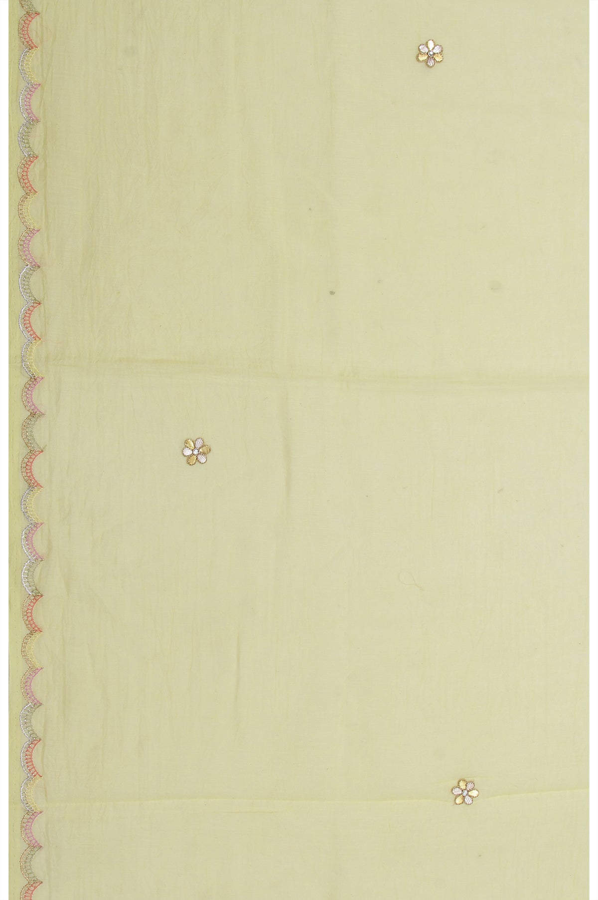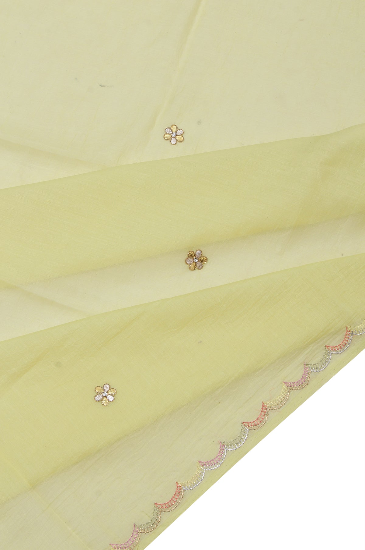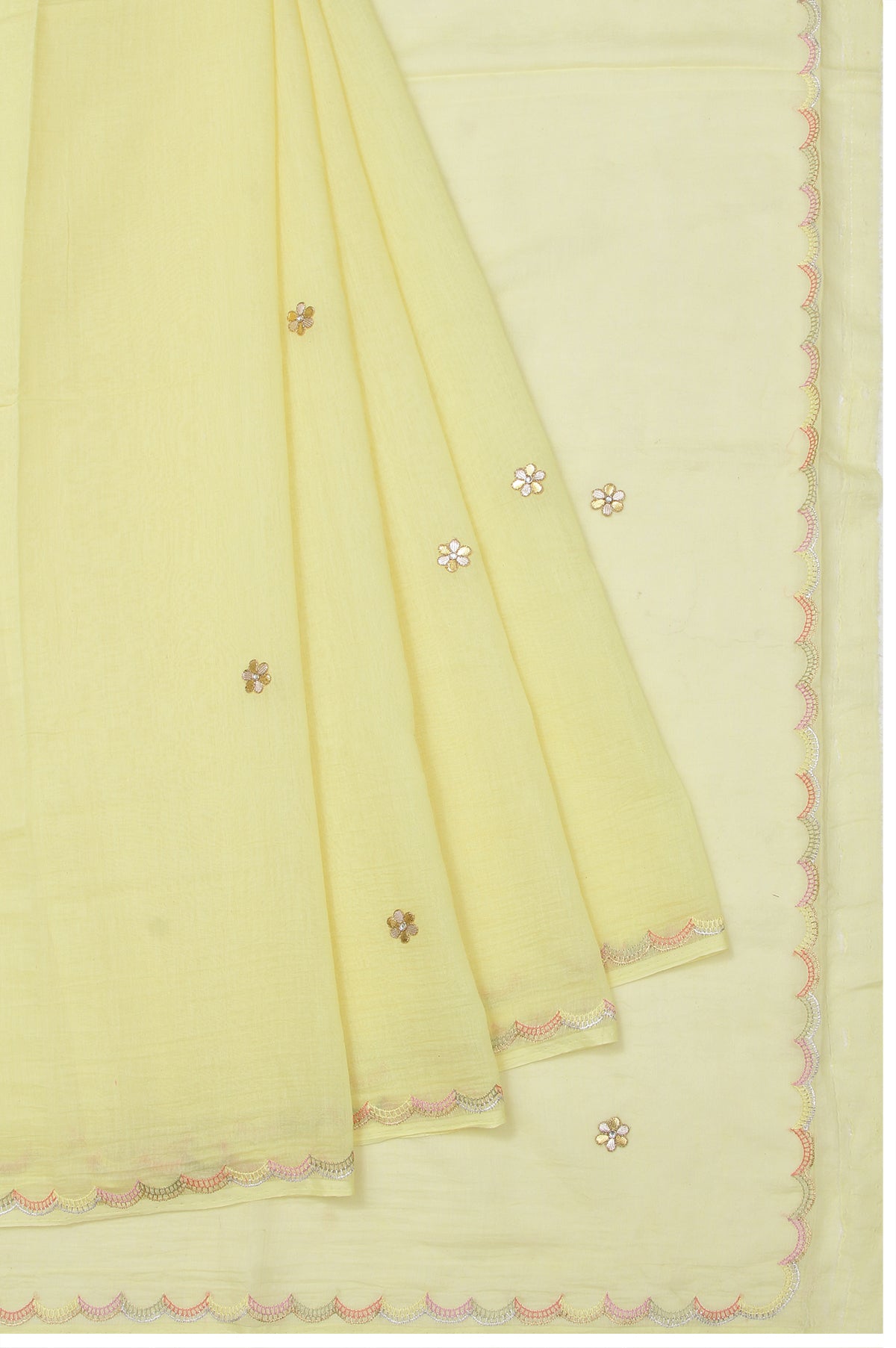 Neon Yellow Chanderi Silk Cotton Saree with Scallop Border