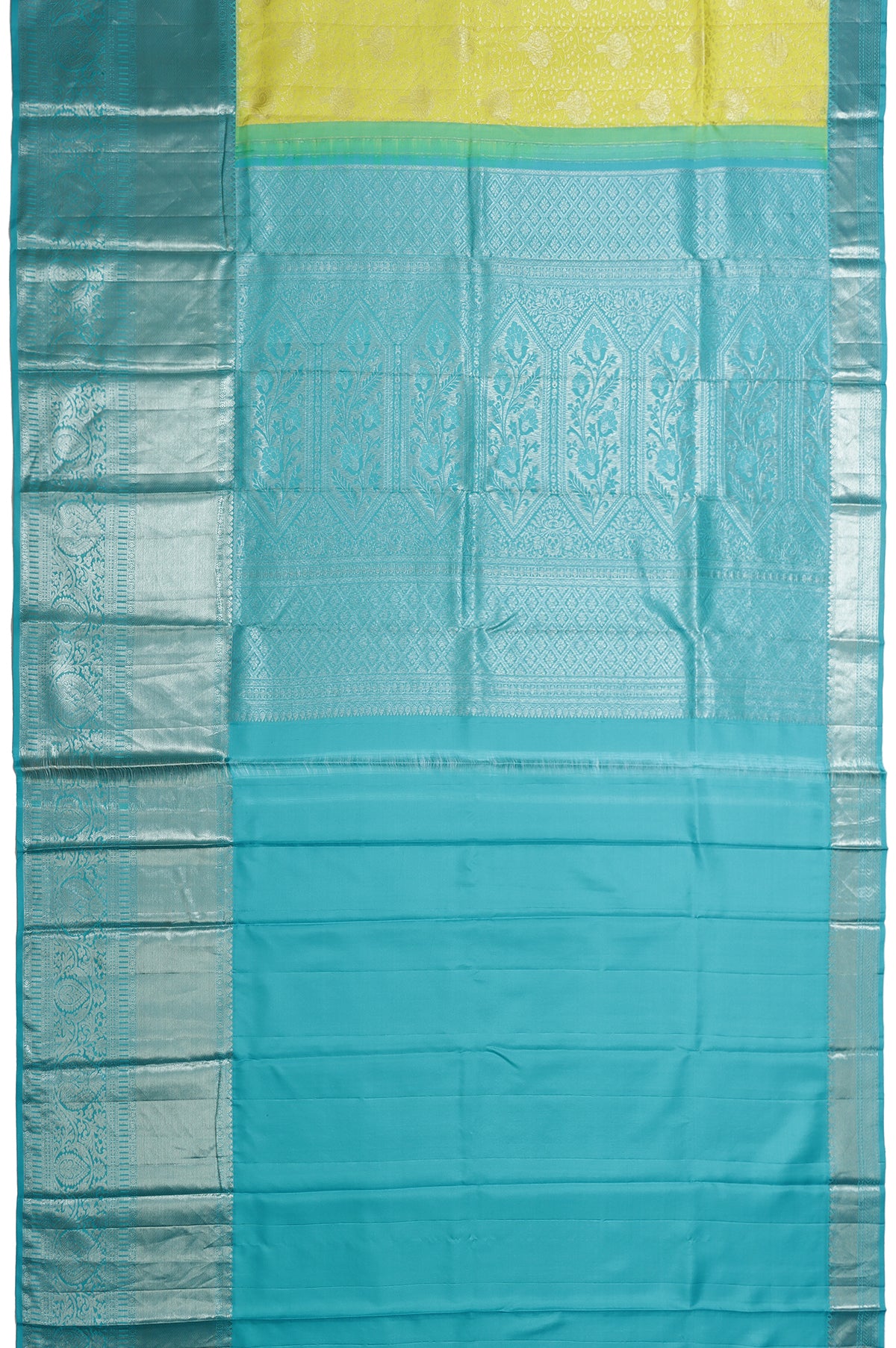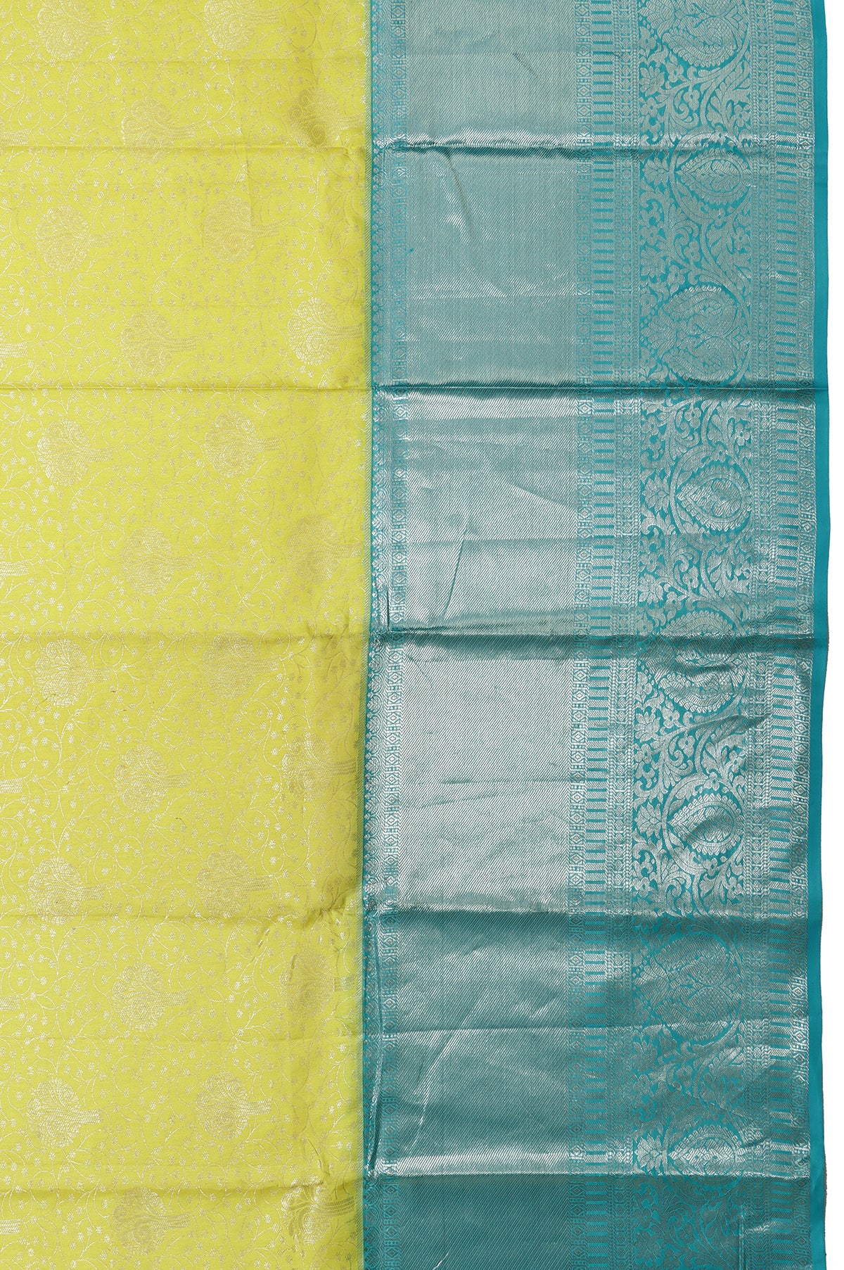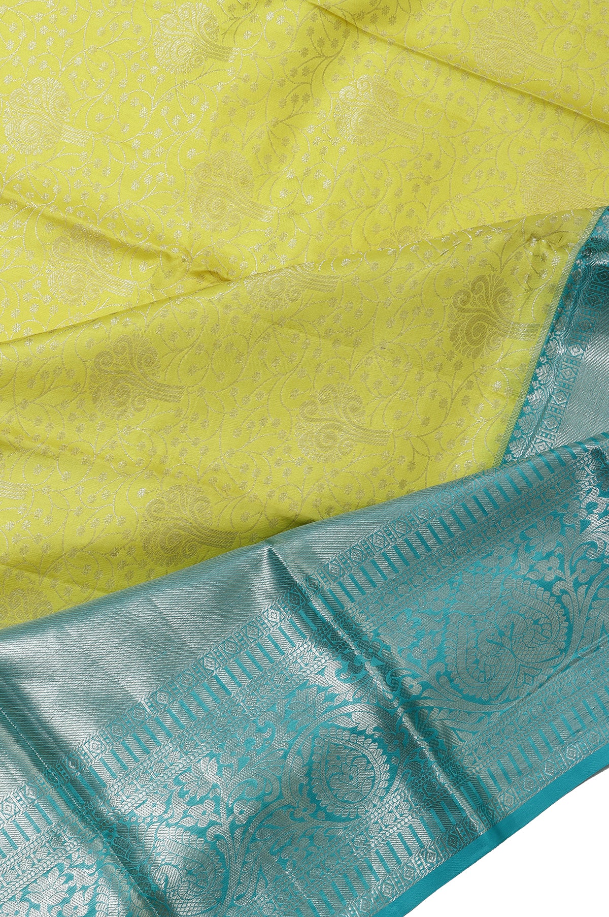 Neon Yellow Kanchipuram Silk Saree with Mayil Motifs and Silver Zari