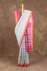 Off White Ikat Cotton Saree