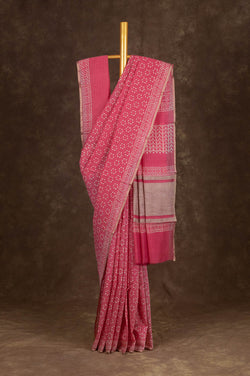 Onion pink Chanderi Silk Cotton Saree