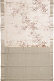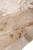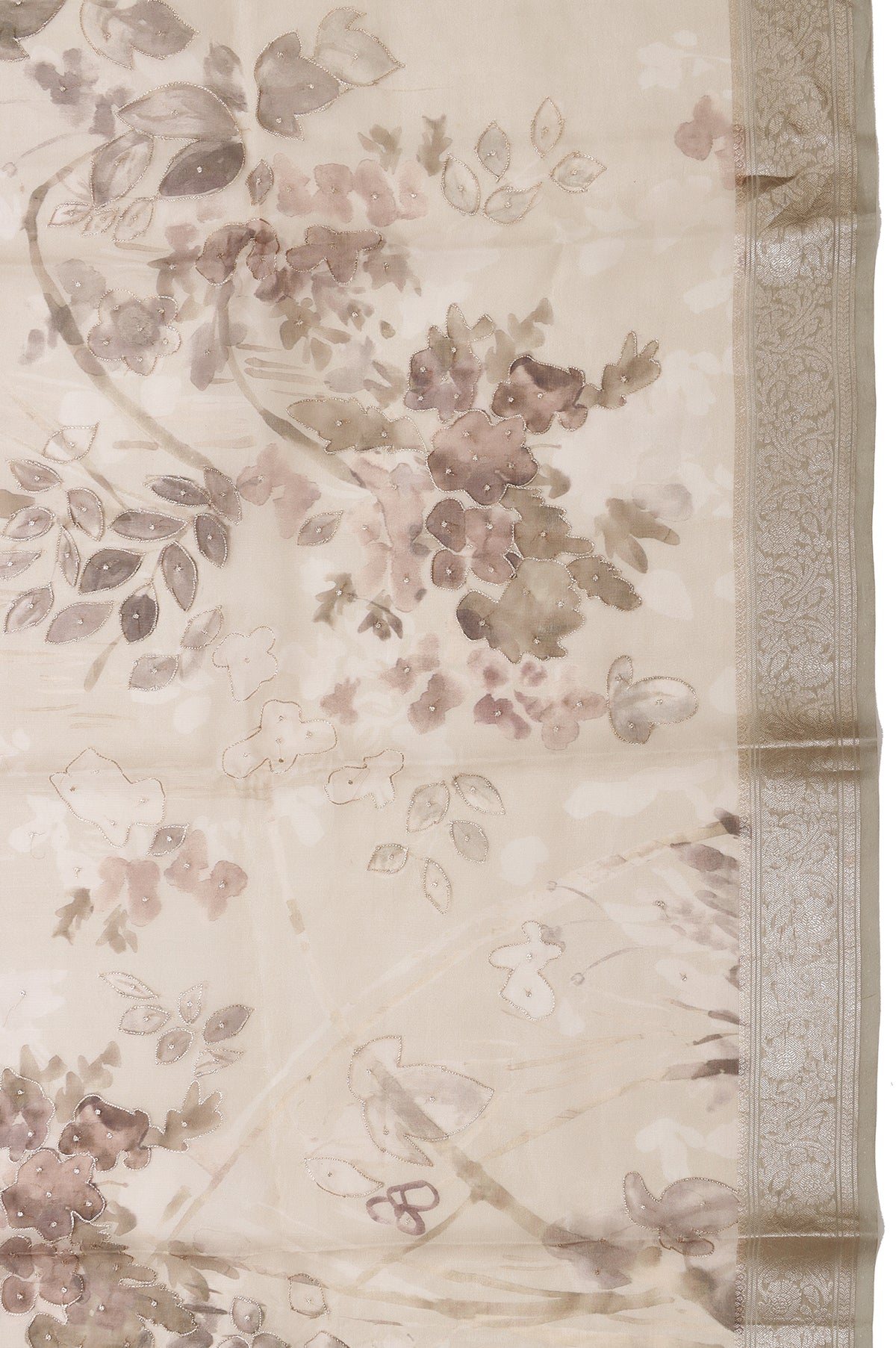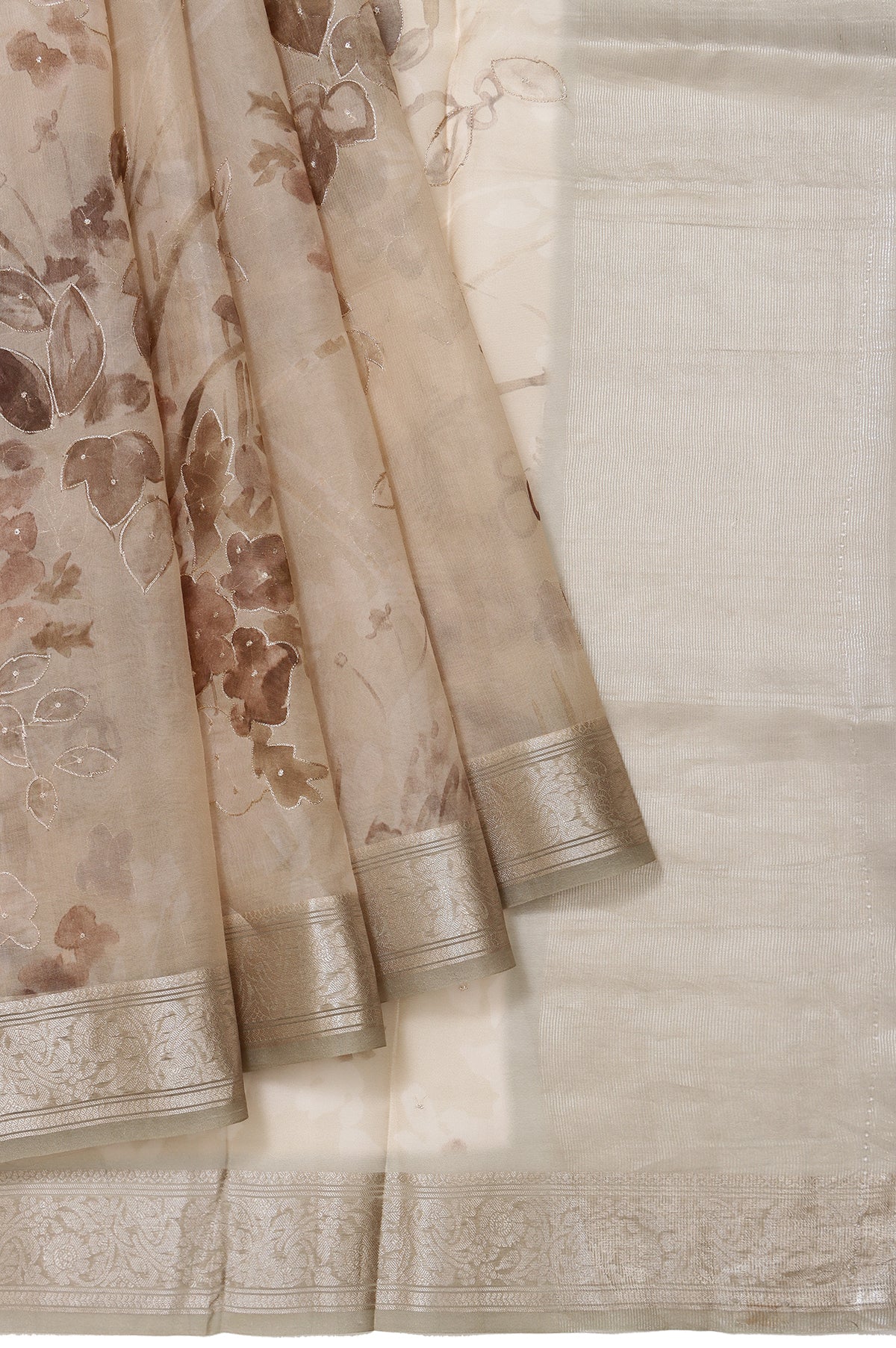 Beige Organza Saree with Floral Thread Work and Gold Zari Border