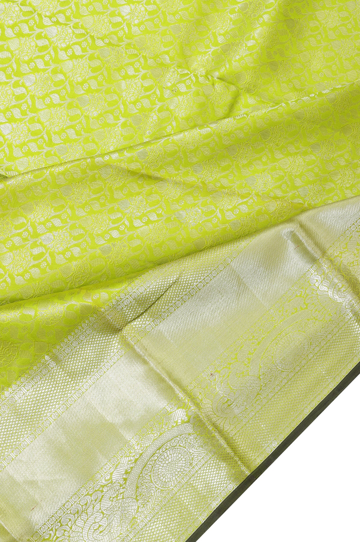 Parrot Green Kanchipuram Silk Saree with Yanai and Mayil Motifs