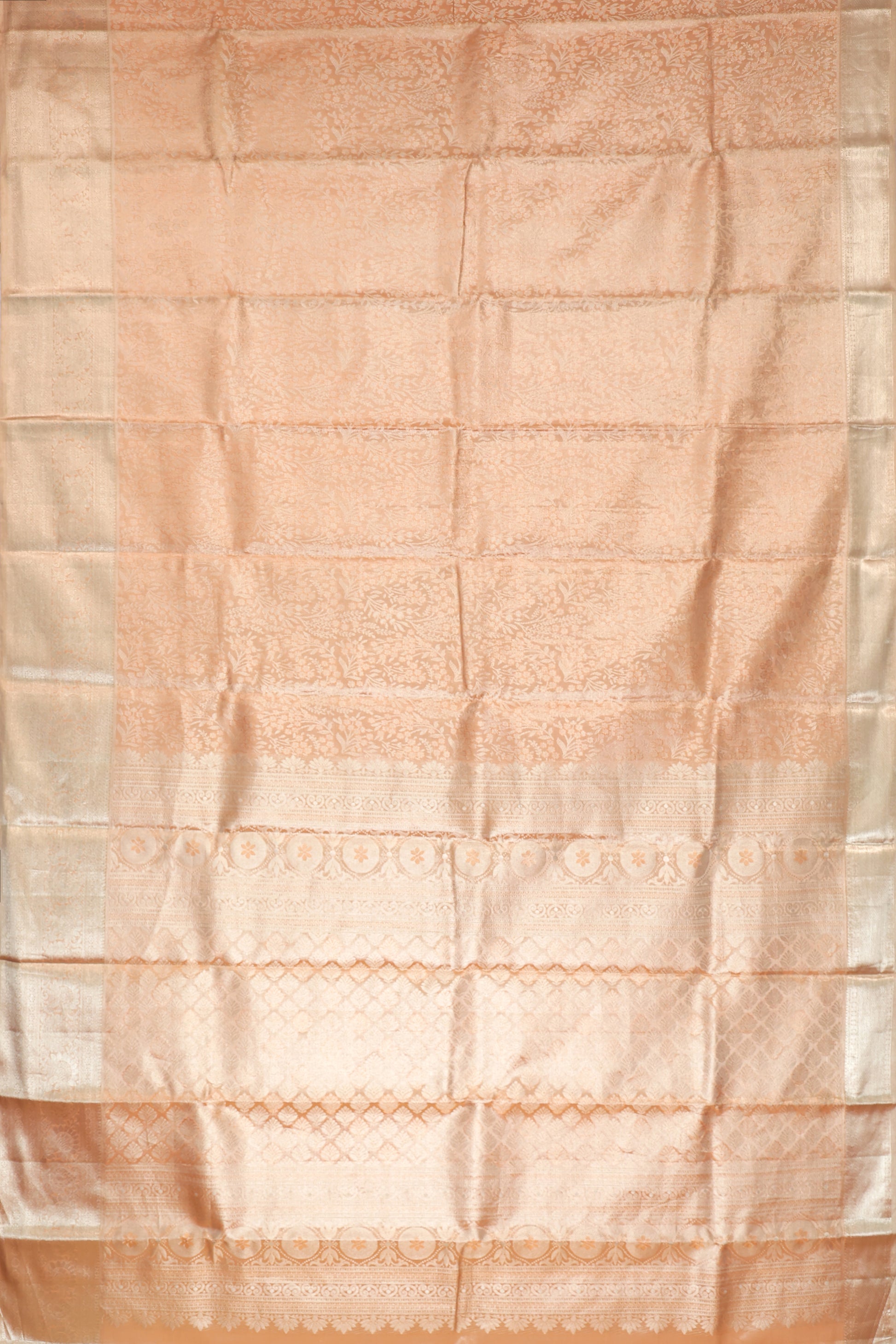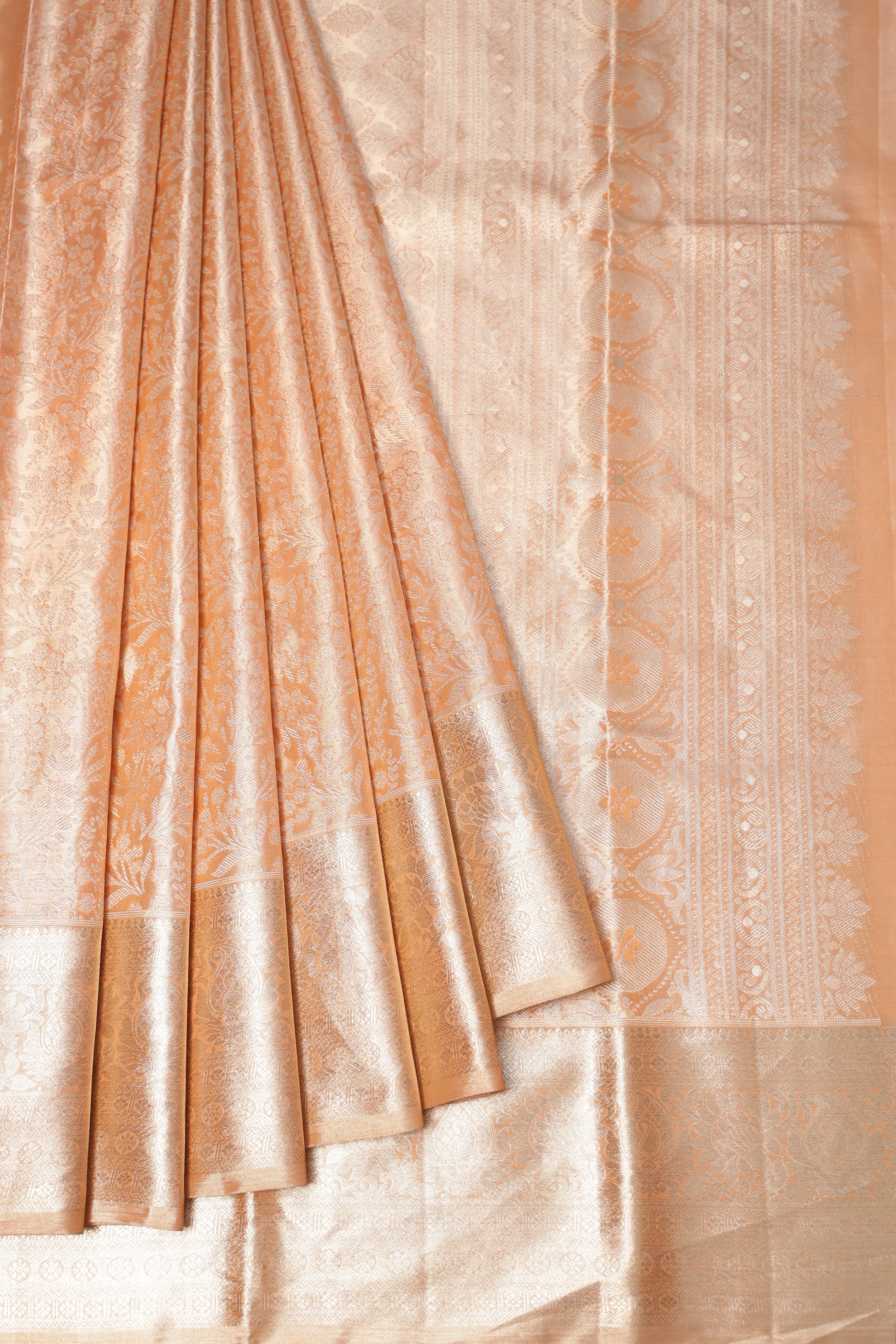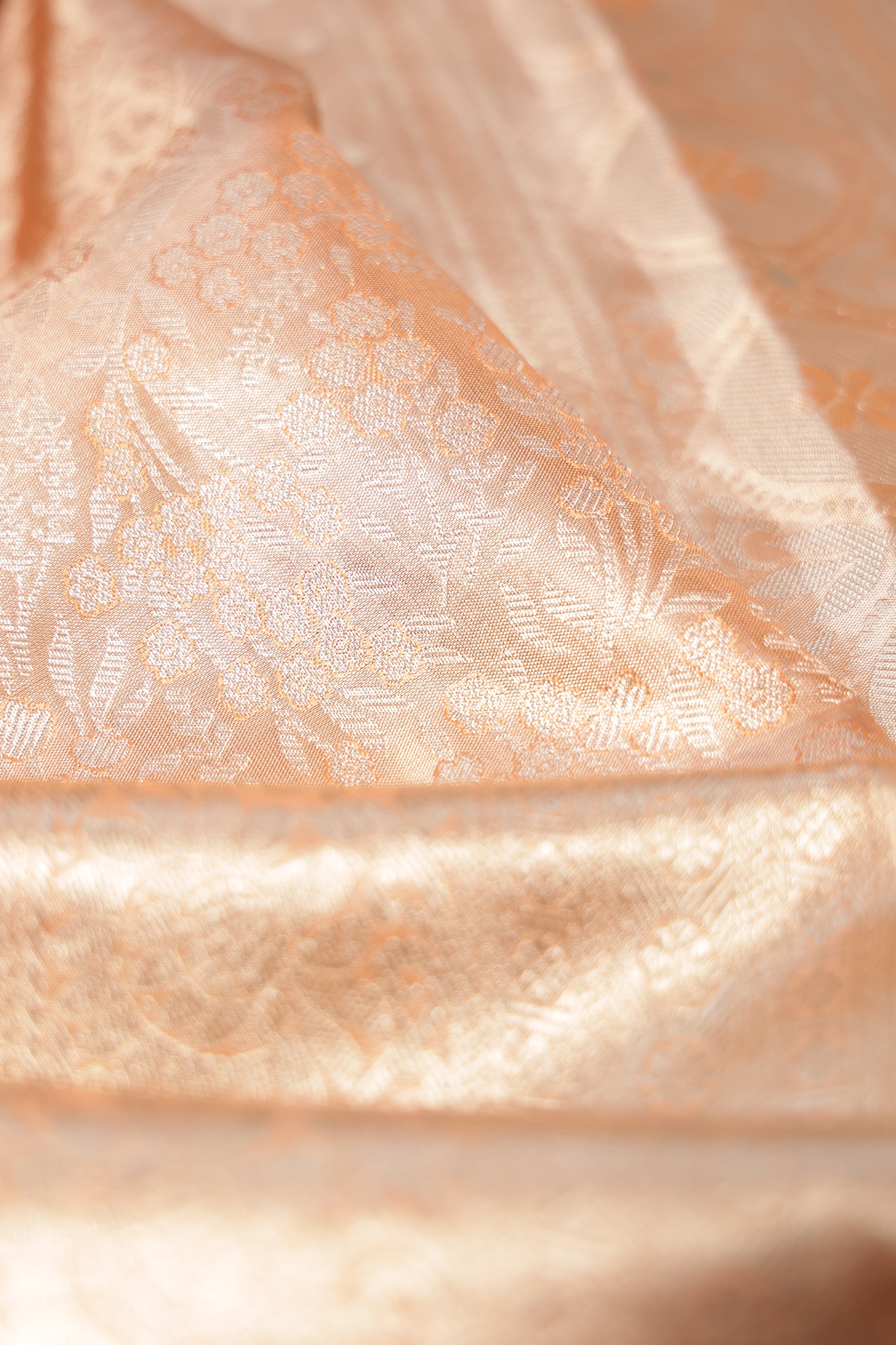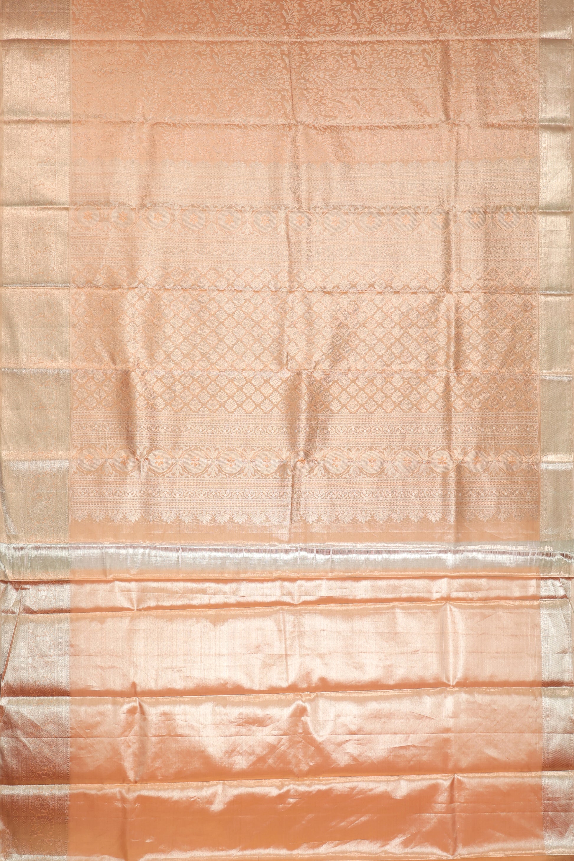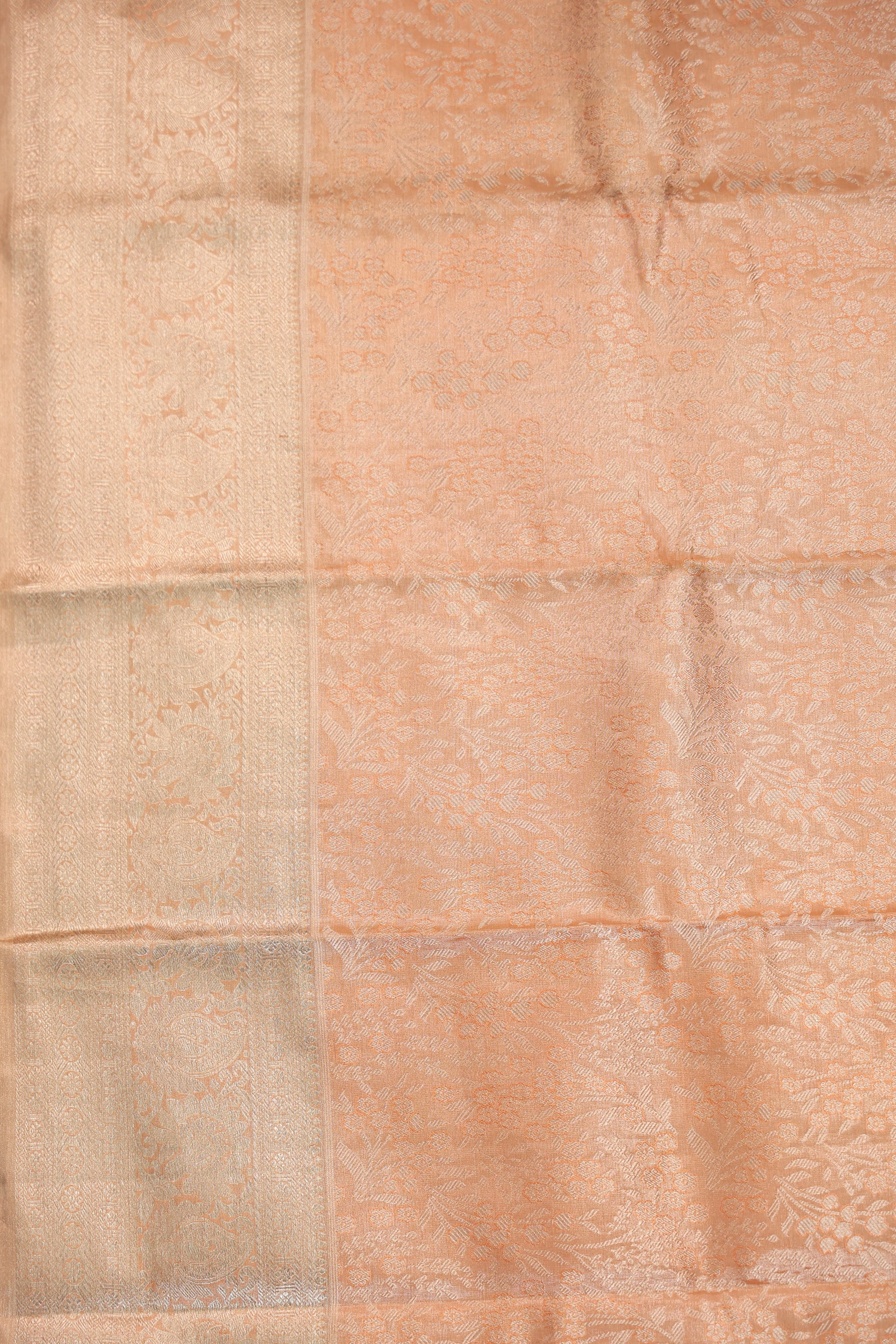 Peach Kanchipuram Silk Saree with Foral and Paisley Motifs