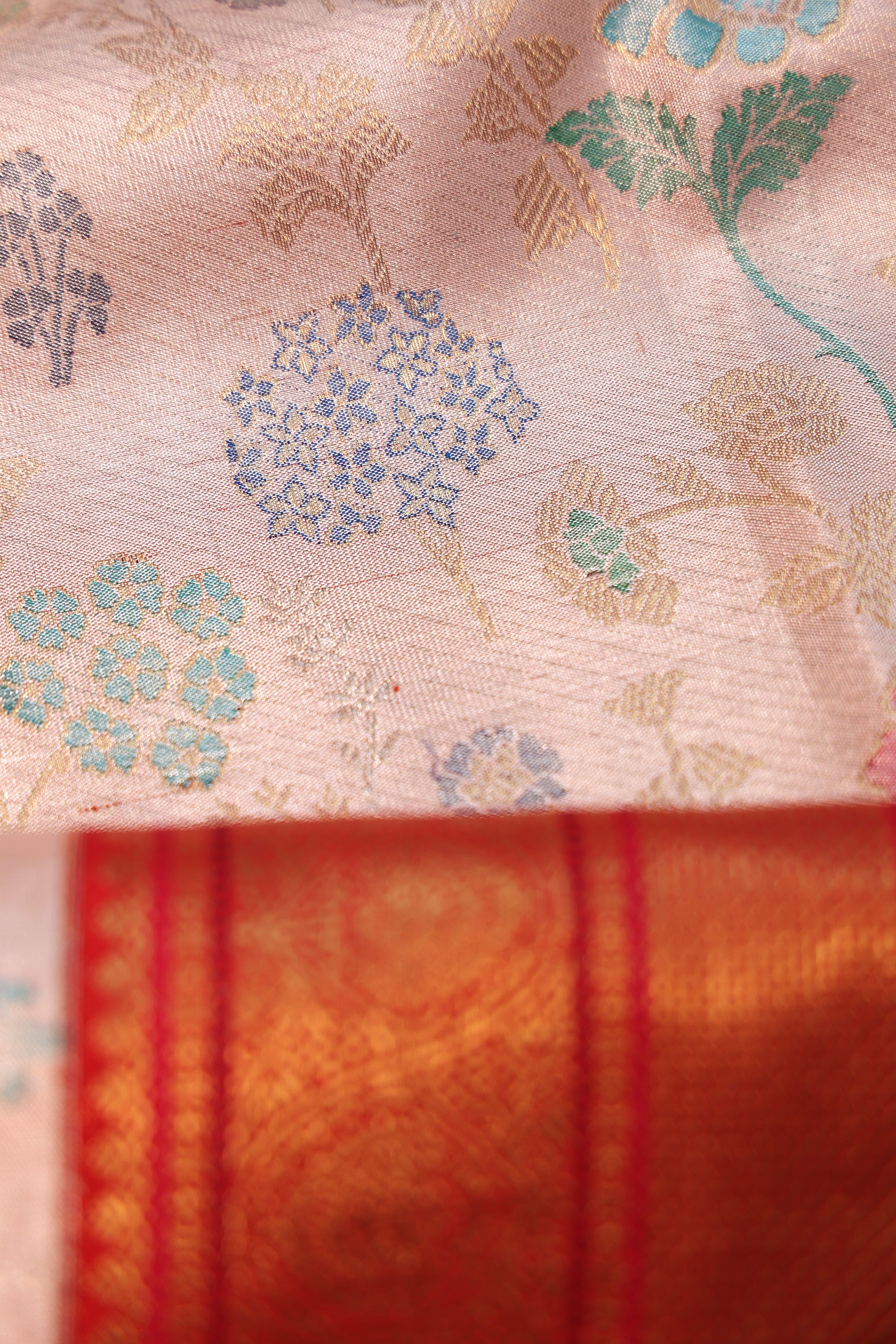 Peach Kanchipuram Silk Saree with Meenakari Work