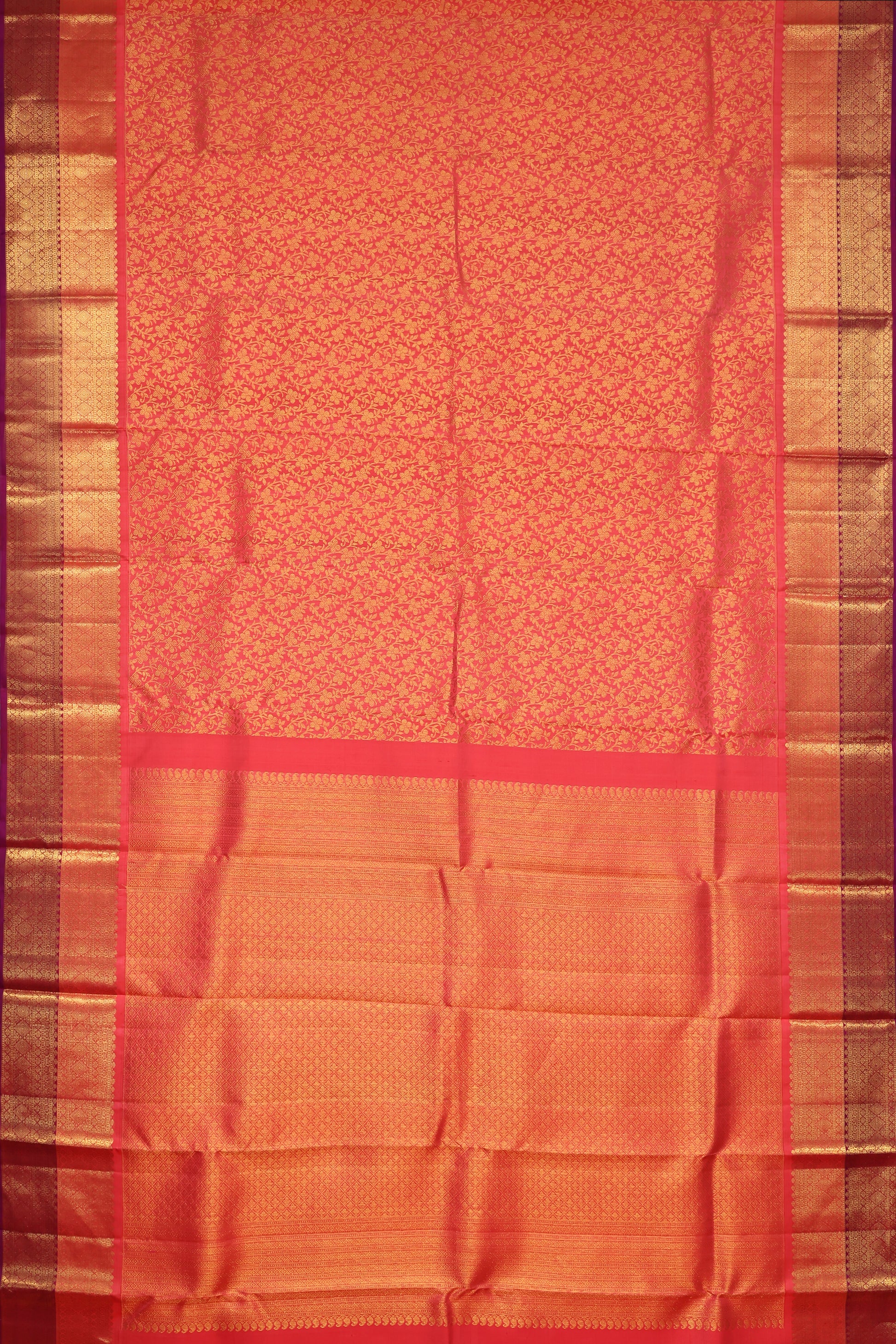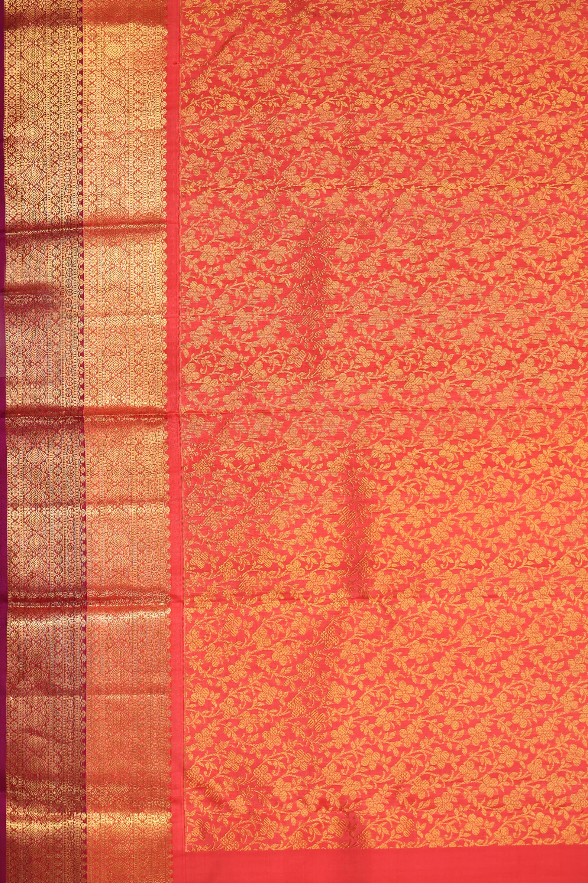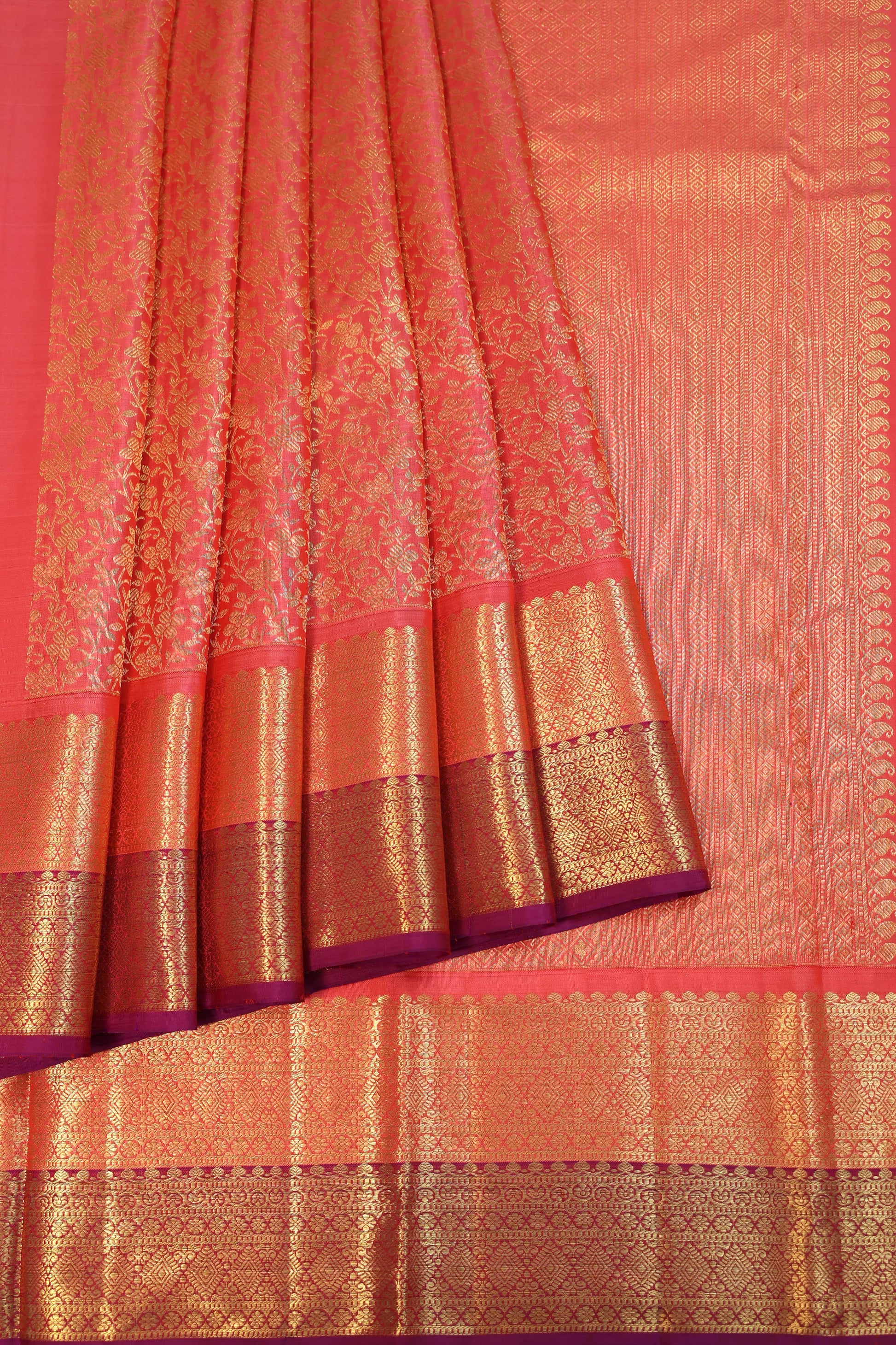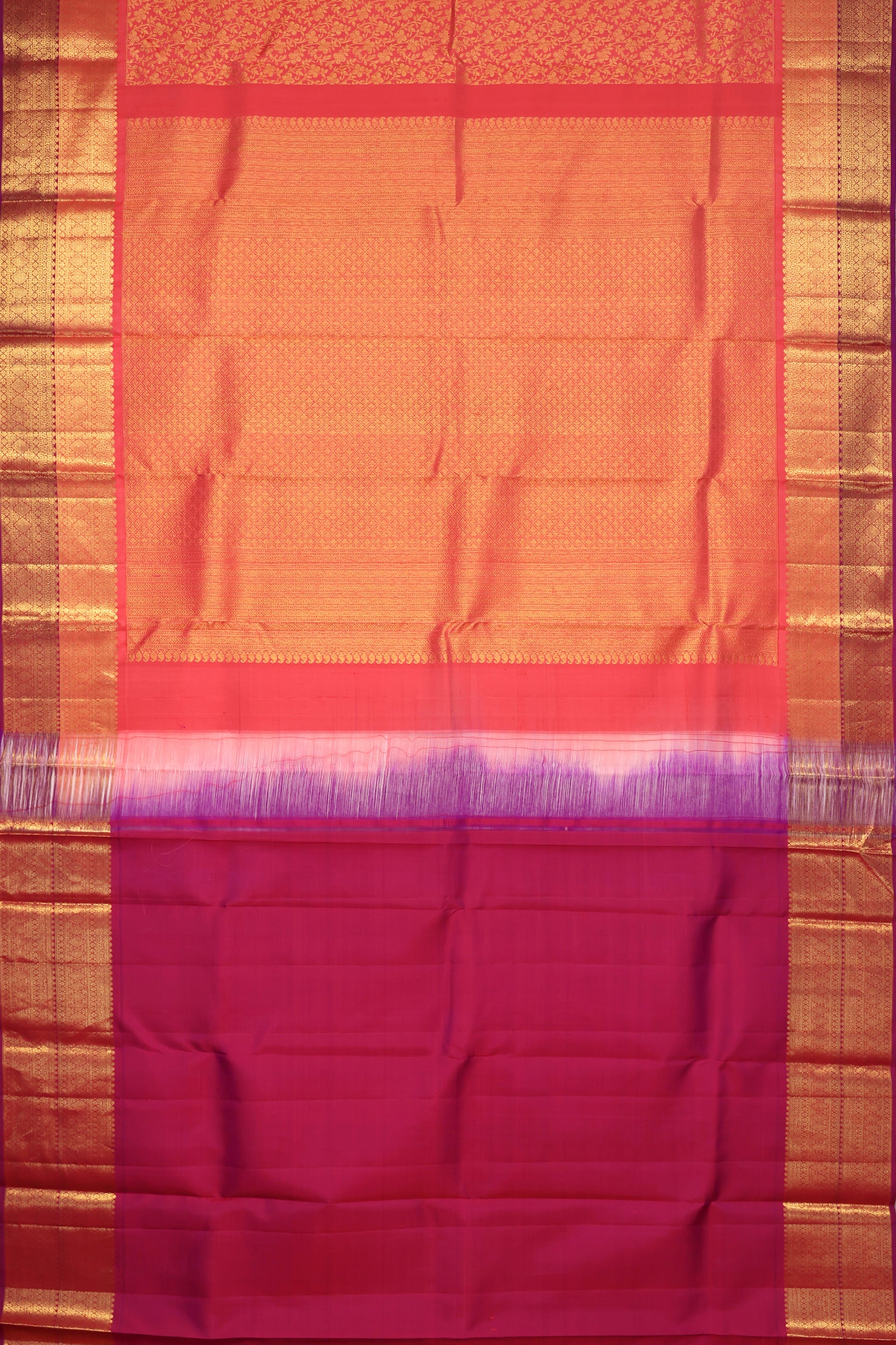 Peach Kanchipuram Silk Saree with Peach & Violet Border