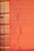 This elegant Peach Kanchipuram Silk Saree blends soft, feminine charm with traditional craftsmanship. The saree features a beautiful peach and violet border, creating a striking contrast that adds depth to the soft peach body. Woven from premium silk, the saree exudes a timeless appeal, making it ideal for weddings and festive occasions.