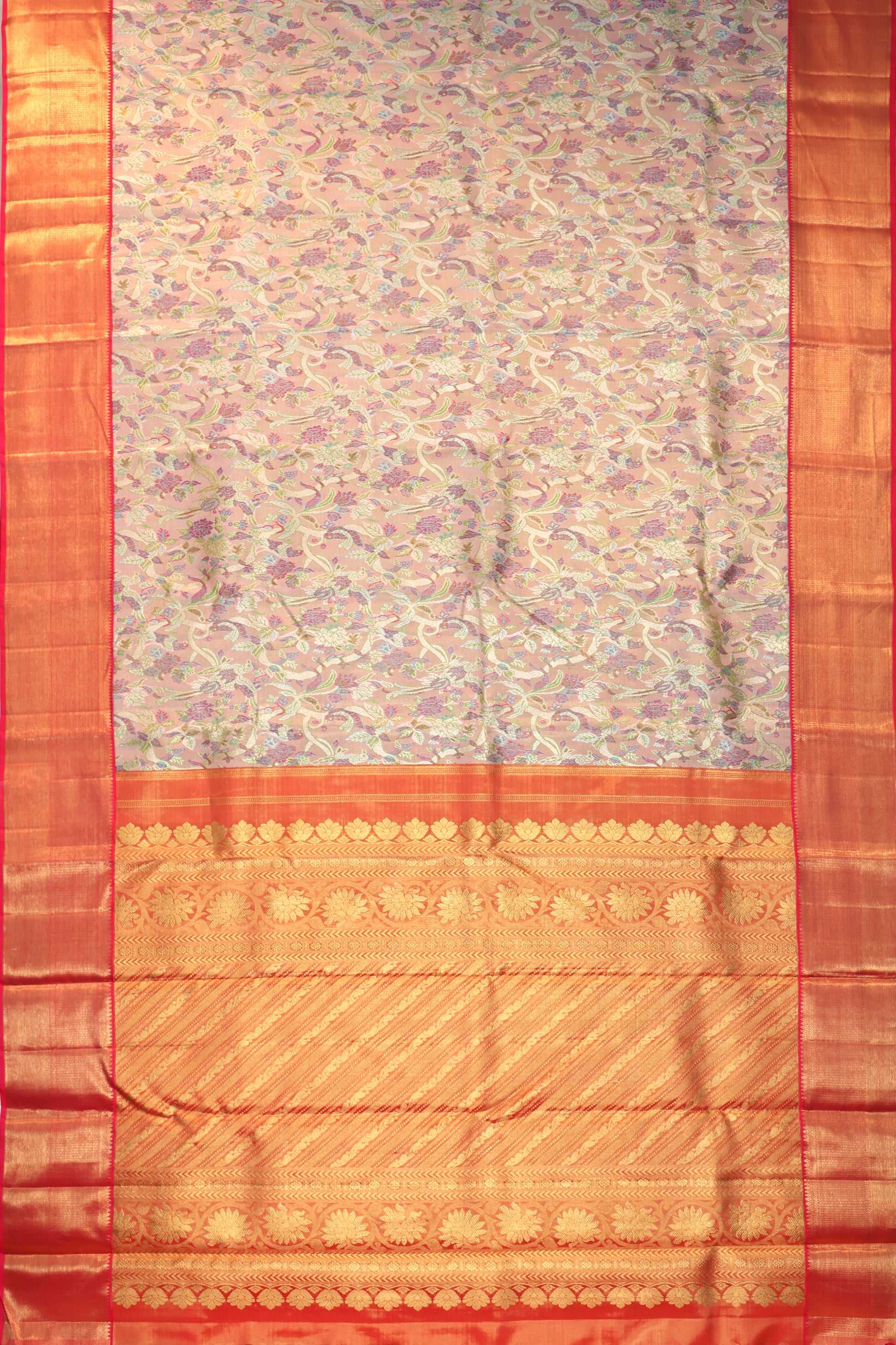 Peach Kanchipuram Tissue Silk Saree with Meenakari Design