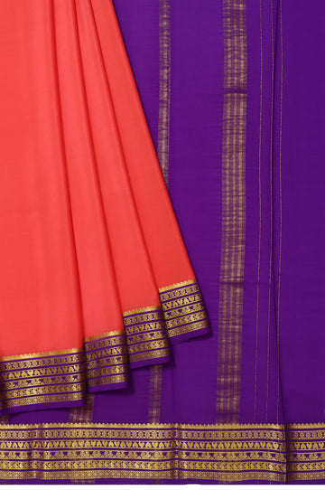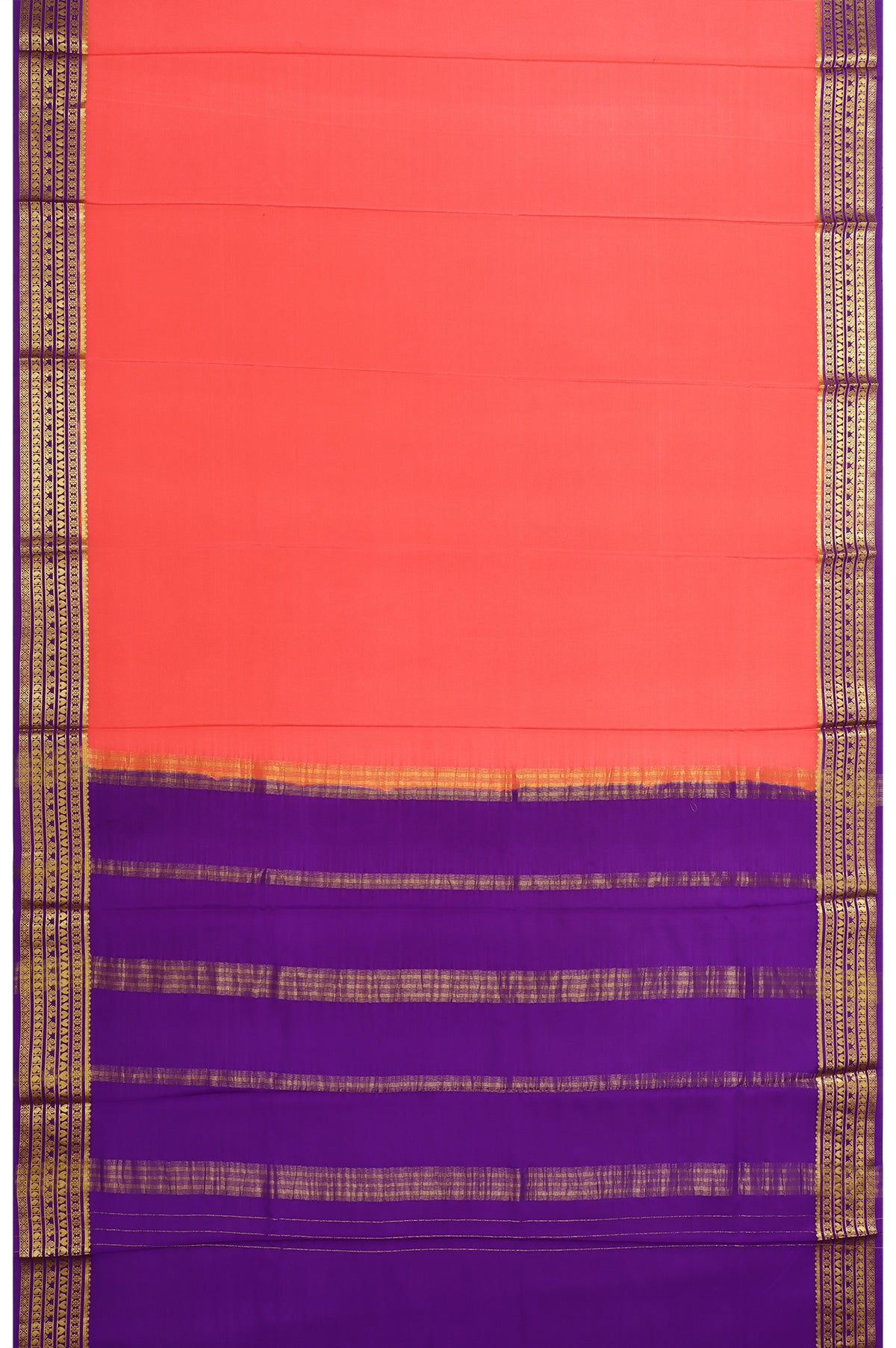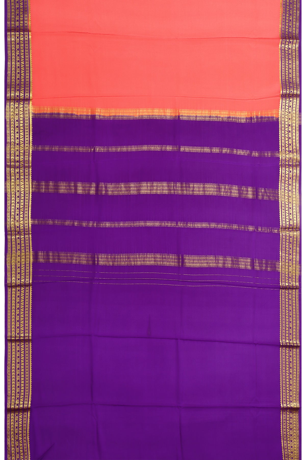 Peach Mysore Silk Saree with Royal Blue Border and Gold Zari Stripes