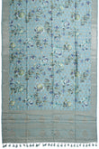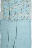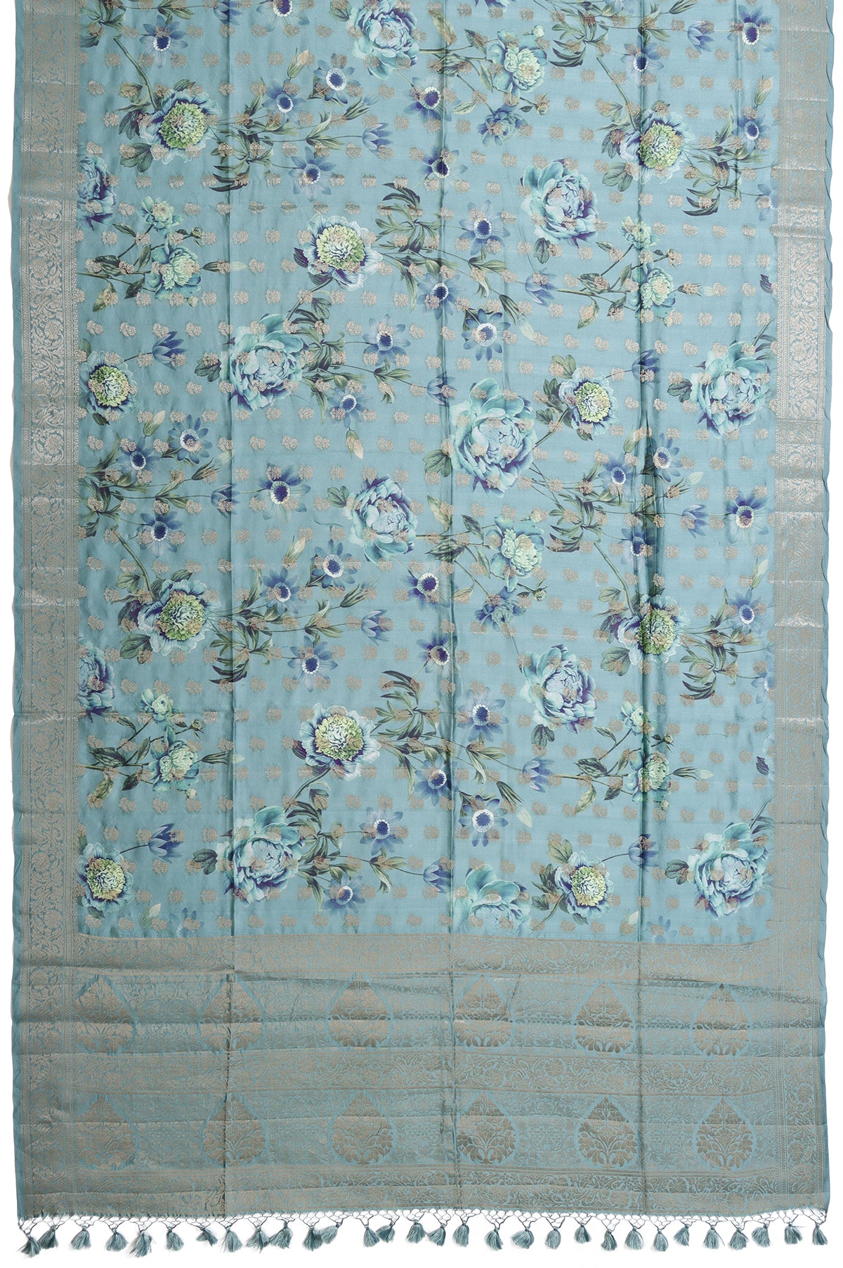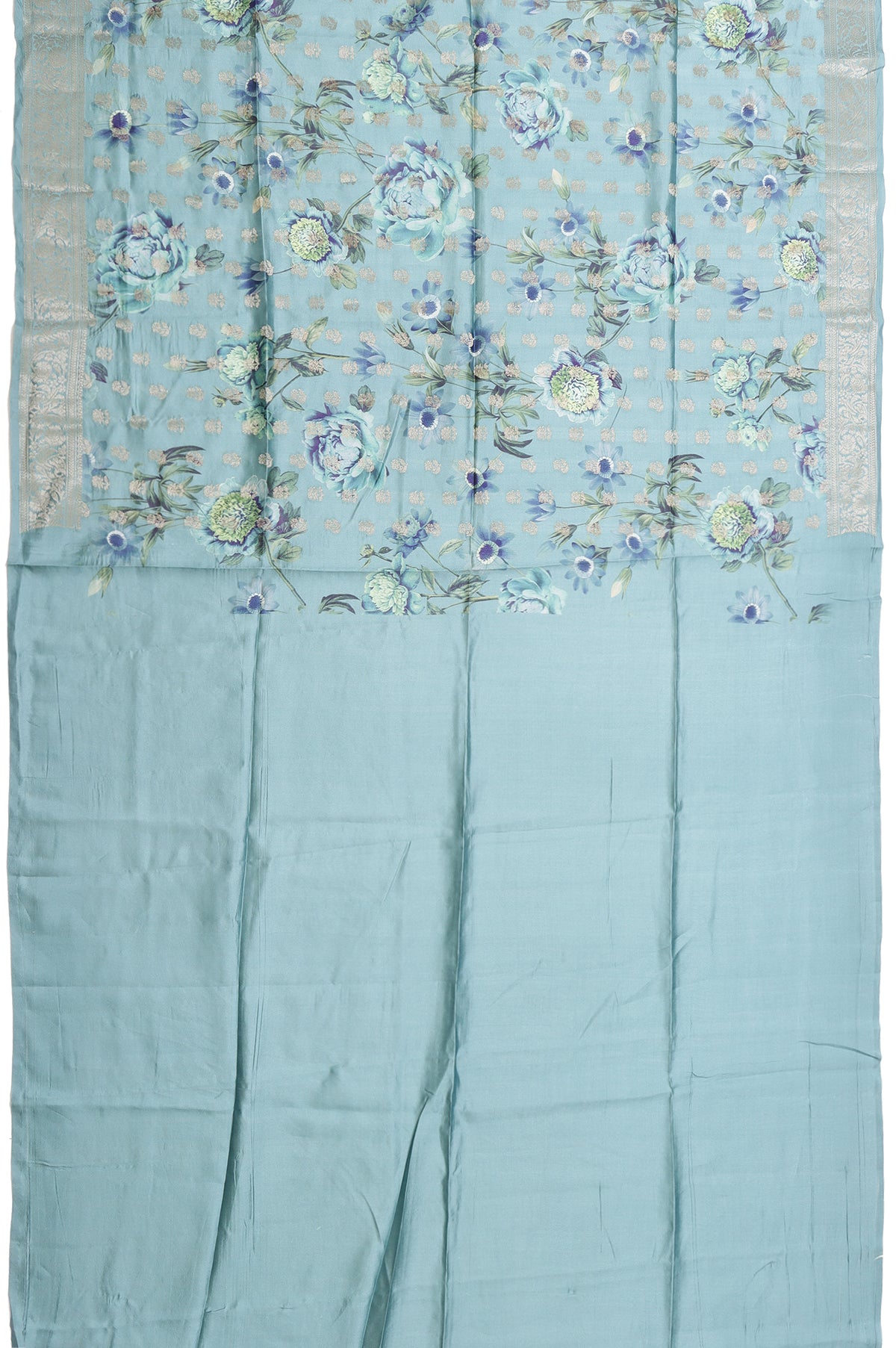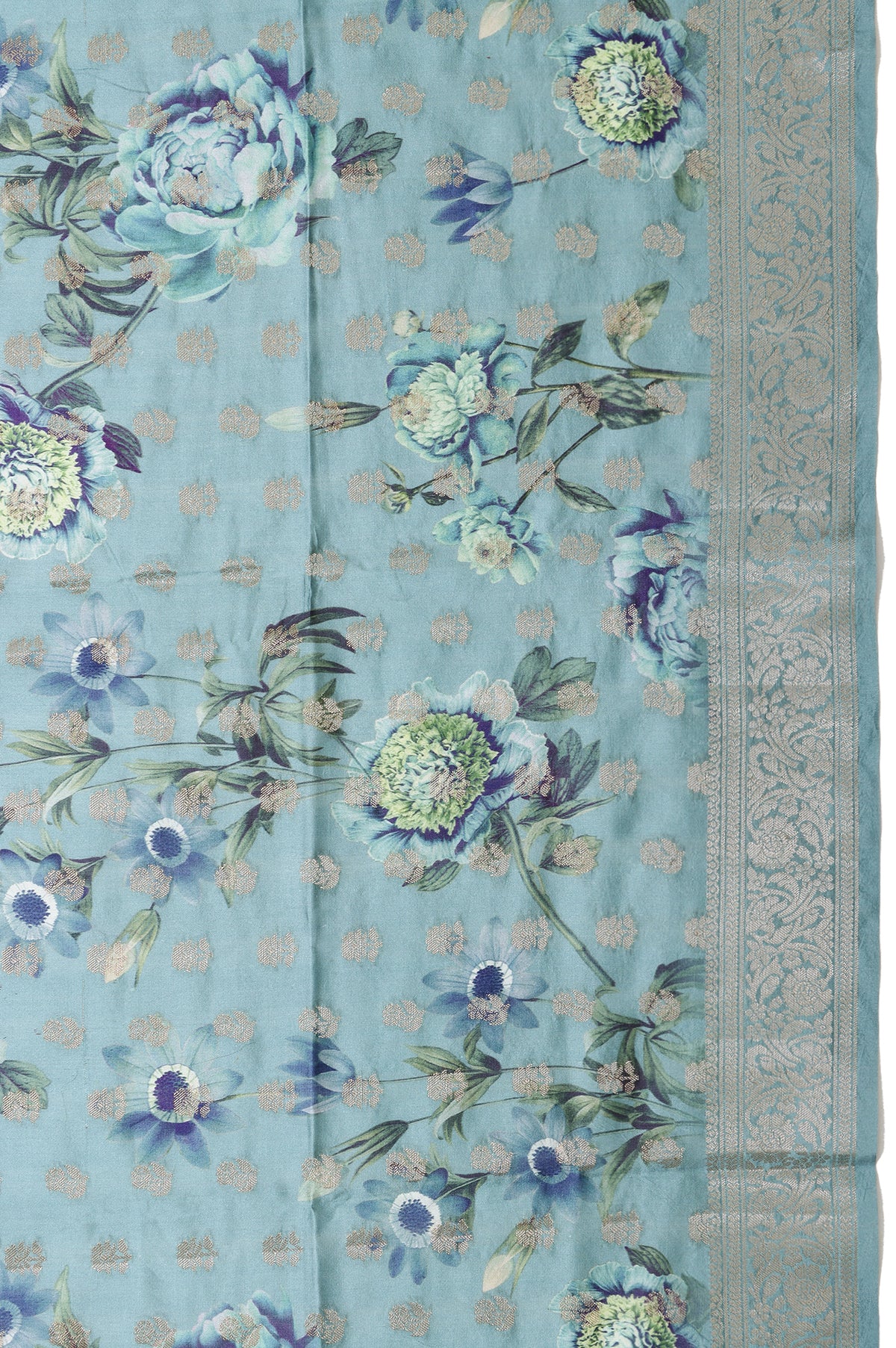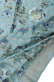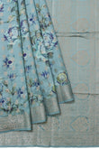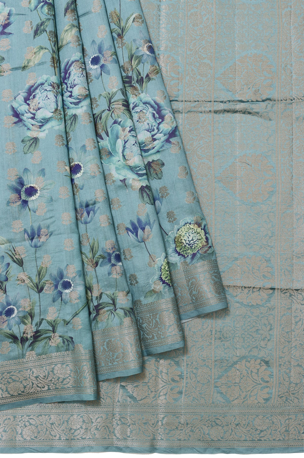 Peacock Blue Chiniya Silk Saree with Floral Motifs and Gold Zari