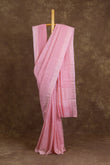 Embrace the delicate beauty of a pink Chanderi saree with handcrafted zari embroidery. The delicate handwoven zari lends a hint of grandeur and creativity, while the soft and gentle pink tone emanates elegance and delicacy.