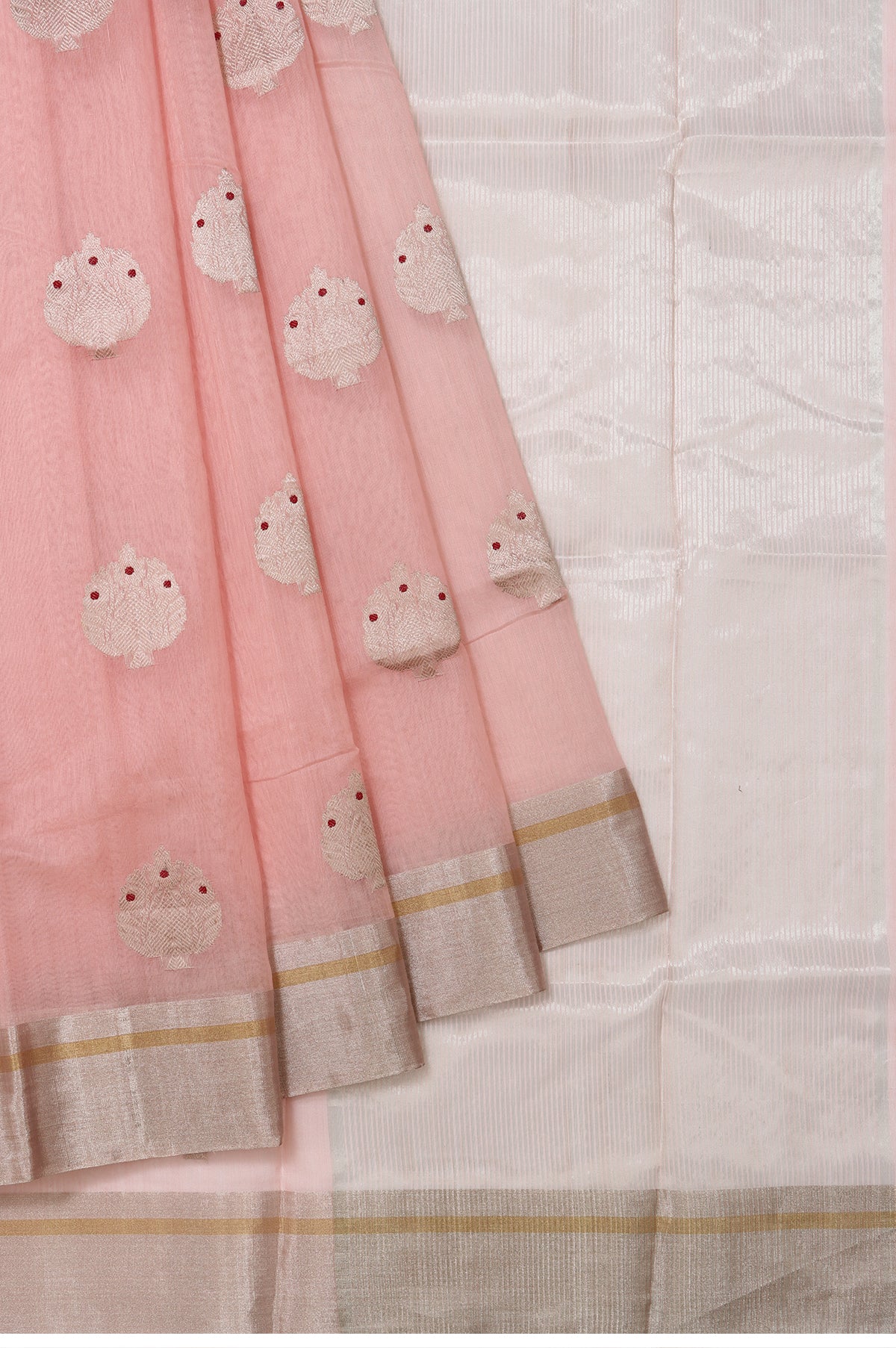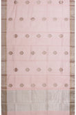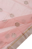 Pink Chanderi Silk Cotton Saree with Tree Motifs and Gold Zari Stripes