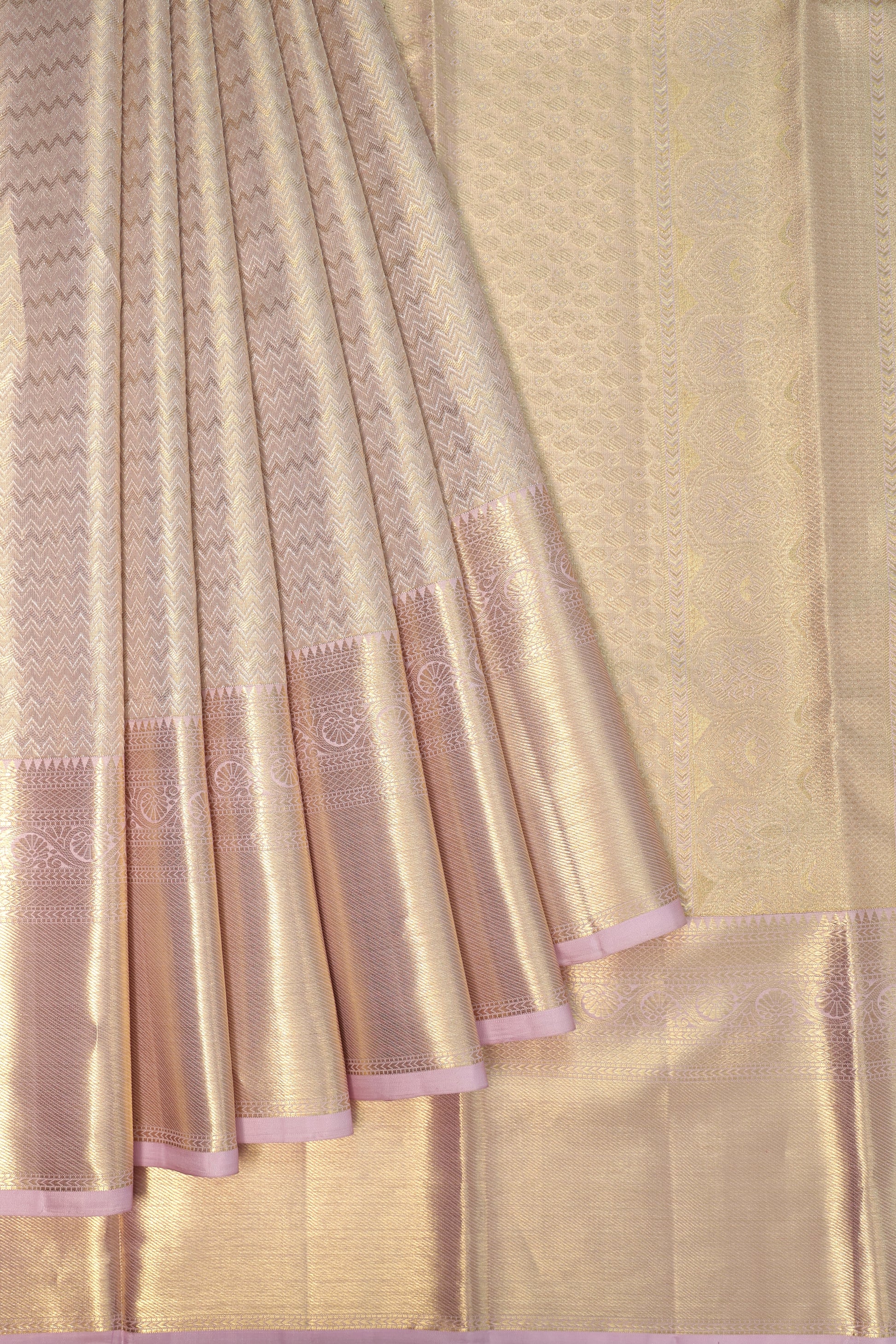 Pink Kanchipuram Silk Saree with Chevron Pattern
