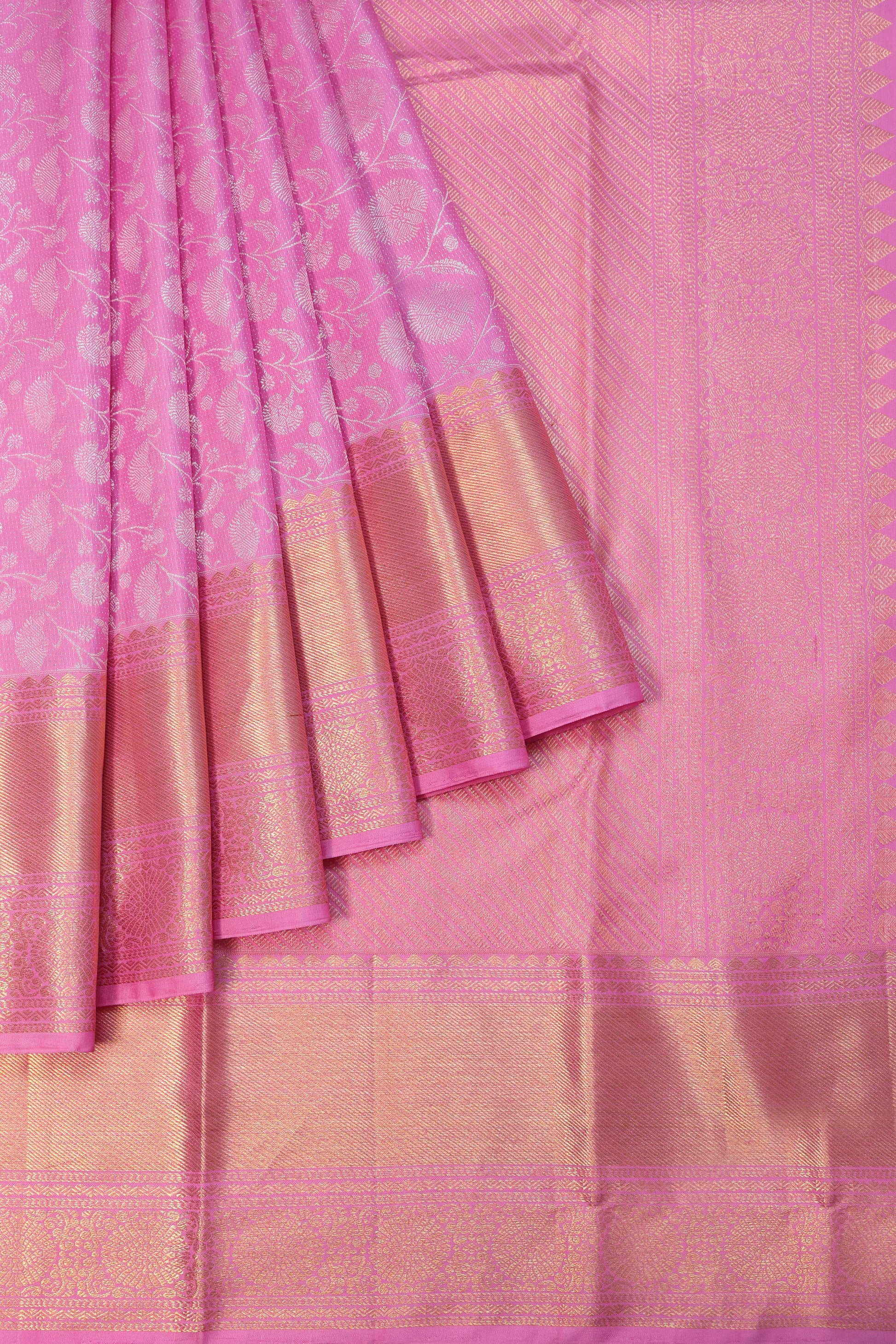 Pink Kanchipuram Silk Saree with Floral Jaal