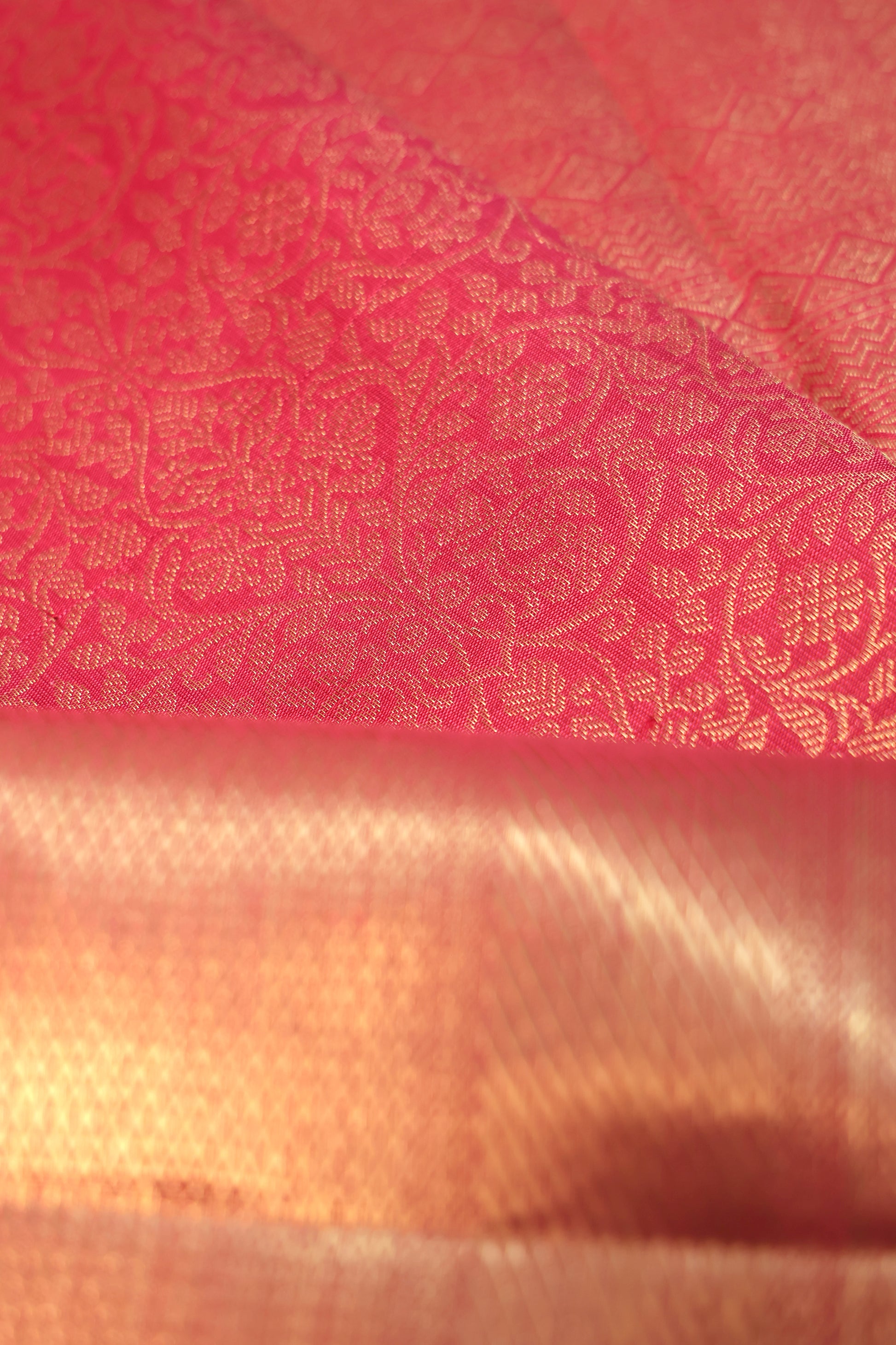Pink Kanchipuram Silk Saree with Gold Zari Floral Jaal