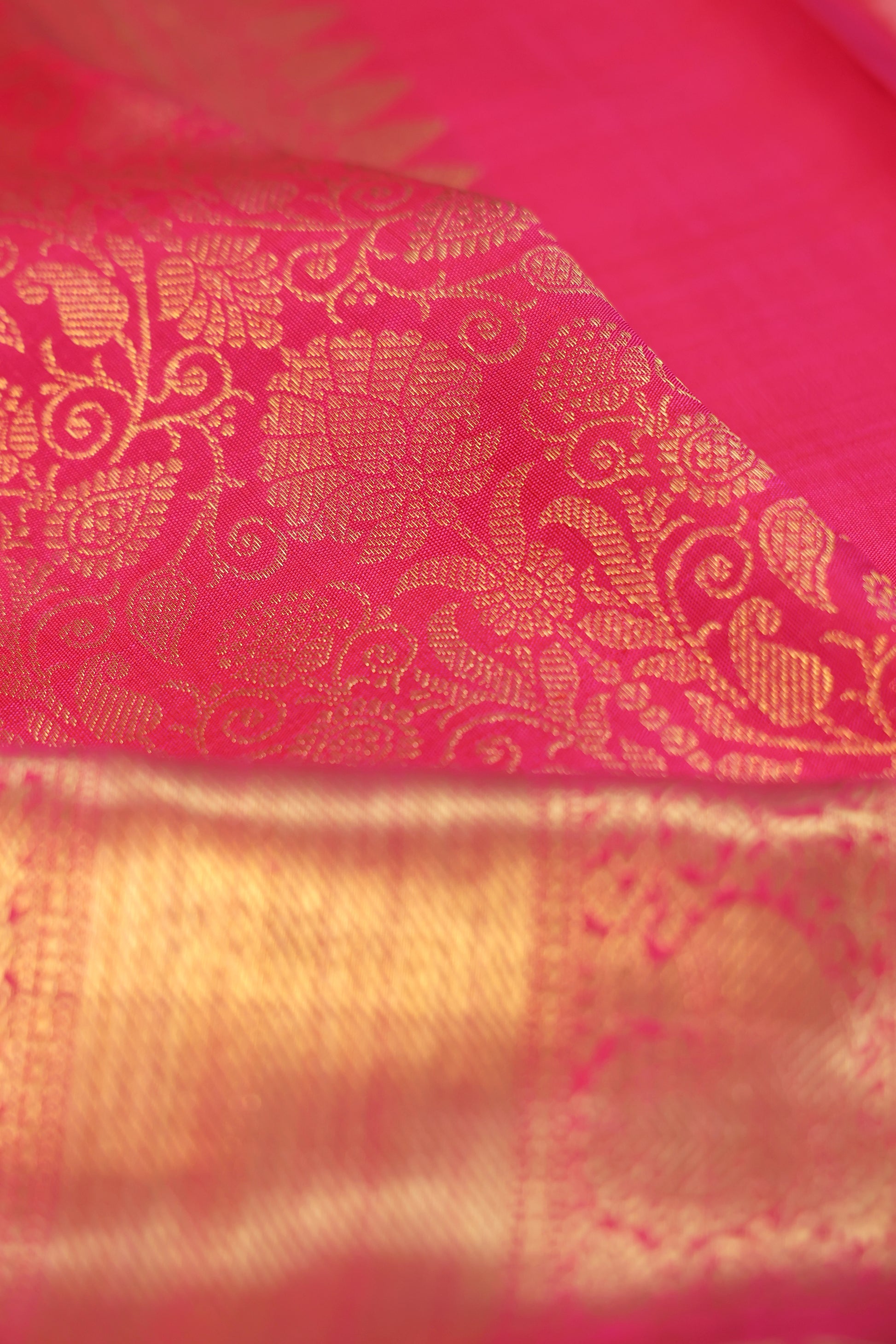 Pink Kanchipuram Silk Saree with Gold Zari Floral Jaal