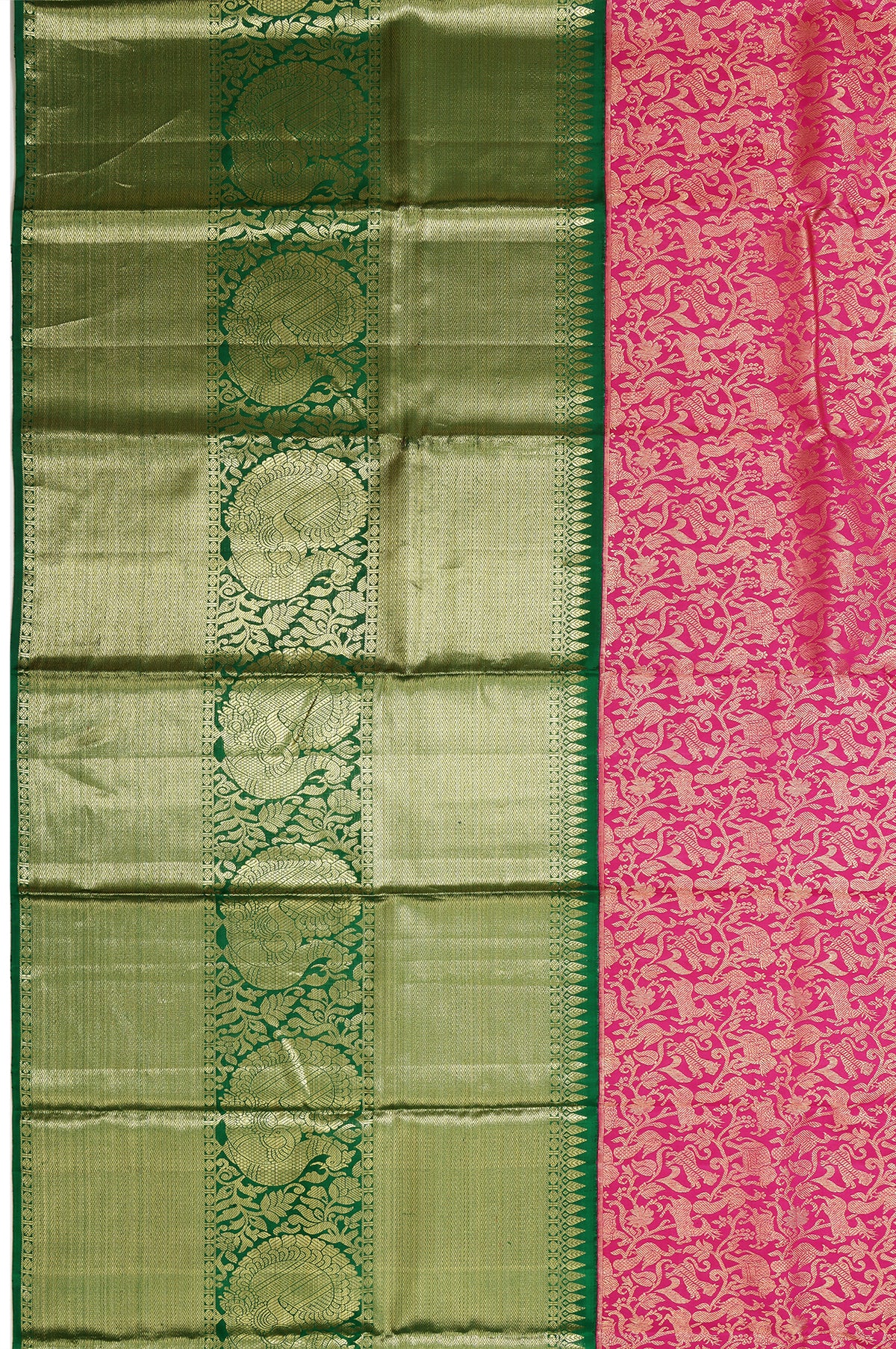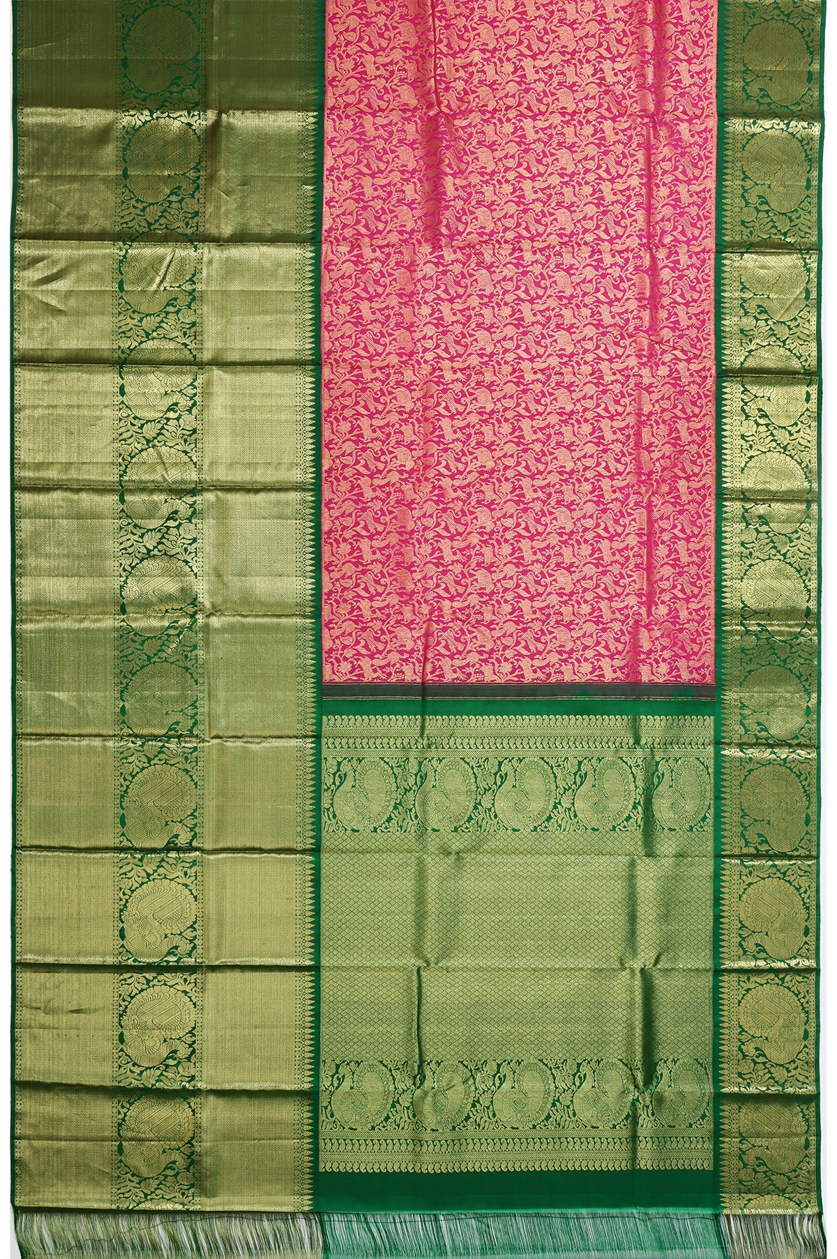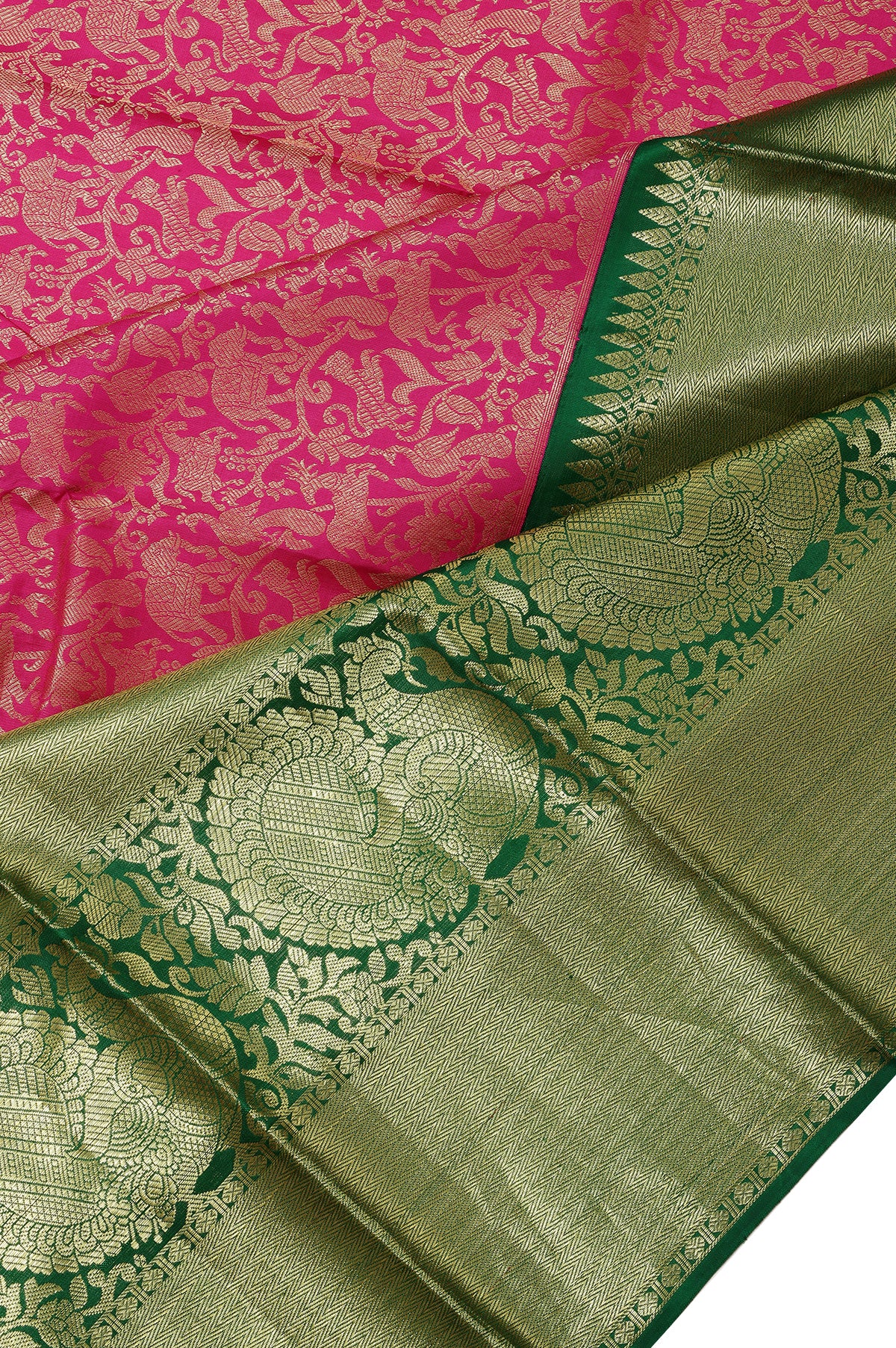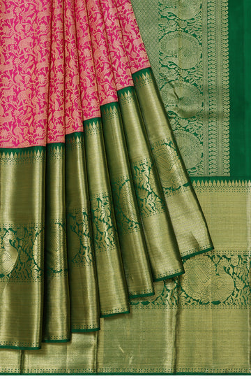 Pink Kanchipuram Silk Saree with Mayil and Maan Motifs