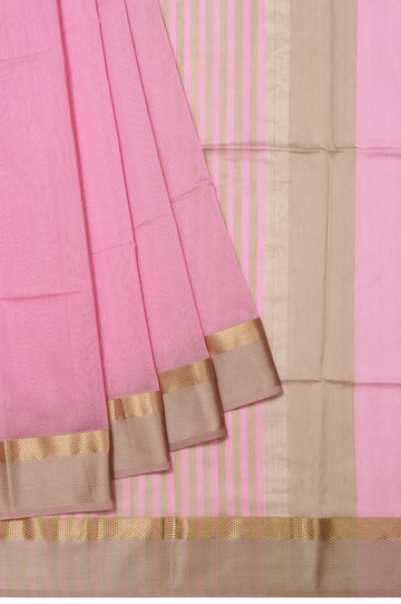 Pink Maheshwari Silk Saree with Sandal Pallu and Border