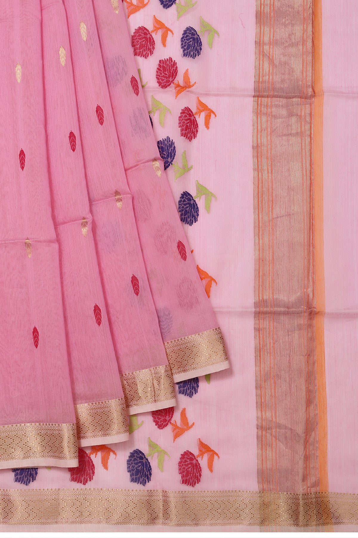 Pink Maheshwari Silk Saree with Thread Work and Gold Zari