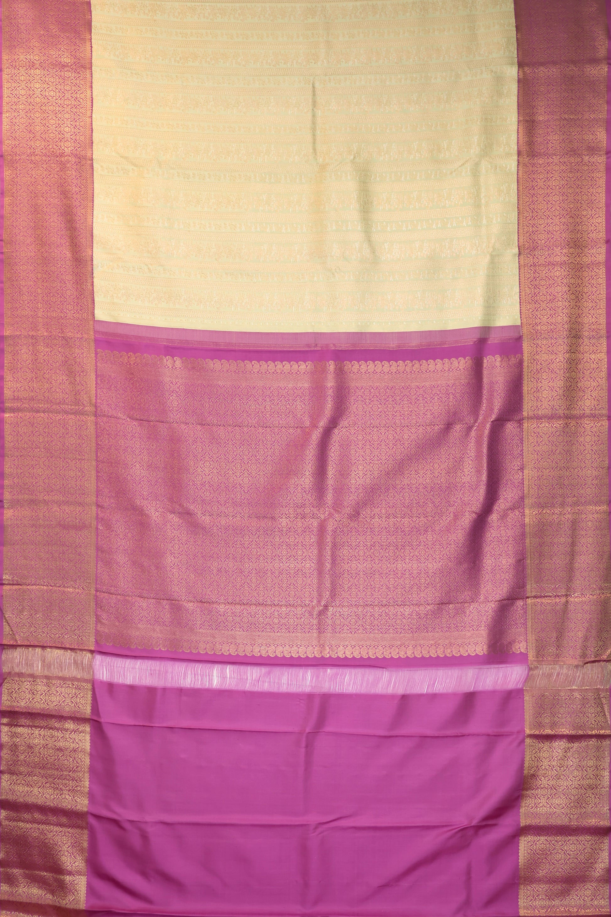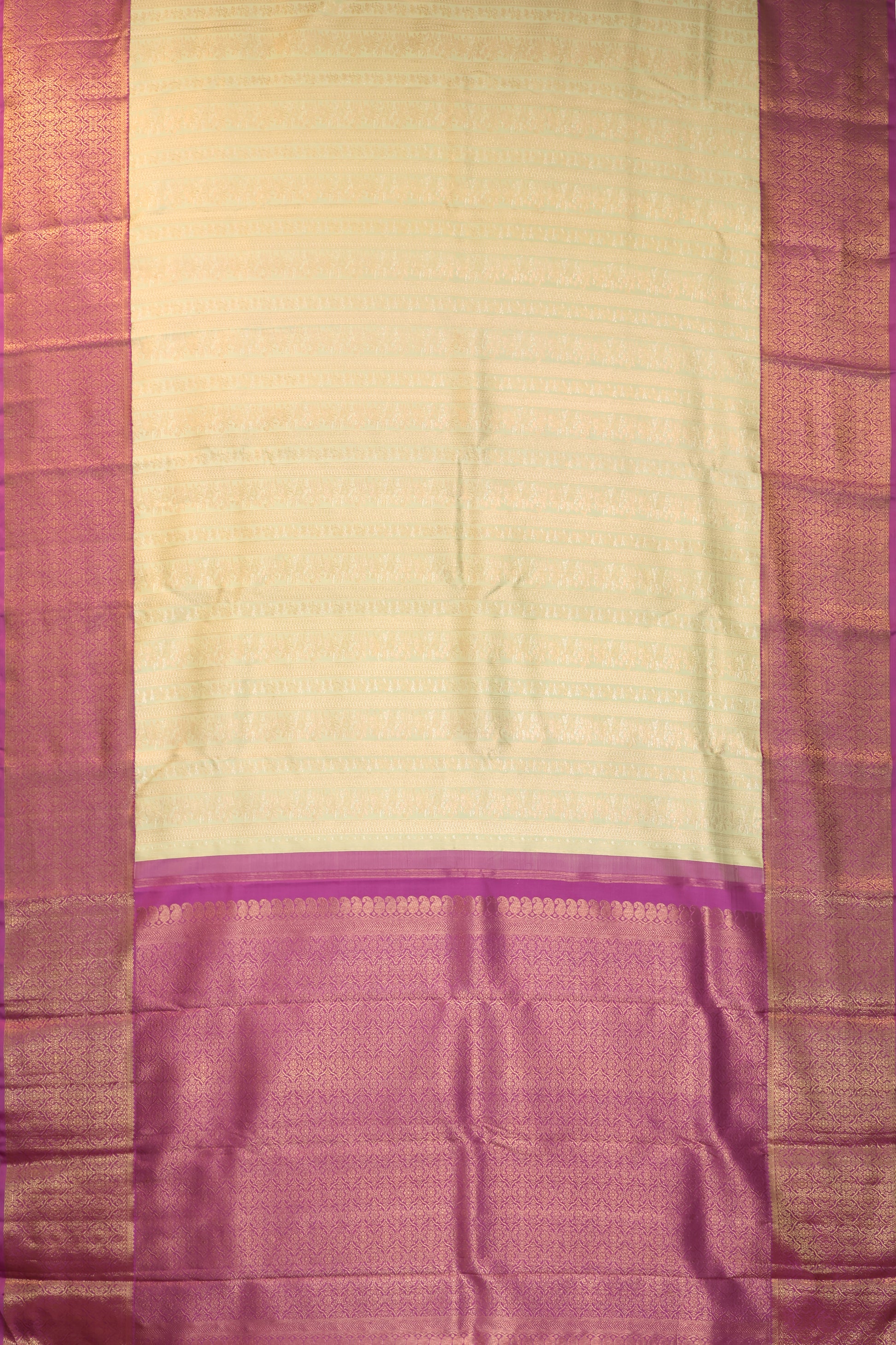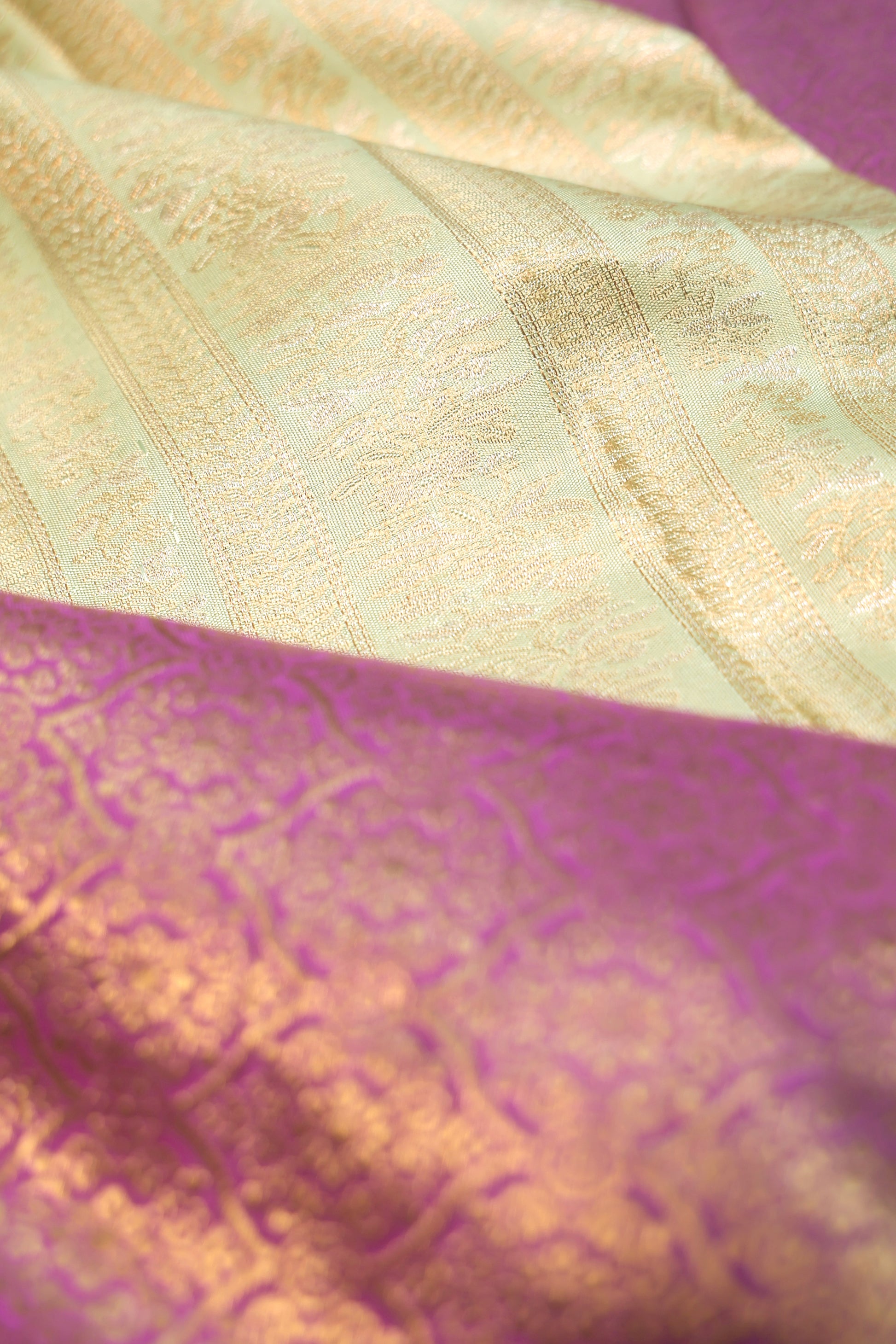 Pista Green Kanchipuram Silk Saree with Lavender Gold Zari Border