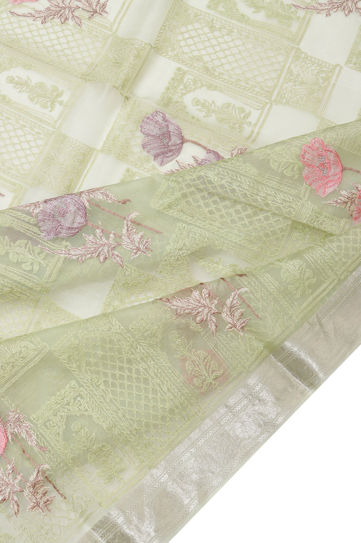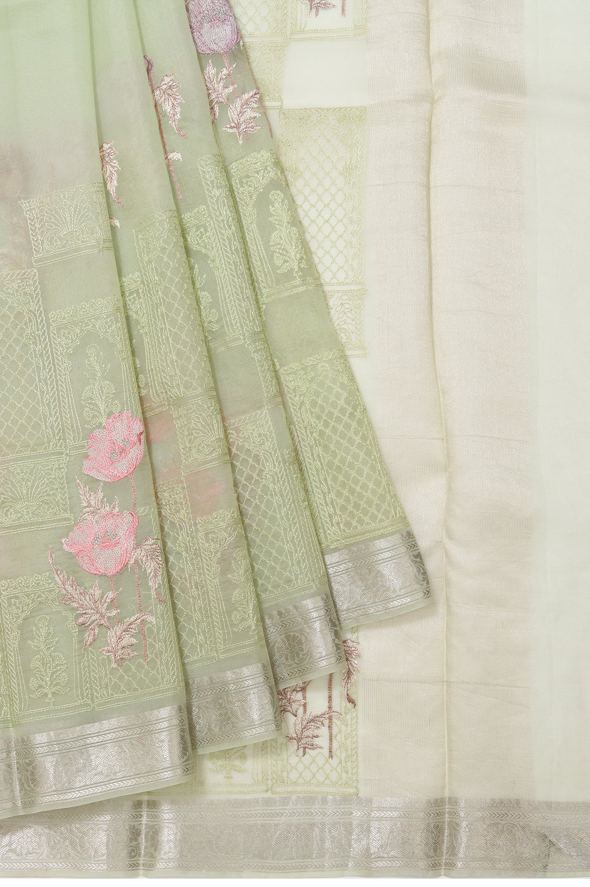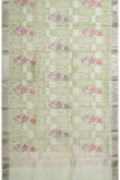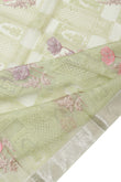 Pista Green Organza Silk Saree with Meenakari Work and Silver Zari Highlights