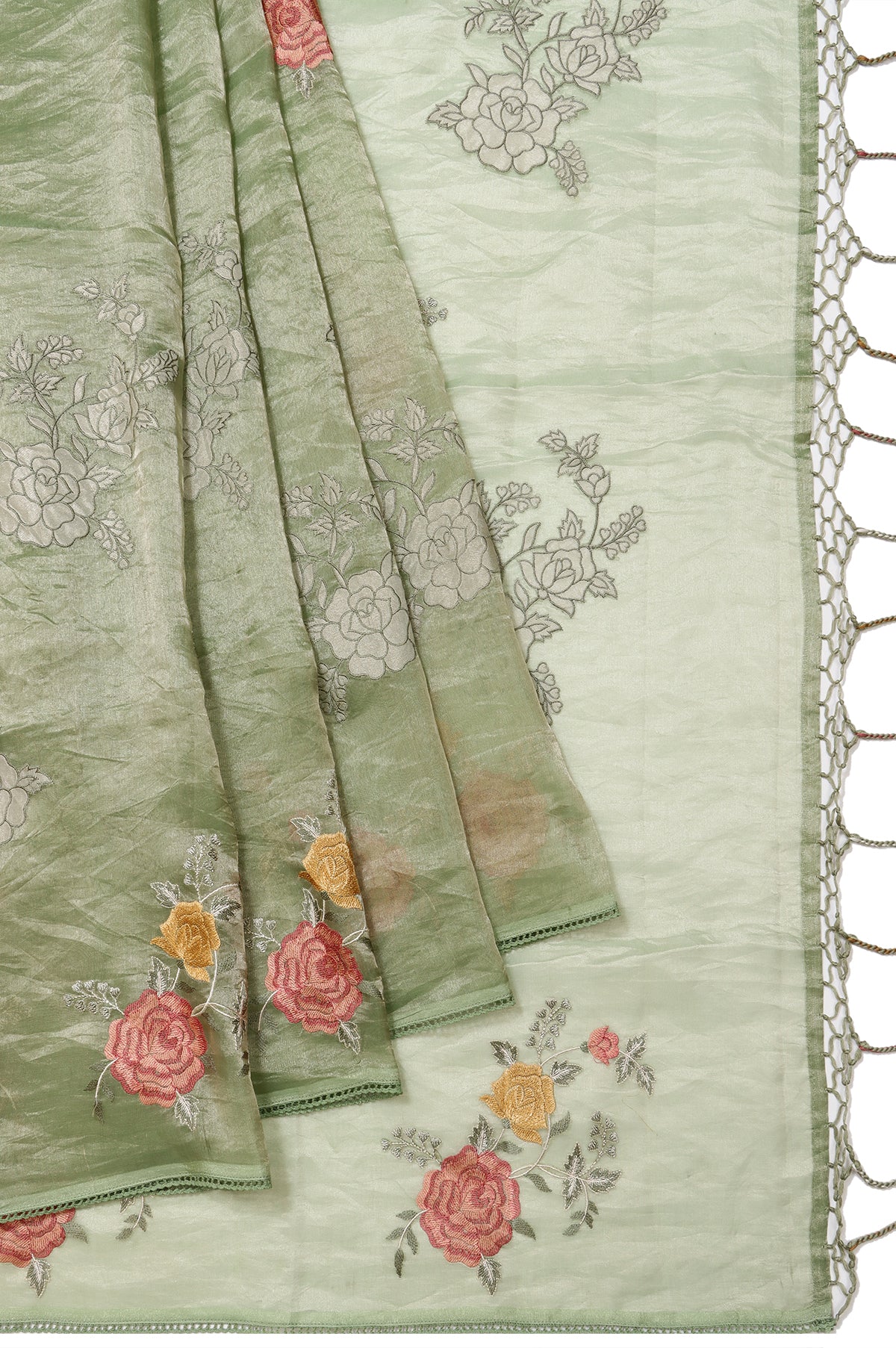Ironing: Iron the saree on a low to medium setting while it's slightly damp. Use a cotton or muslin cloth on top of the saree to protect delicate embroidery or zari work.
