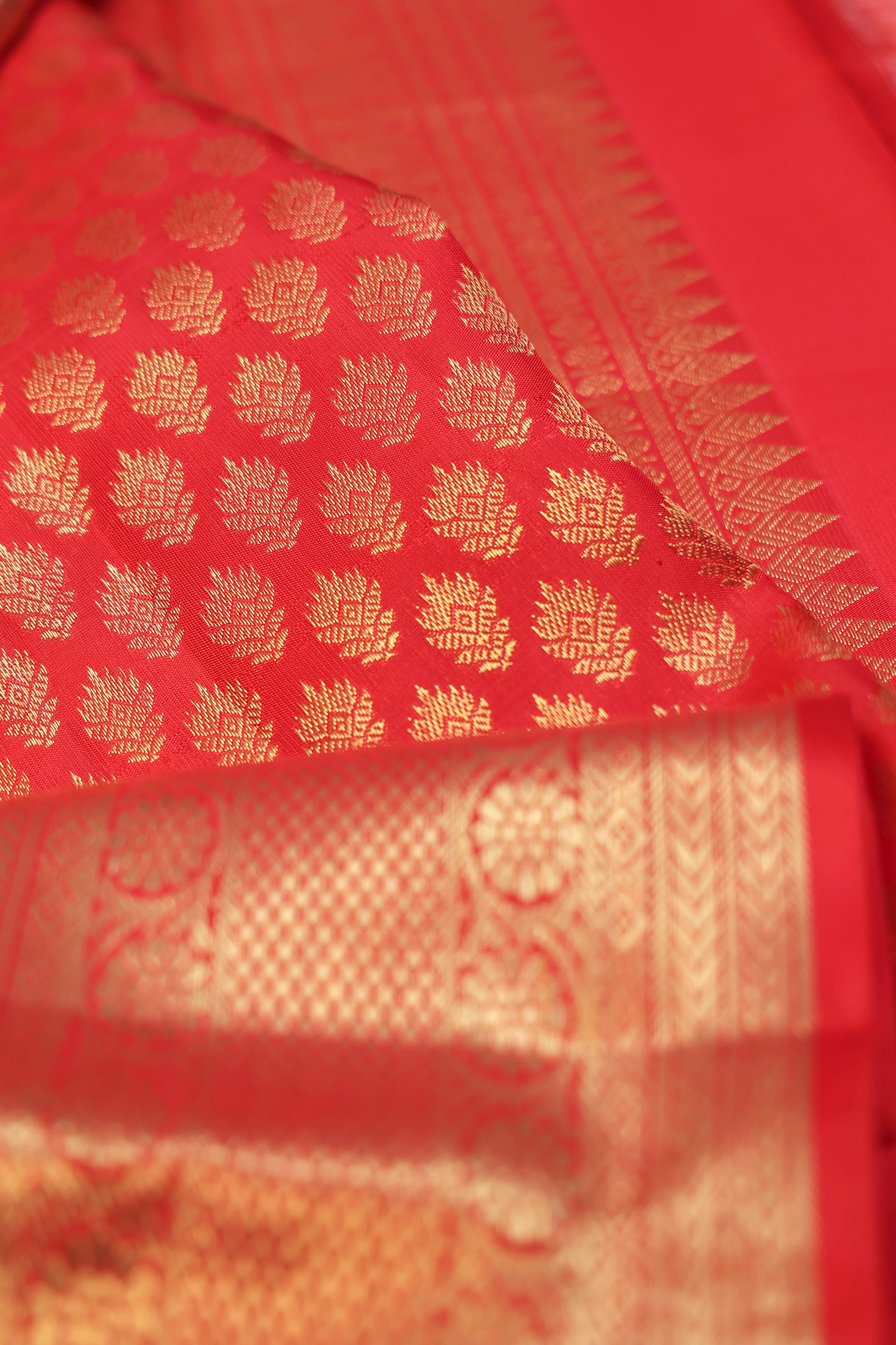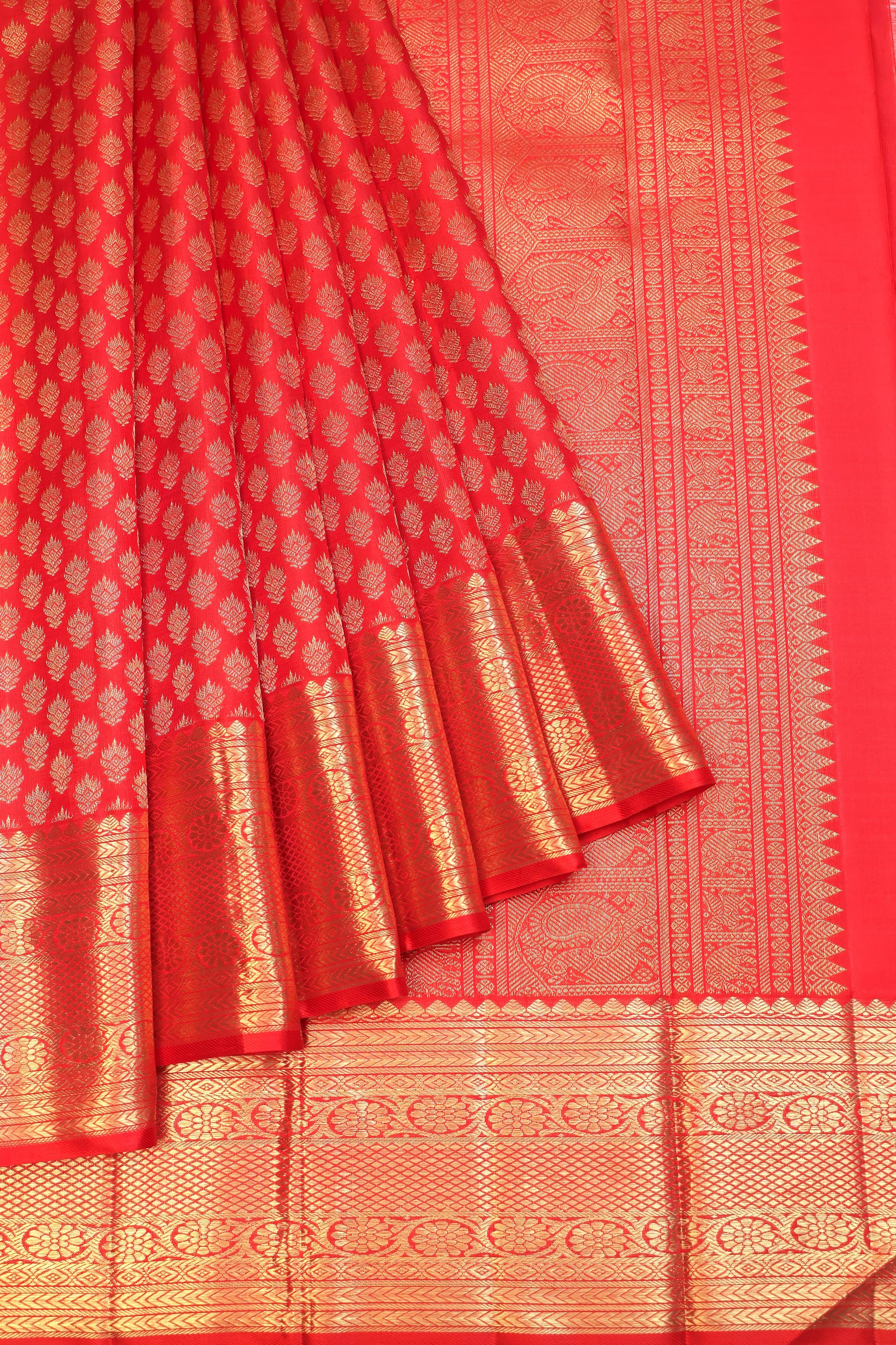 Red Kanchipuram Silk Saree with All-Over Flower Butta