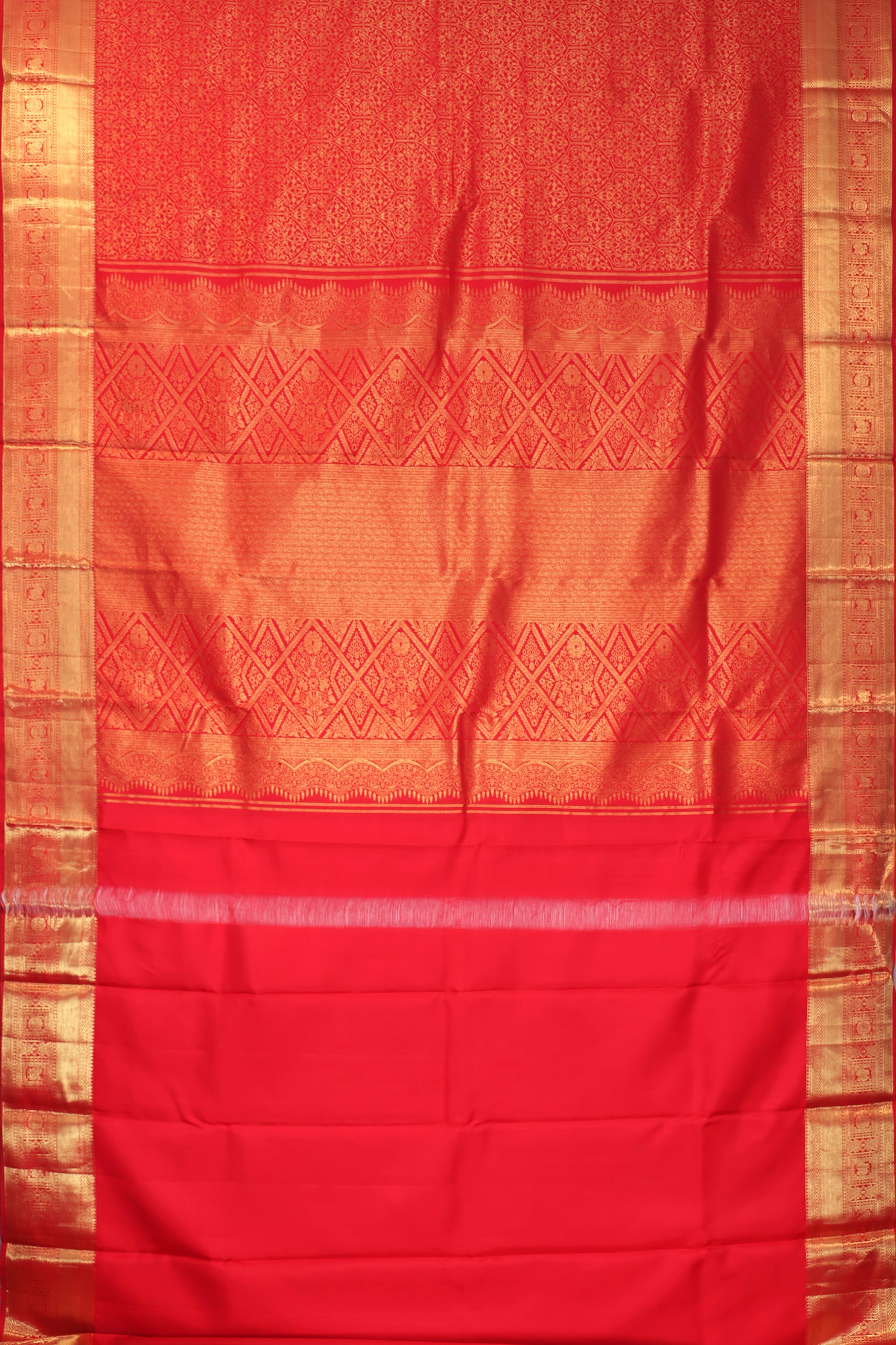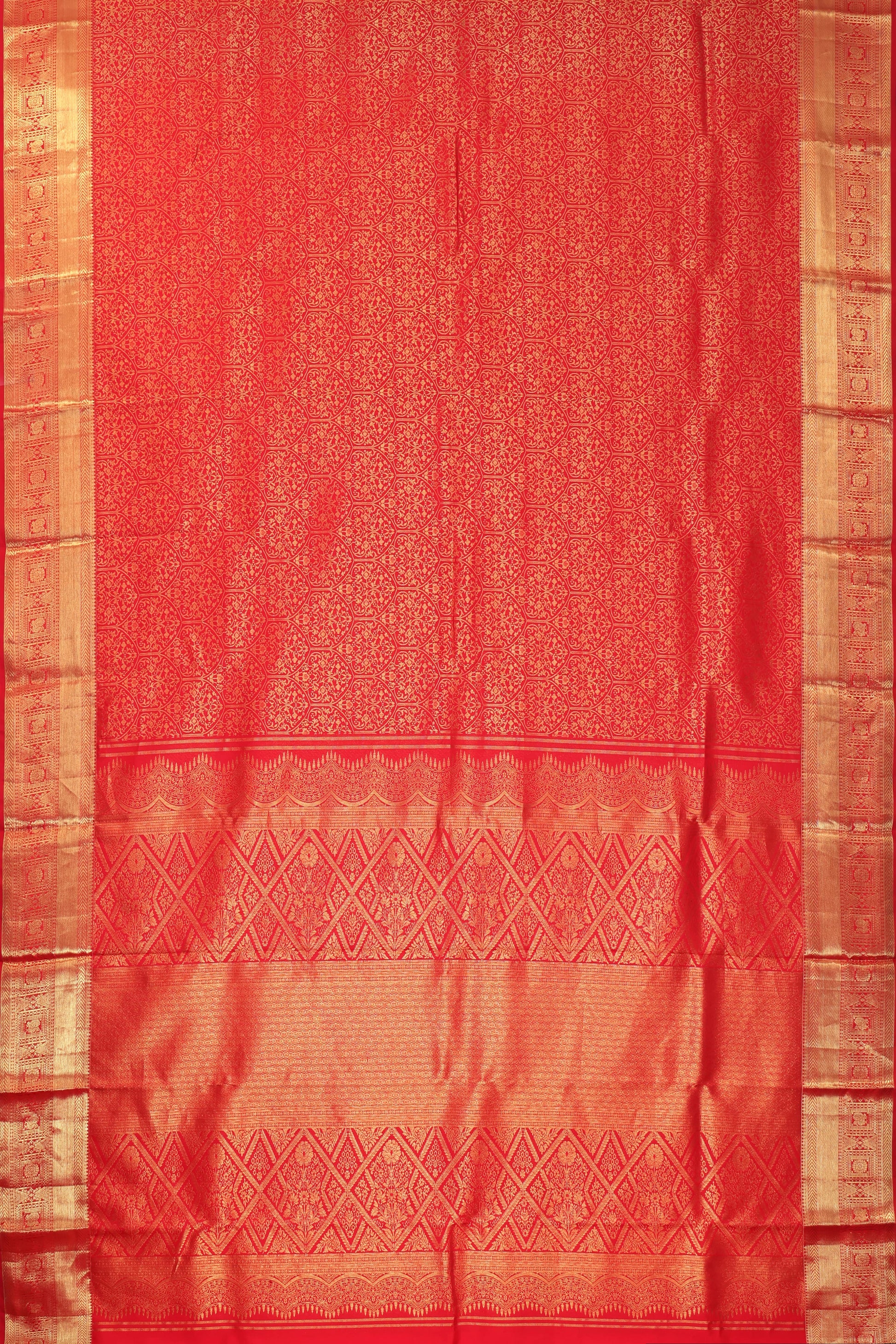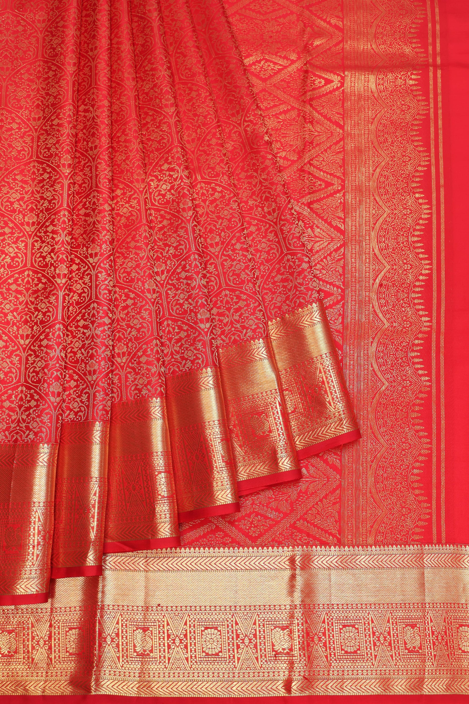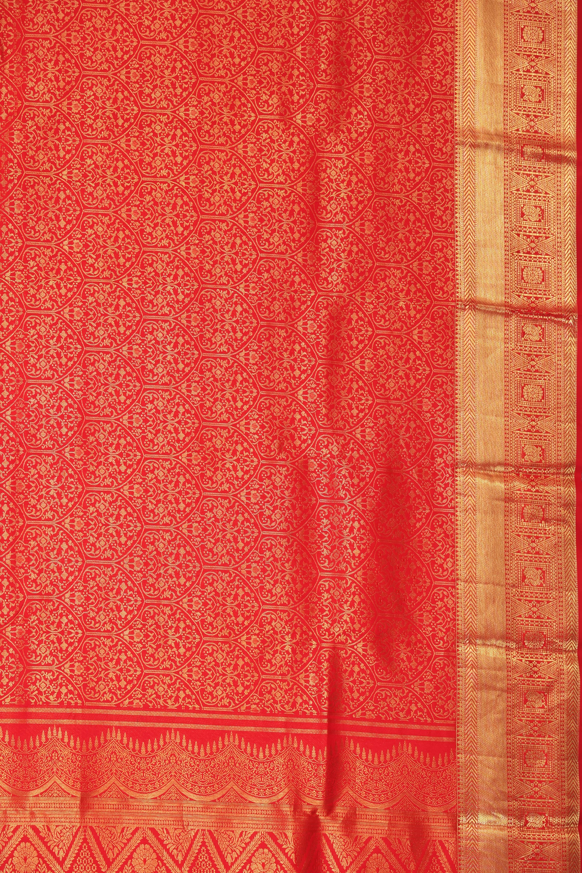 Red Kanchipuram Silk Saree with All Over Leaf Jaal Design