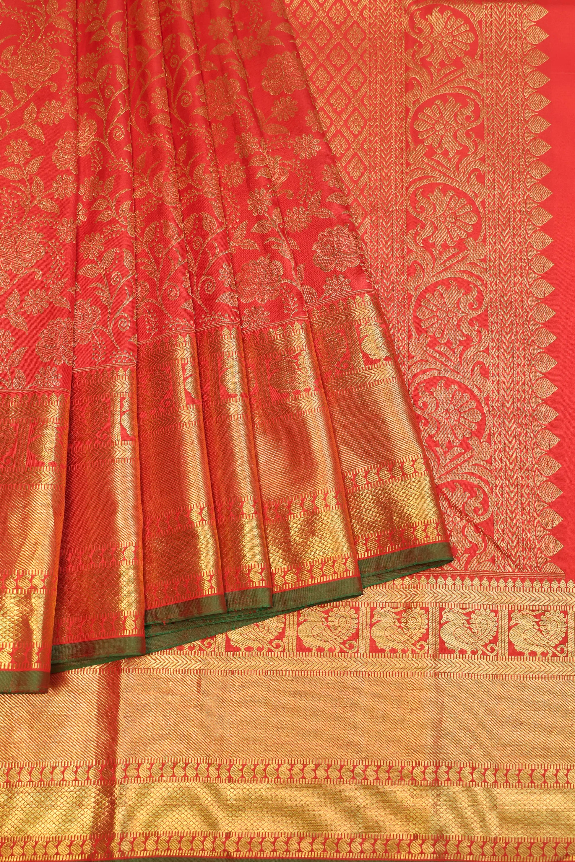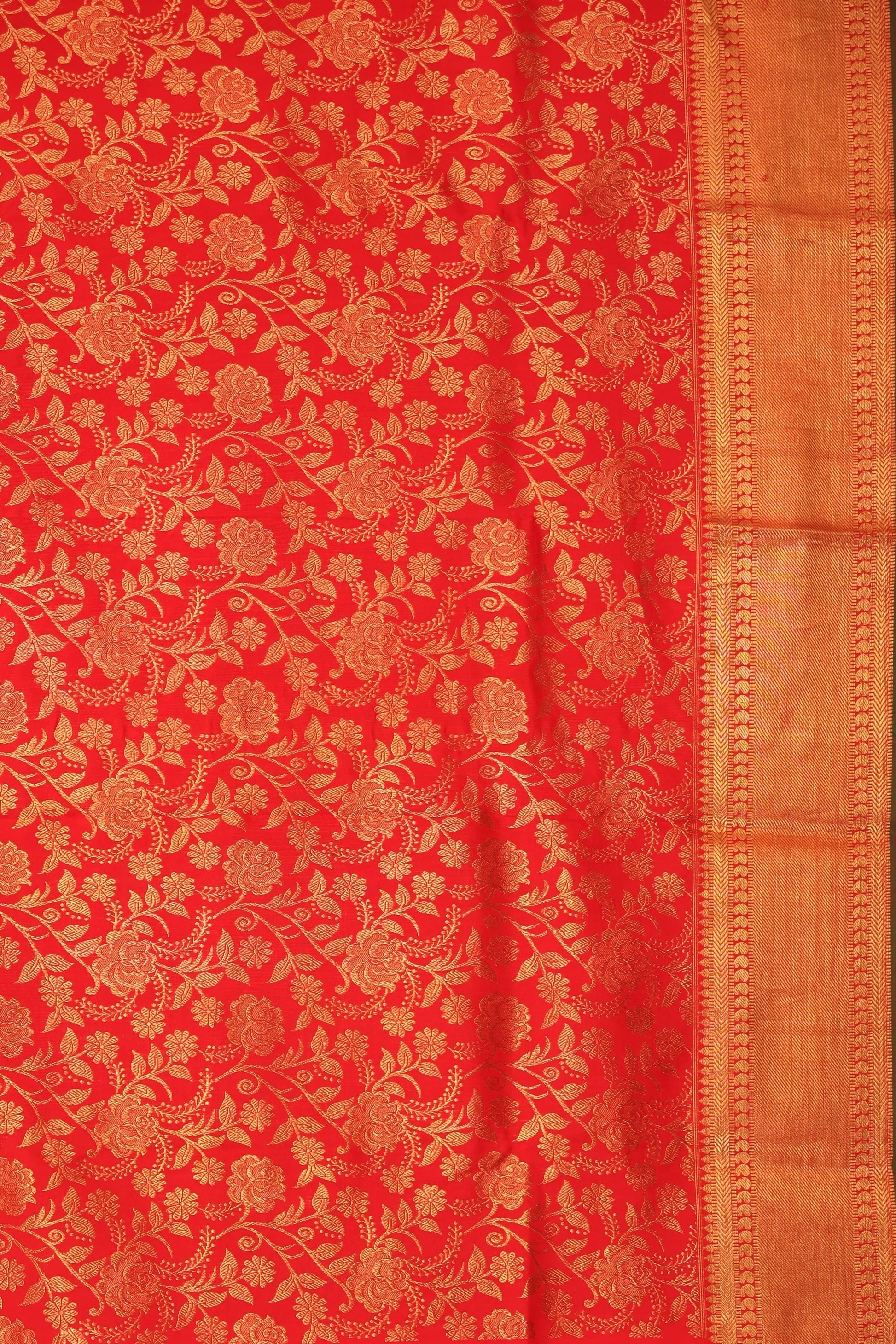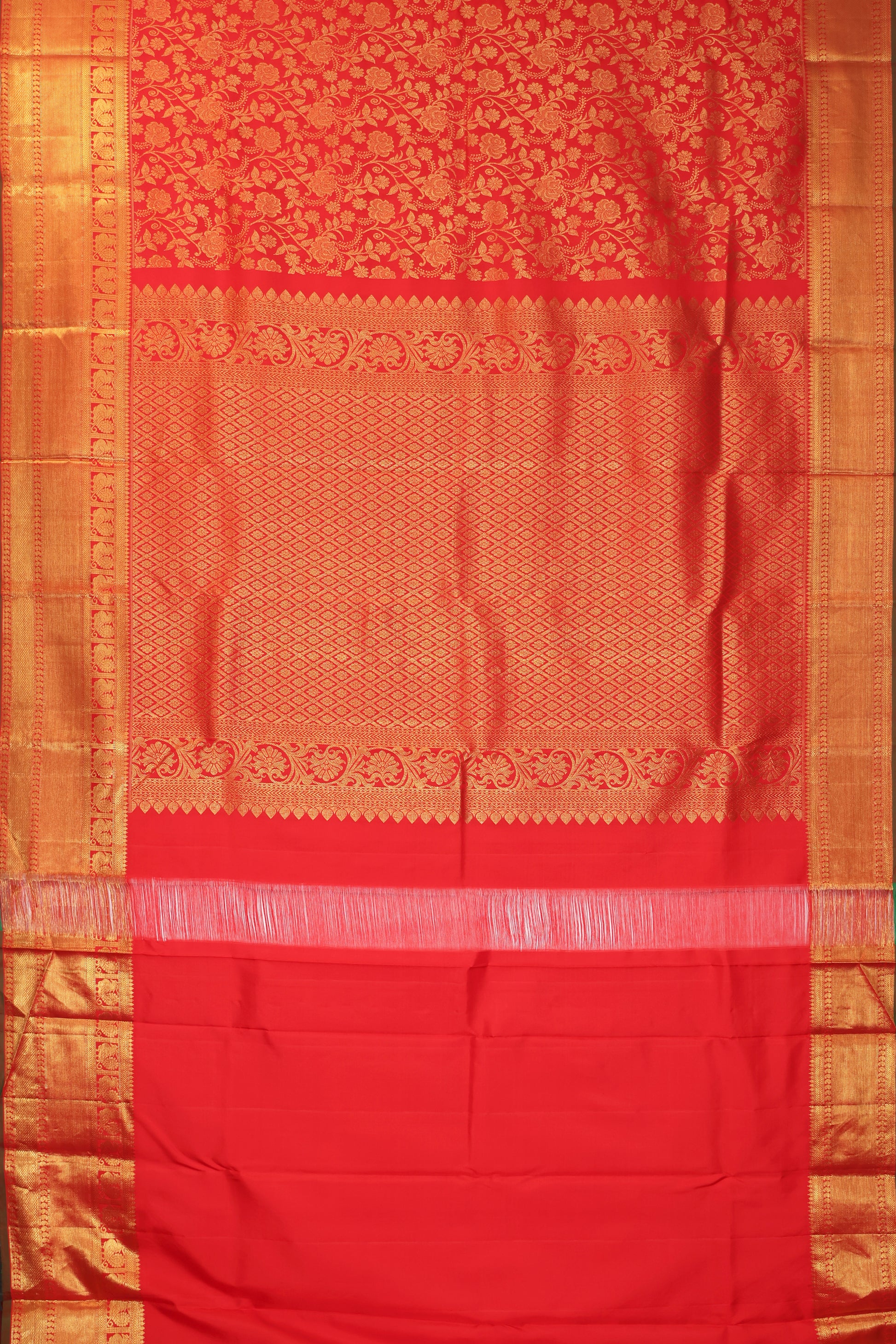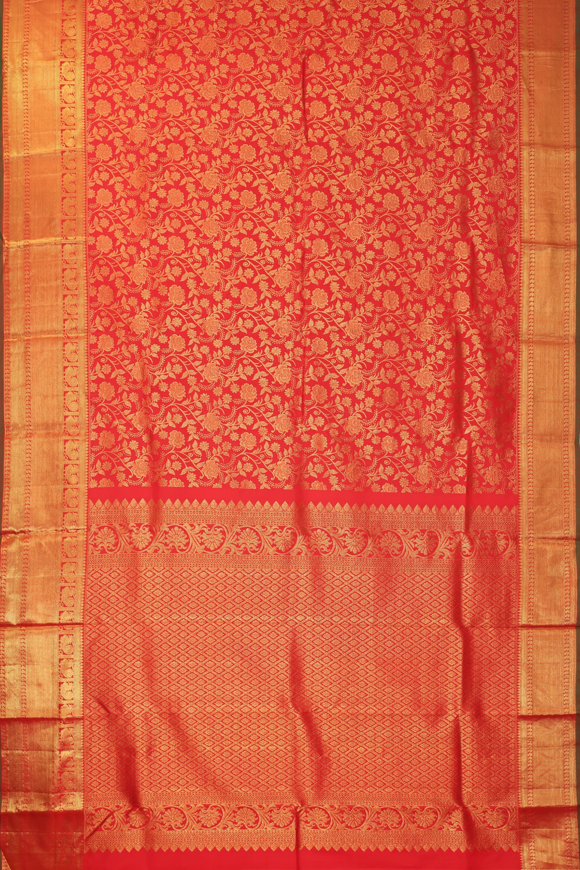 Red Kanchipuram Silk Saree with Gold Zari Floral Jaal
