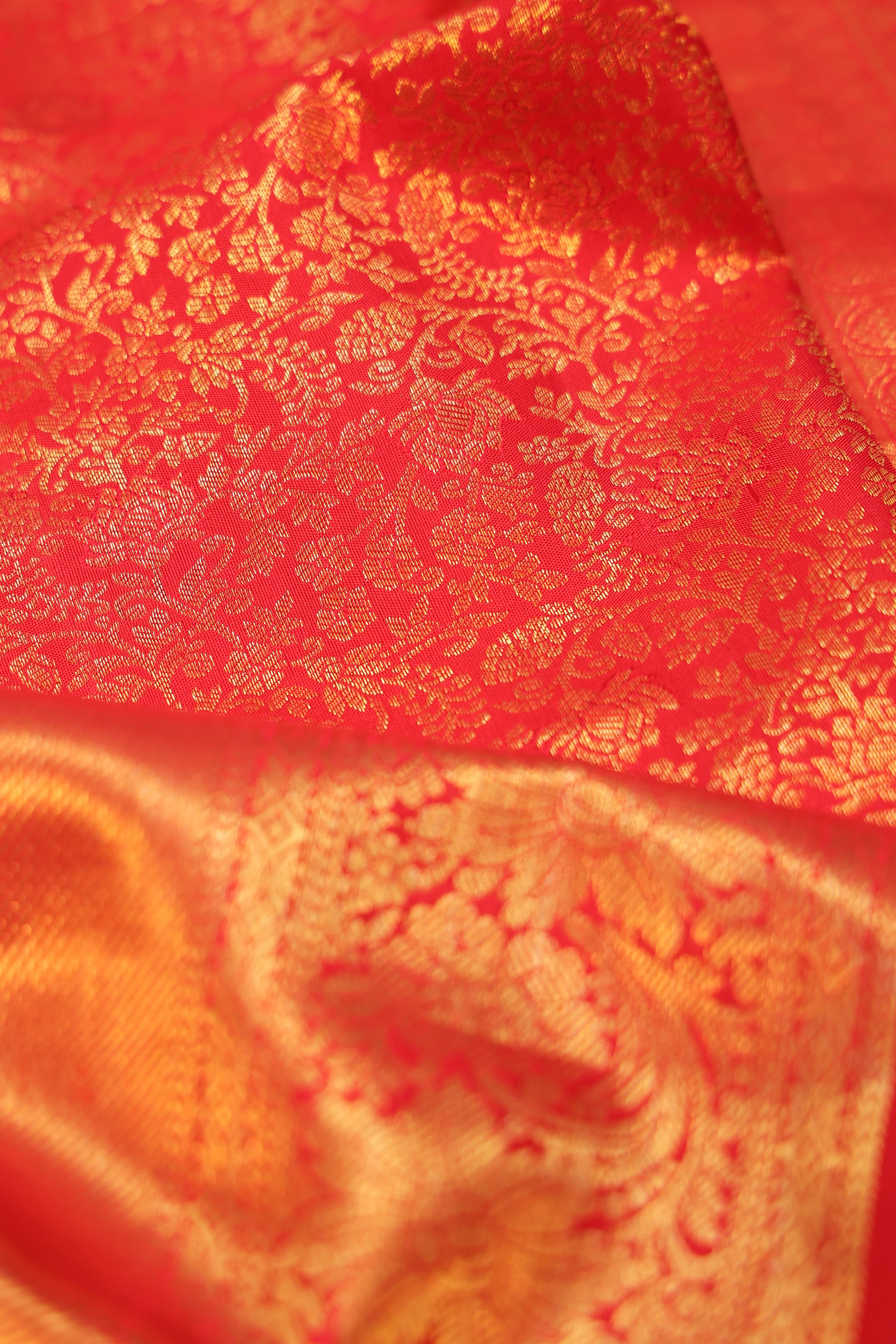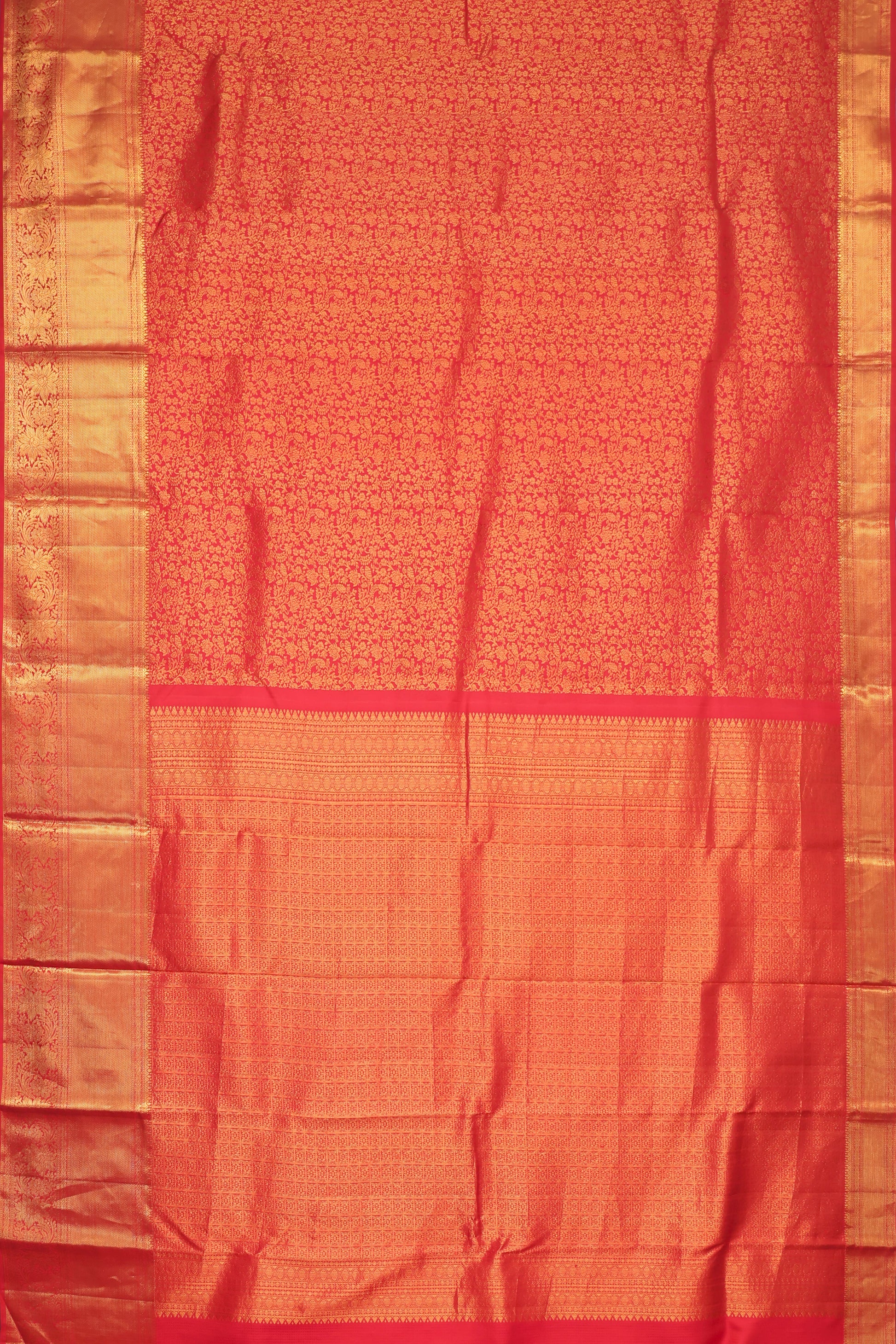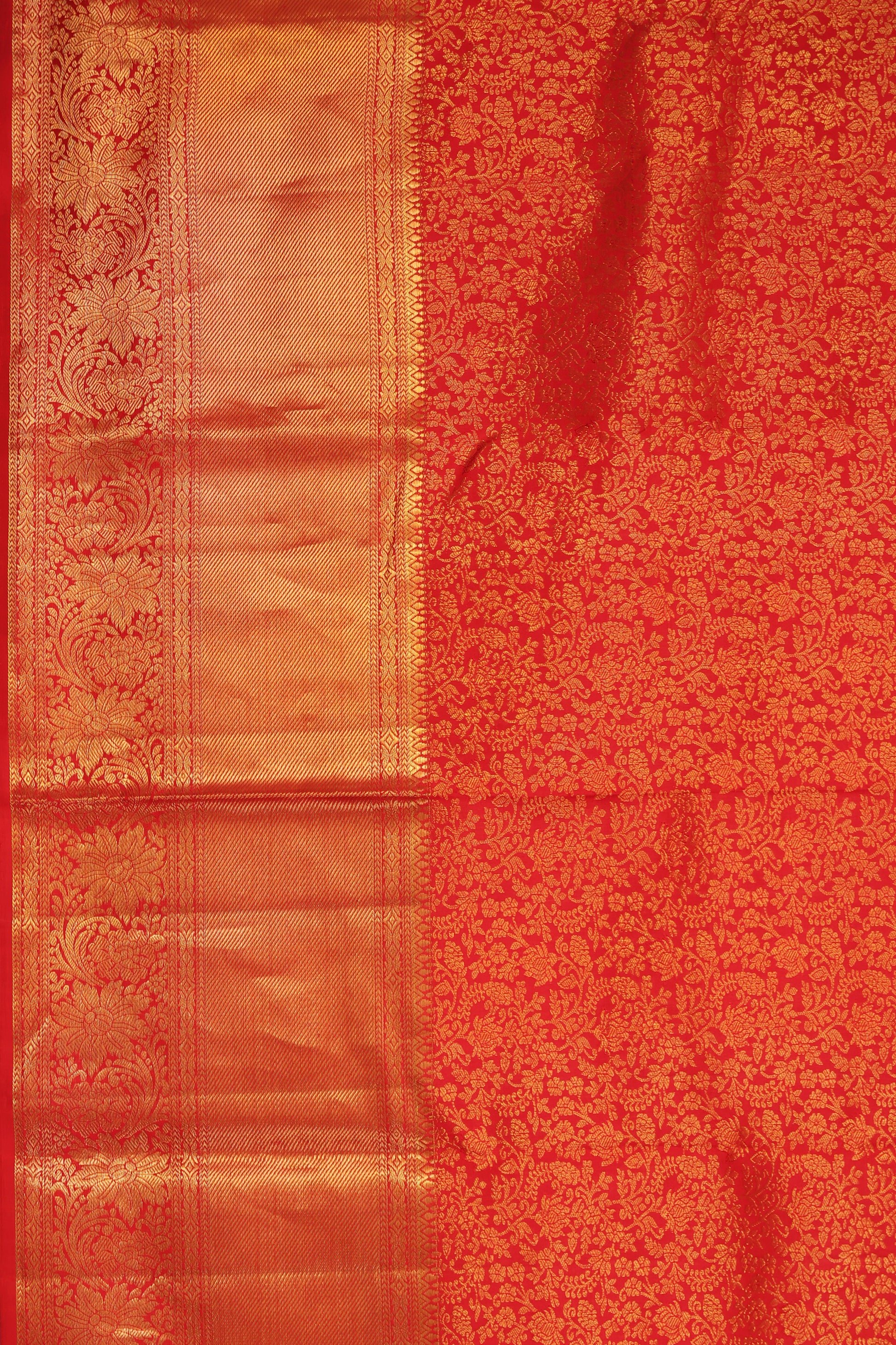 Red Kanchipuram Silk Saree with Gold Zari Floral Jaal