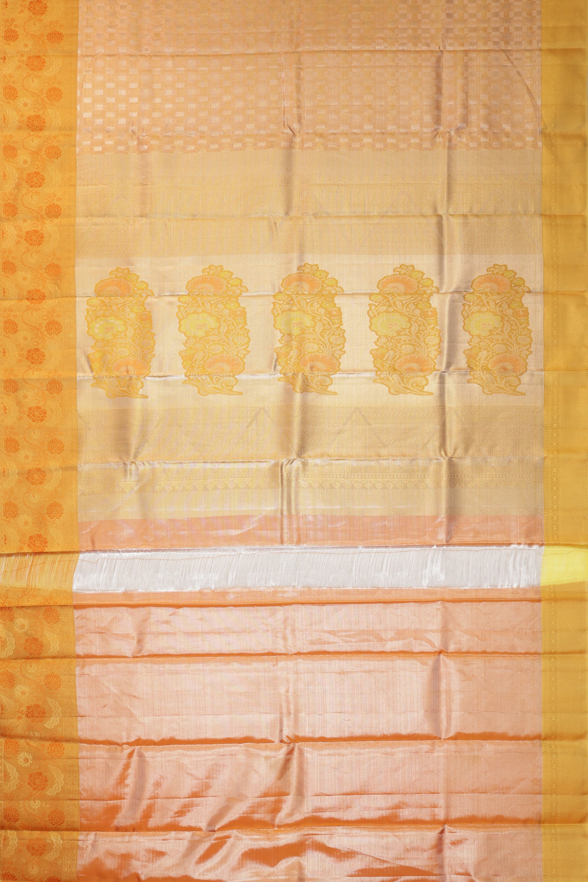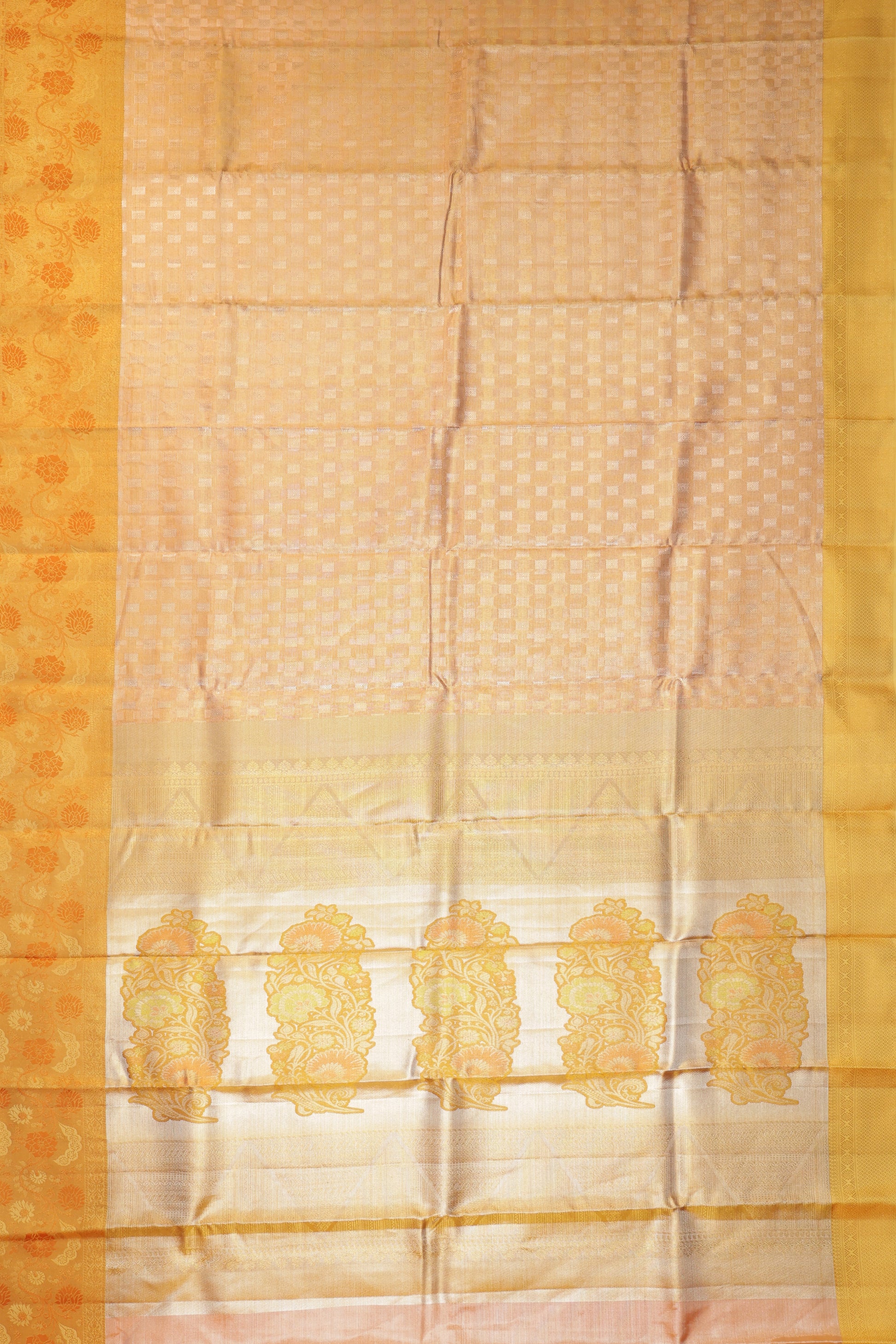 Sandal Kanchipuram Silk Saree with Mustard Floral Border