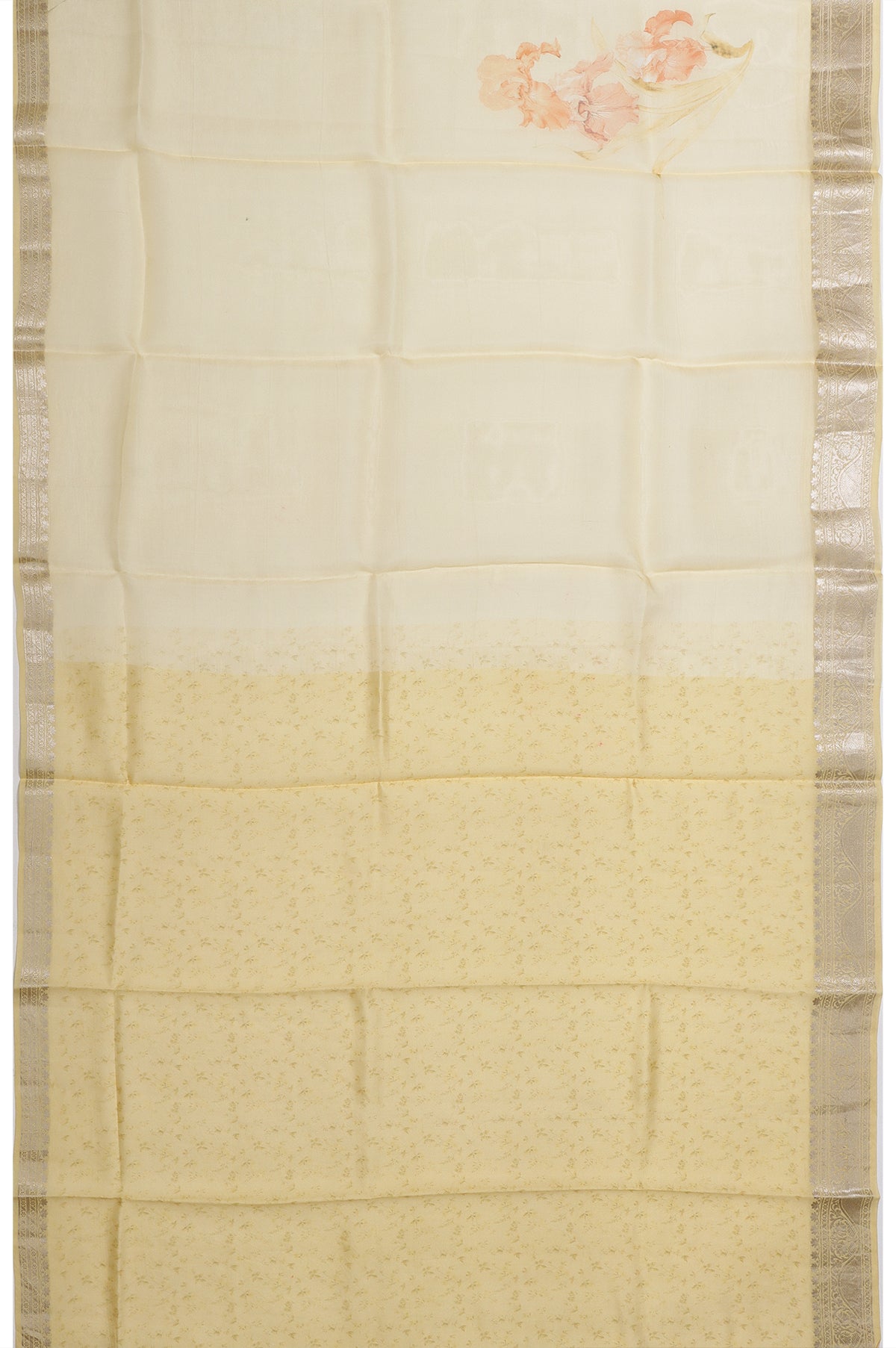 Sandal Organza Saree with Floral Detailing and Silver Zari