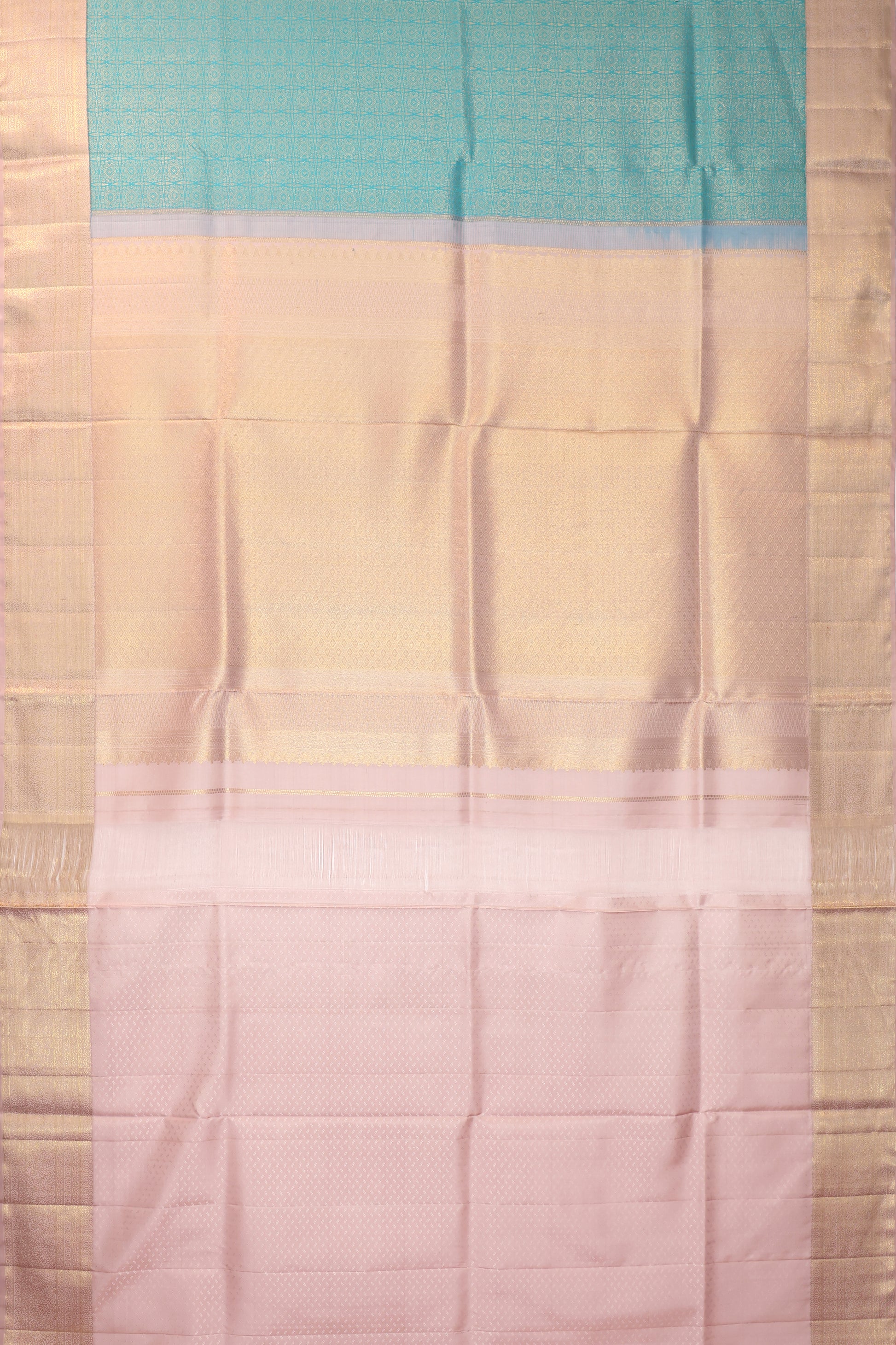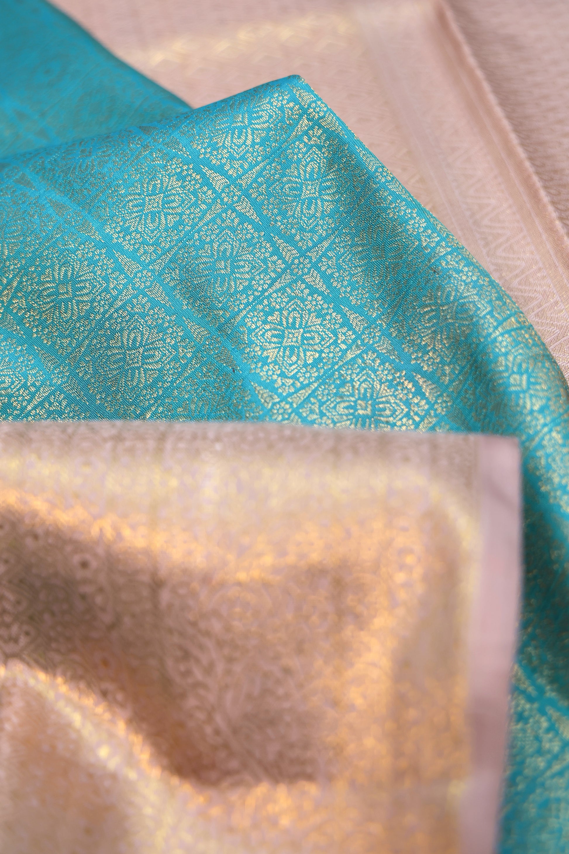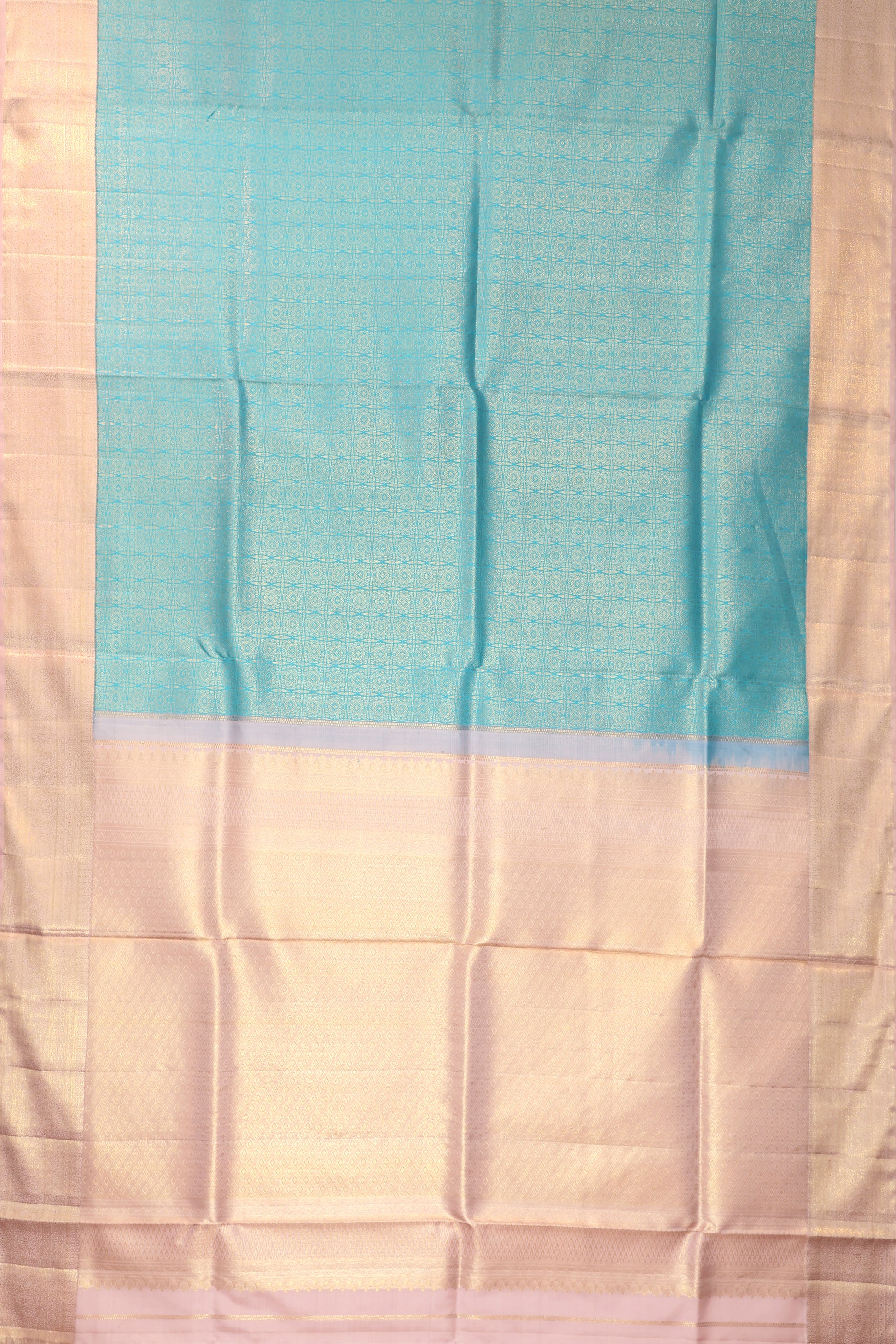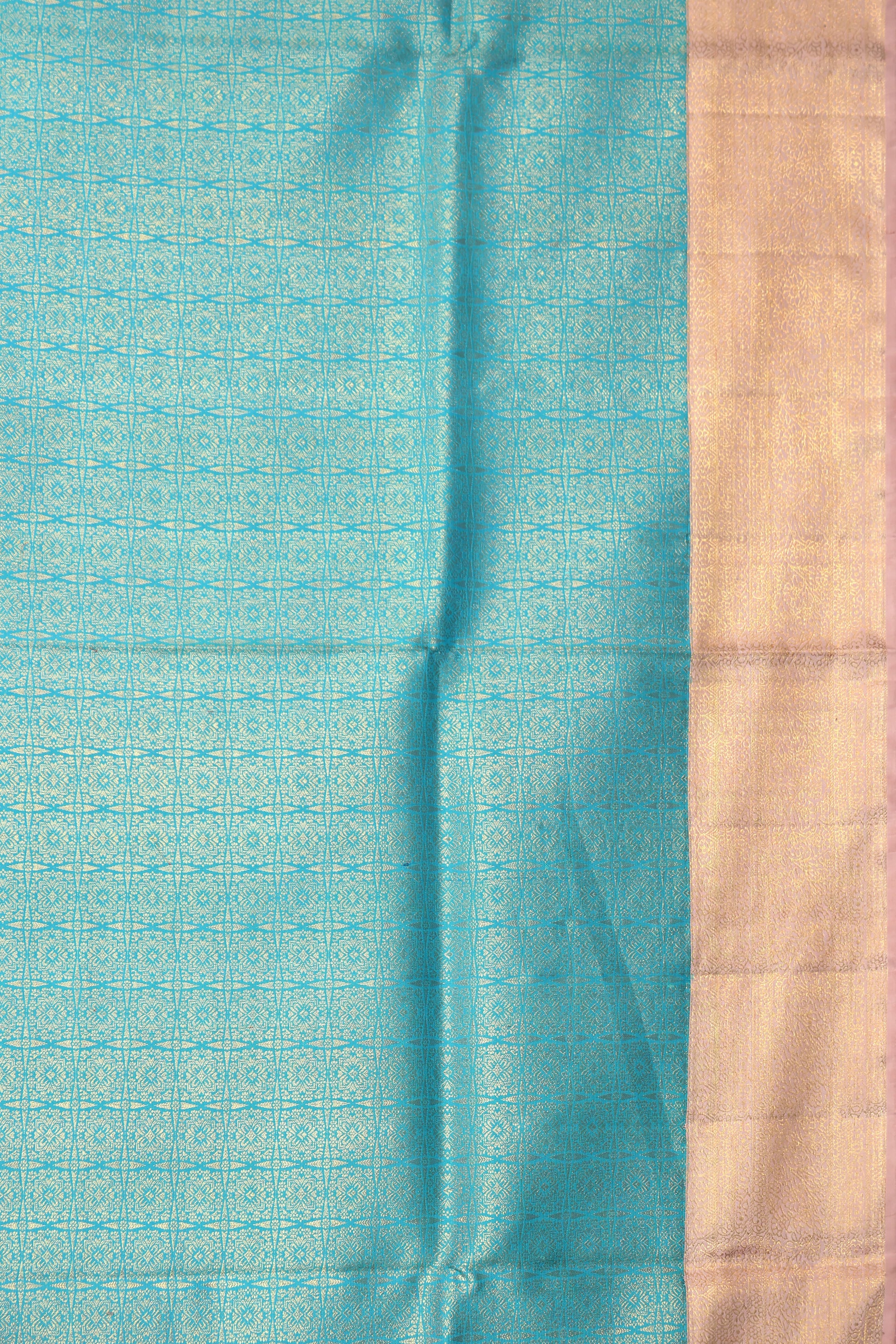 Sea Blue Kanchipuram Silk Saree with Beige Zari Border