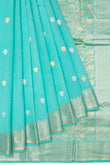 Elevate your elegance with our Sea Green Silk Saree. The serene sea green hue is complemented by a self-colored border adorned with intricate gold and silver zari, featuring a twill design and delicate leaf and flower butta. The pallu echoes this opulence with its matching color, gold and silver zari, twill design, and a captivating floral jaal. The self-patterned blouse with a plain border and a body design of gold and silver zari brocade butta completes this ensemble, creating a stunning and graceful look.