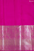 Description: This cool Kanchipuram Silk Saree reminds you of moonlight on blue lagoons. The pink blouse beautifully and most appropriately breaks the monotony of muted sea green given to it. The pretty saree is endowed with all the necessary works to make it to your rich wardrobe. If the body, shining with silver zari and floral jaal, tenderly hugs your contours, the piping and blouse that sport bright pink colour enhance your elegance. The pallu needs a special mention as it carries silver zari, rudraksha butta and mayil motifs.