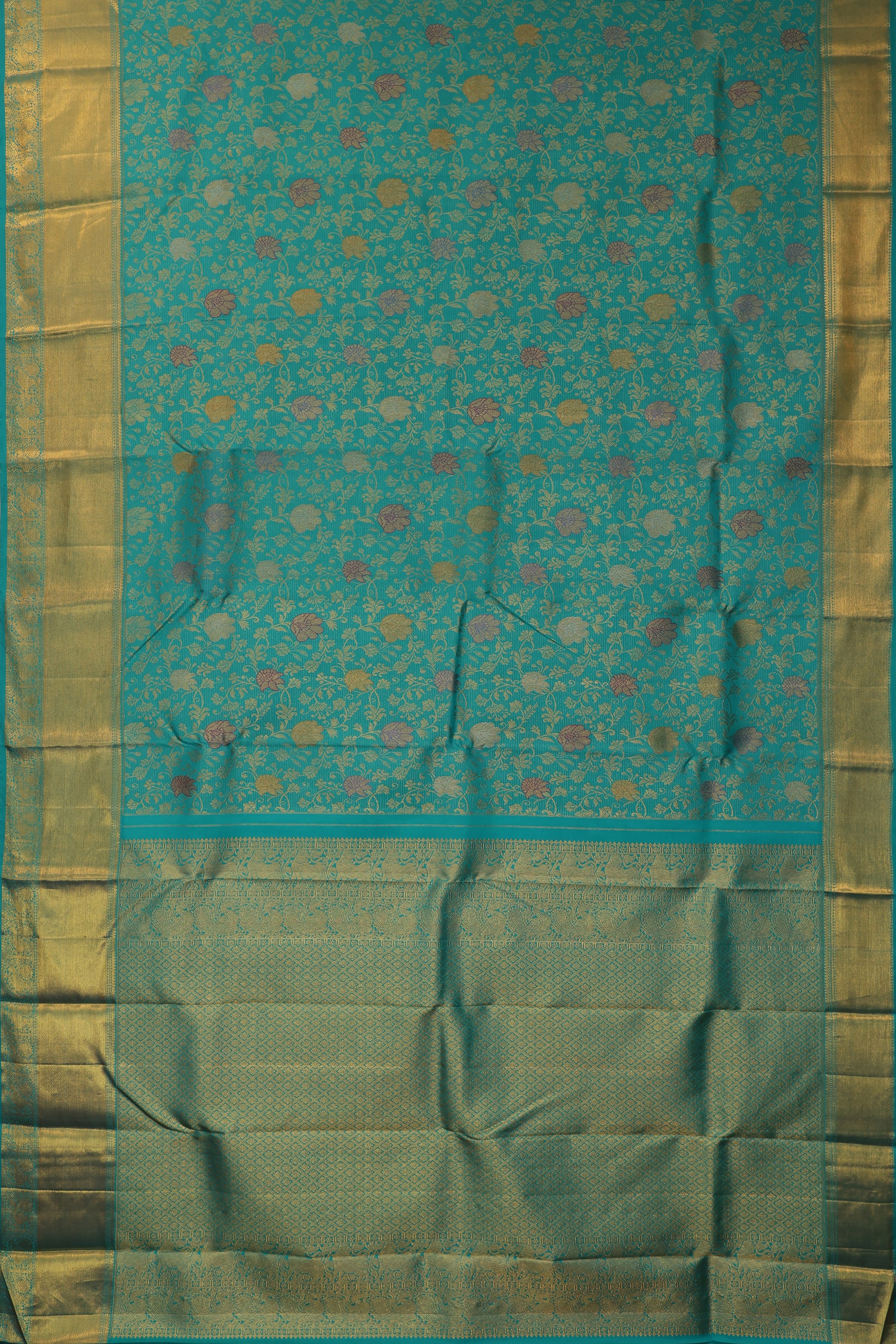 Sea Green Kanchipuram Silk with Simham & Mayil Motifs Pallu