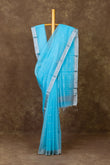 The sky blue Chanderi Silk Cotton Saree is a masterpiece of elegance. It features a silver zari kaddi border, a self-colored pallu adorned with silver zari stripes and delicate tassels. While the intricate thread butta design on the body adds a touch of sophistication.