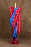 Wrap yourself in opulence with our Blue Ikat Saree, where Gold Zari meets exquisite Ikat craftsmanship in a captivating Kaddi border. The Red Pallu, adorned with Gold Zari highlights, showcases timeless Ikat patterns and subtle stripes. Complemented by a matching Red blouse, this ensemble epitomizes the fusion of tradition and elegance.
