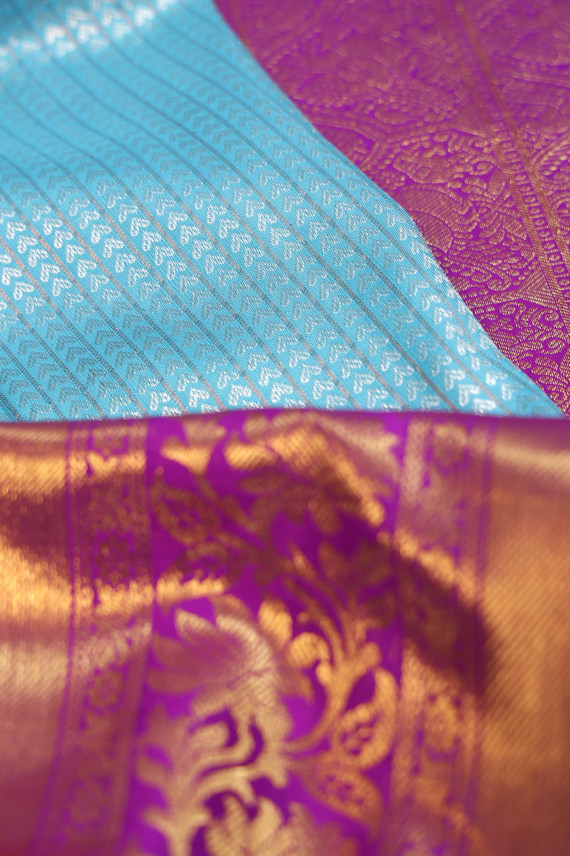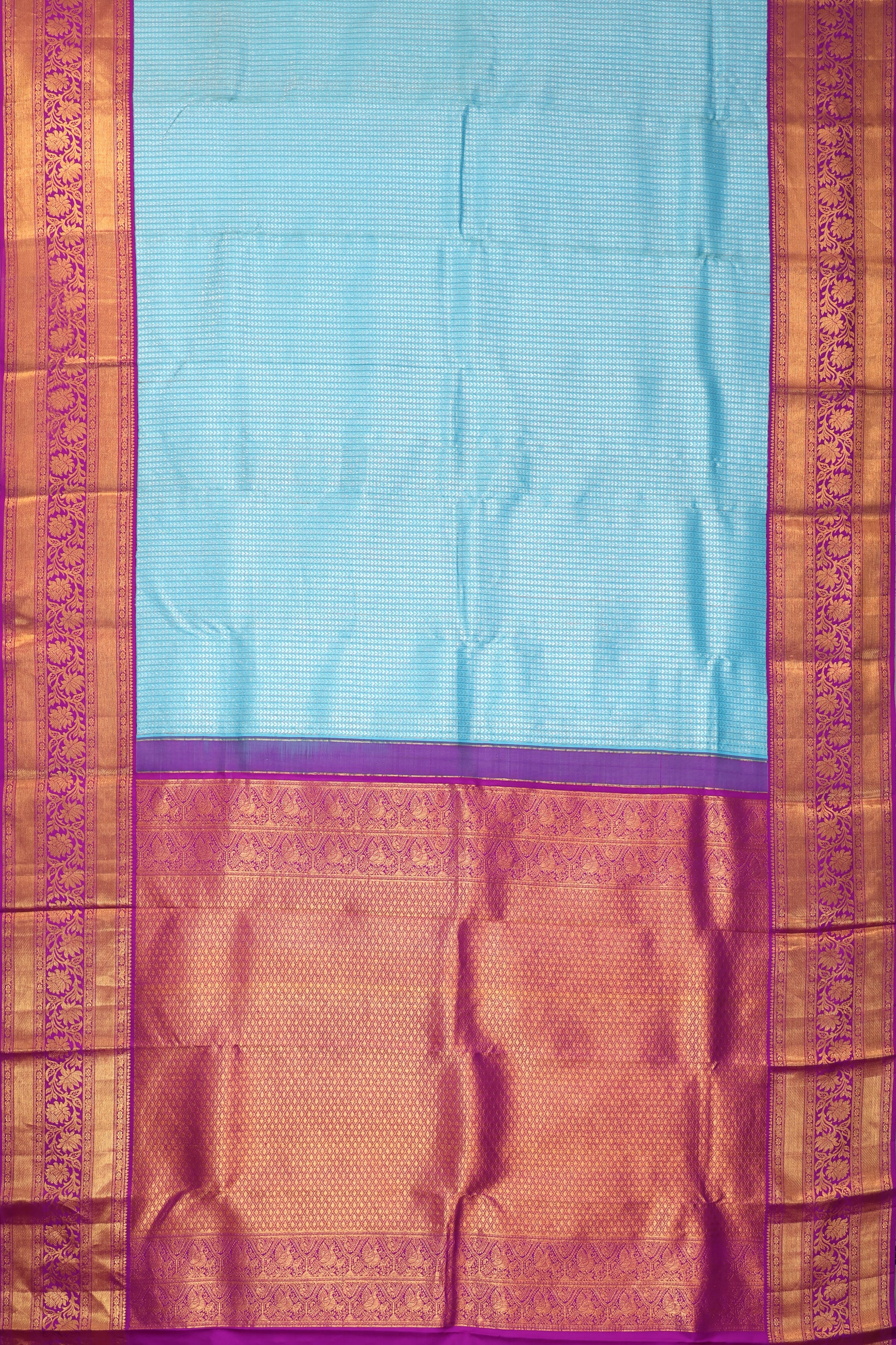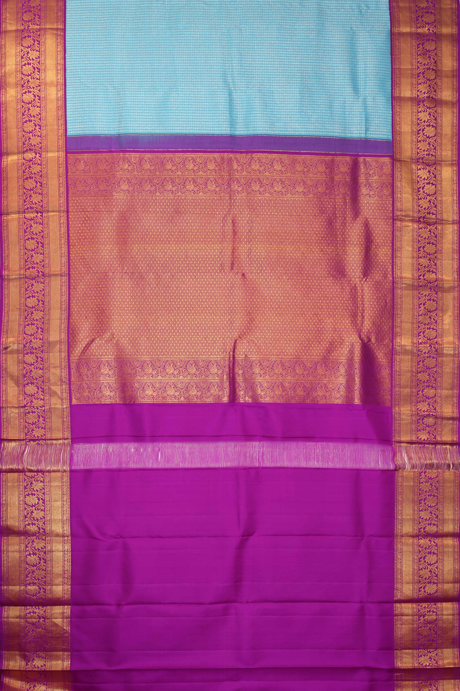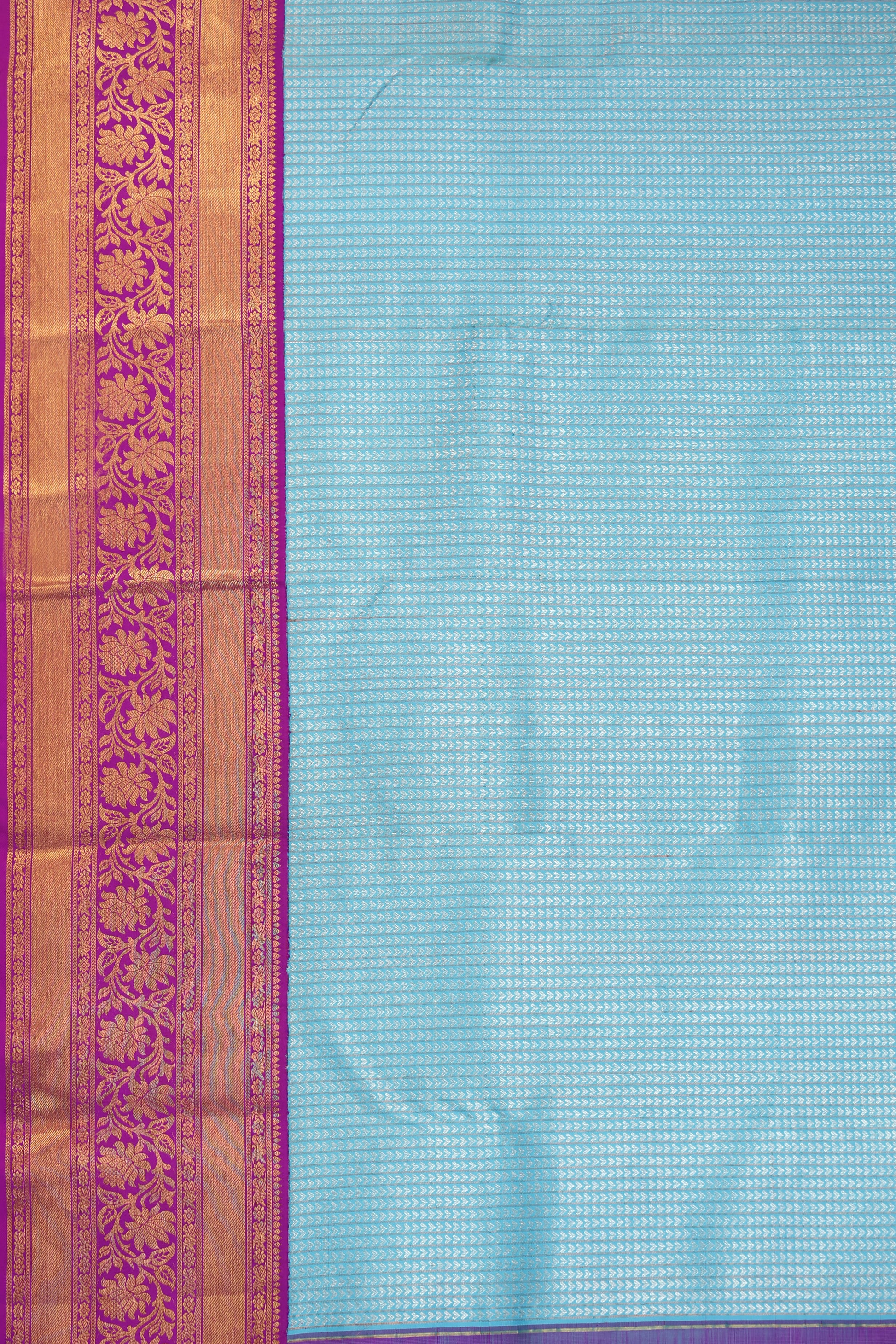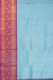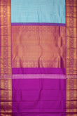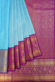 Sky Blue Kanchipuram Silk Saree with Floral Magenta Border