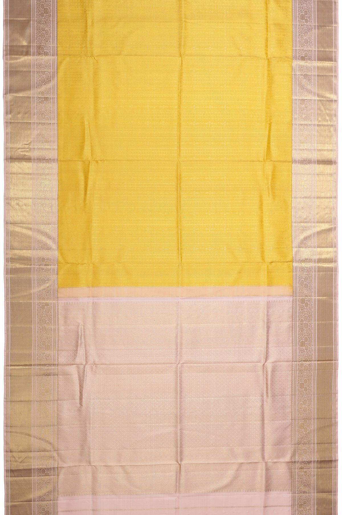 Yellow Kanchipuram Silk Saree with Onion Pink Zari Pallu