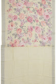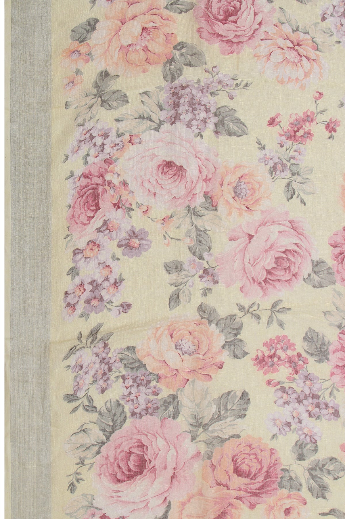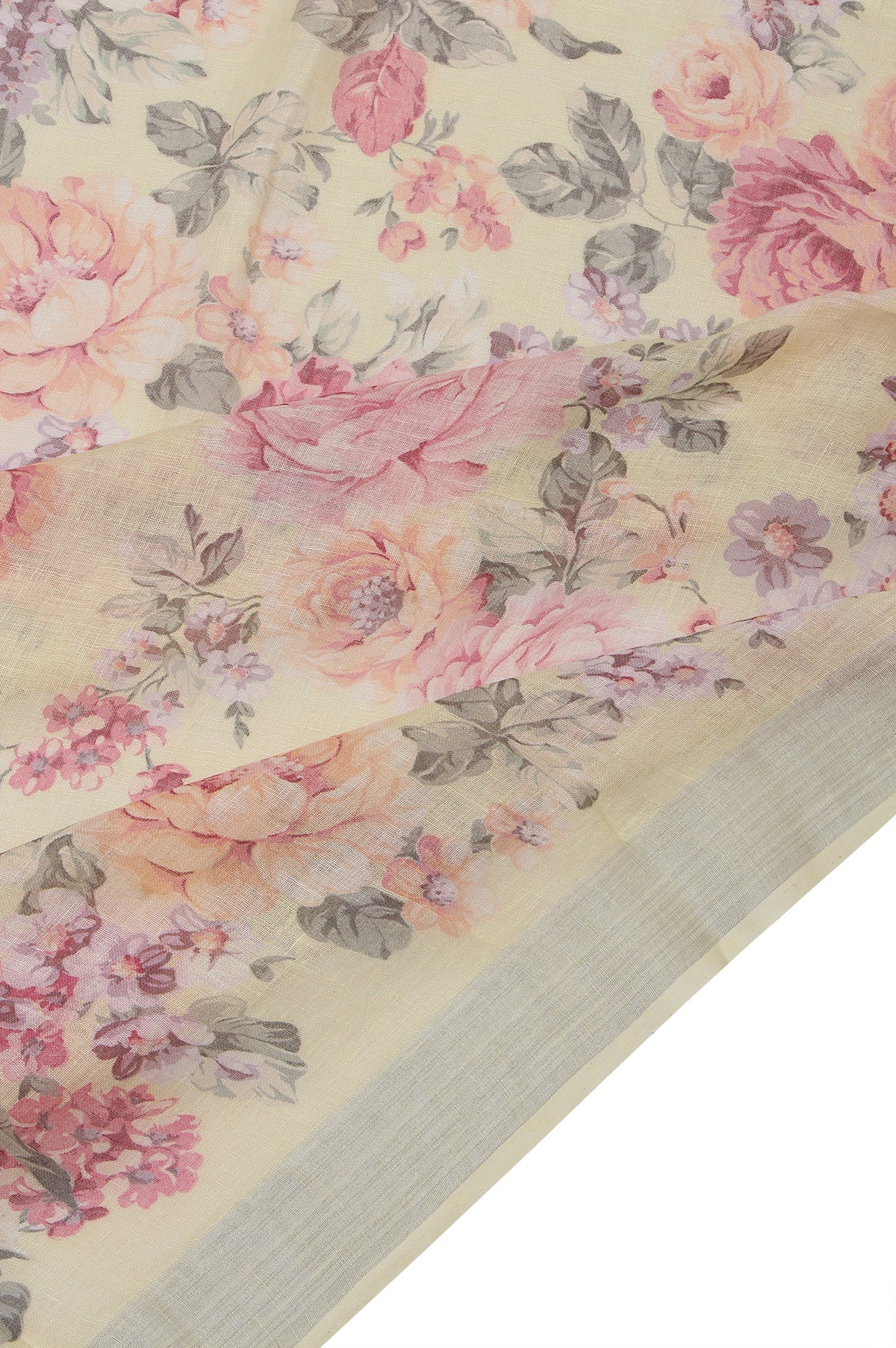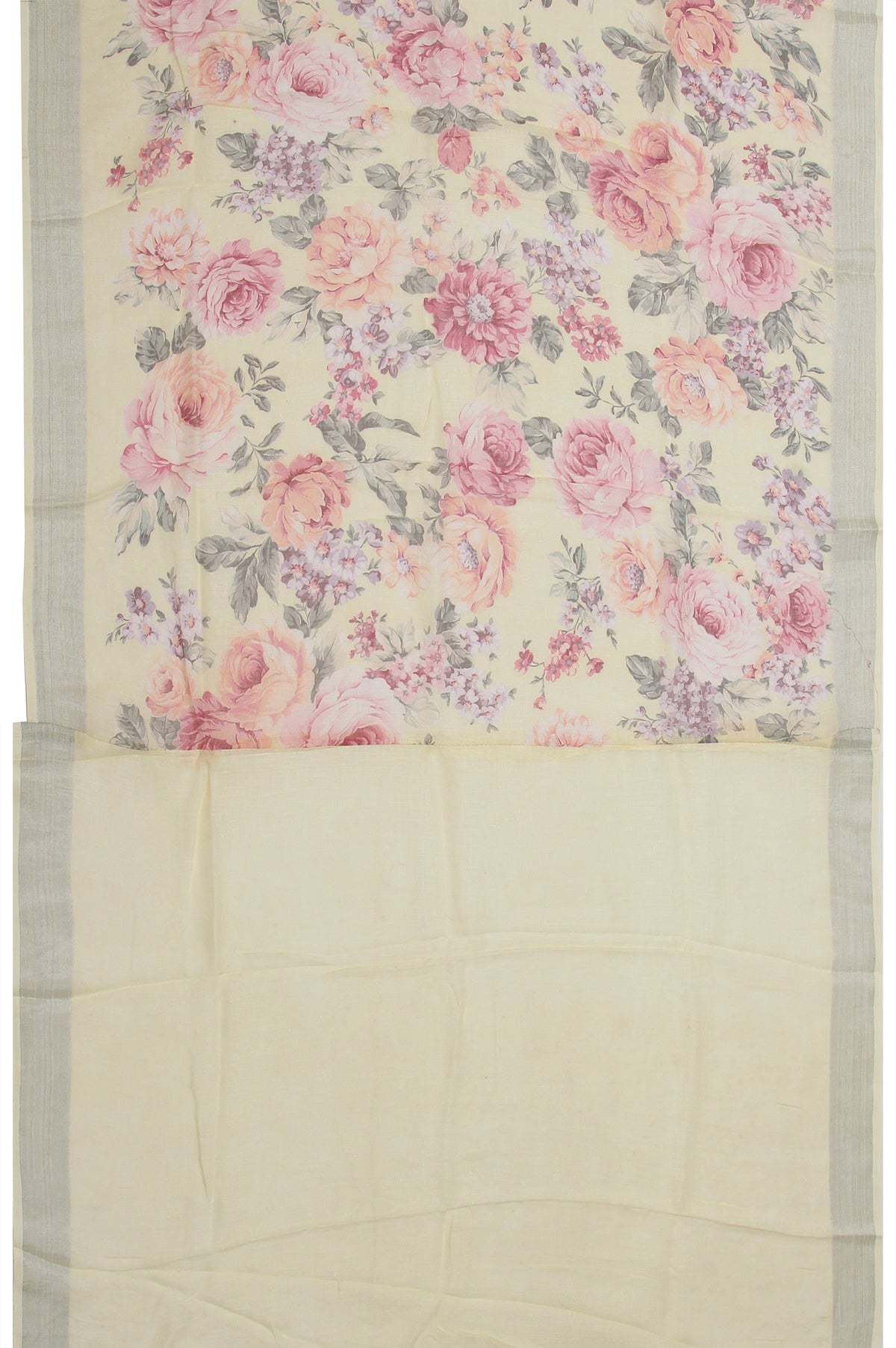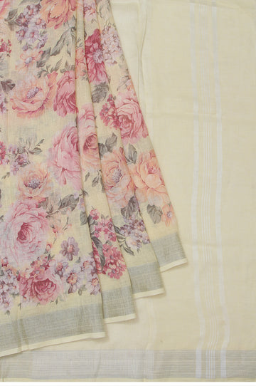 Yellow Linen Cotton Saree with Tree and Flower Motifs