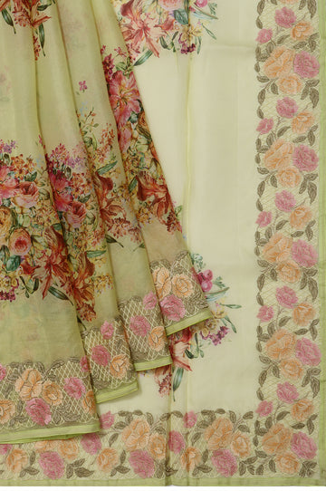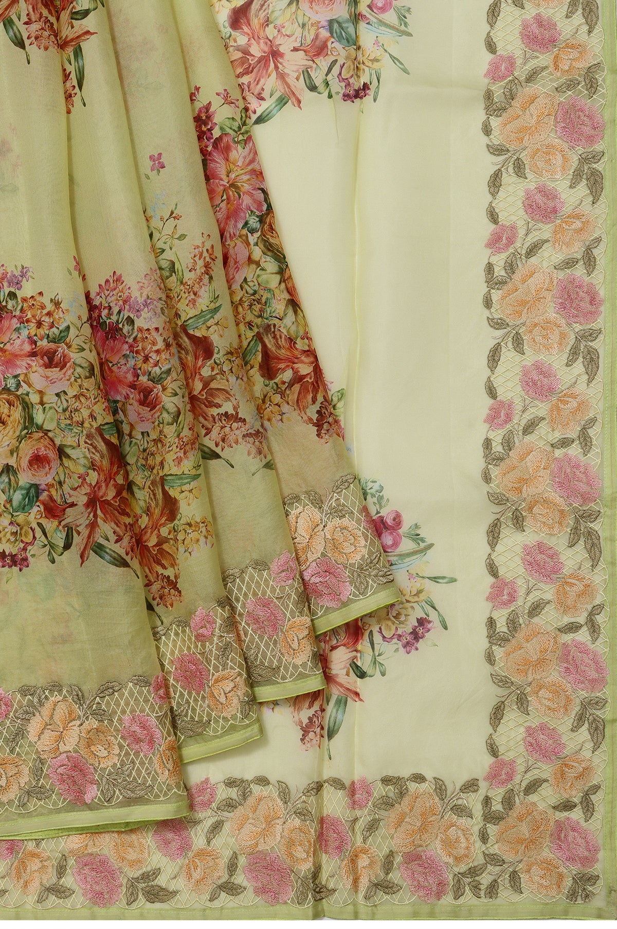 Yellow Organza Saree with Meenakari Work and Floral Motifs