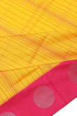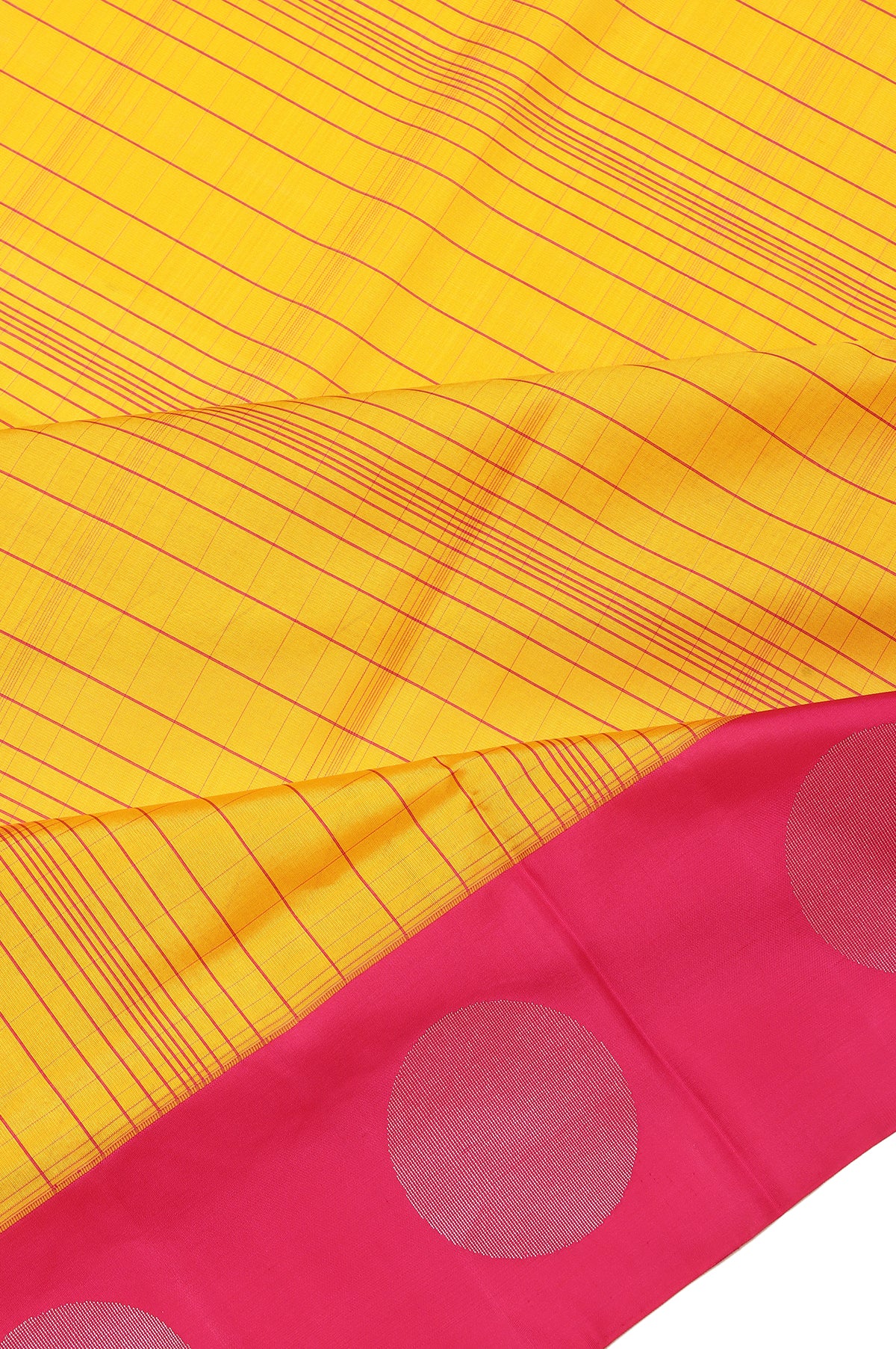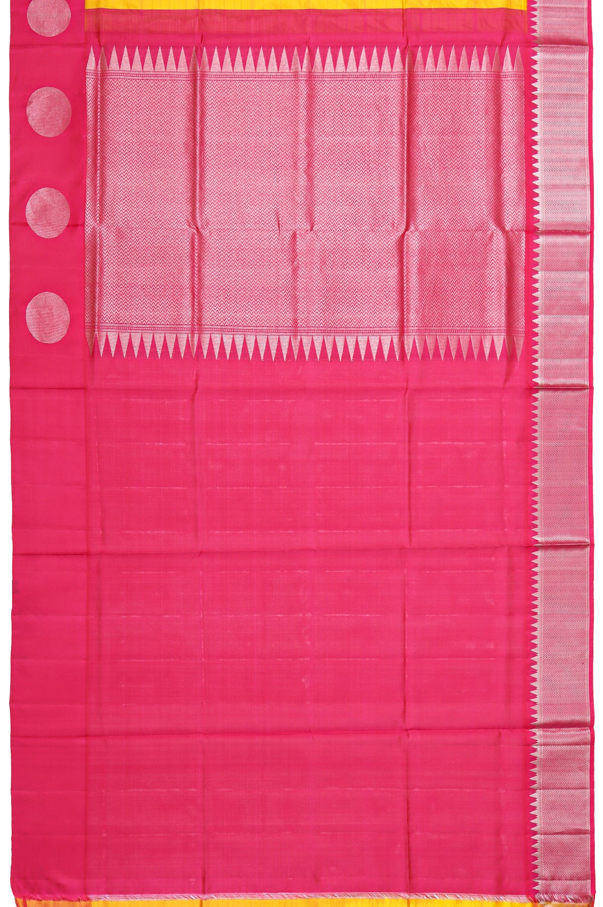 Add a touch of whimsy to your collection with this delightful Soft Silk Saree, showcasing a lovely pink border adorned with silver zari and delicate moon motifs. The pallu enchants with its vibrant pink, featuring a chic chevron pattern and elegant temple designs that create a striking contrast. The body is elegantly designed with soft pink stripes, enhancing its overall appeal. Accompanied by a plain pink blouse, this saree is perfect for festive occasions, combining traditional craftsmanship with a playful spirit.